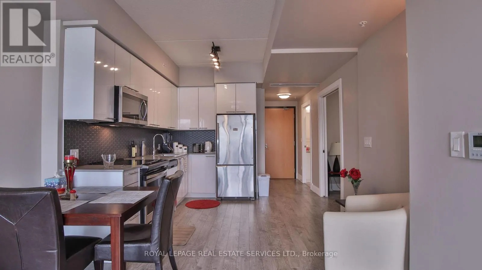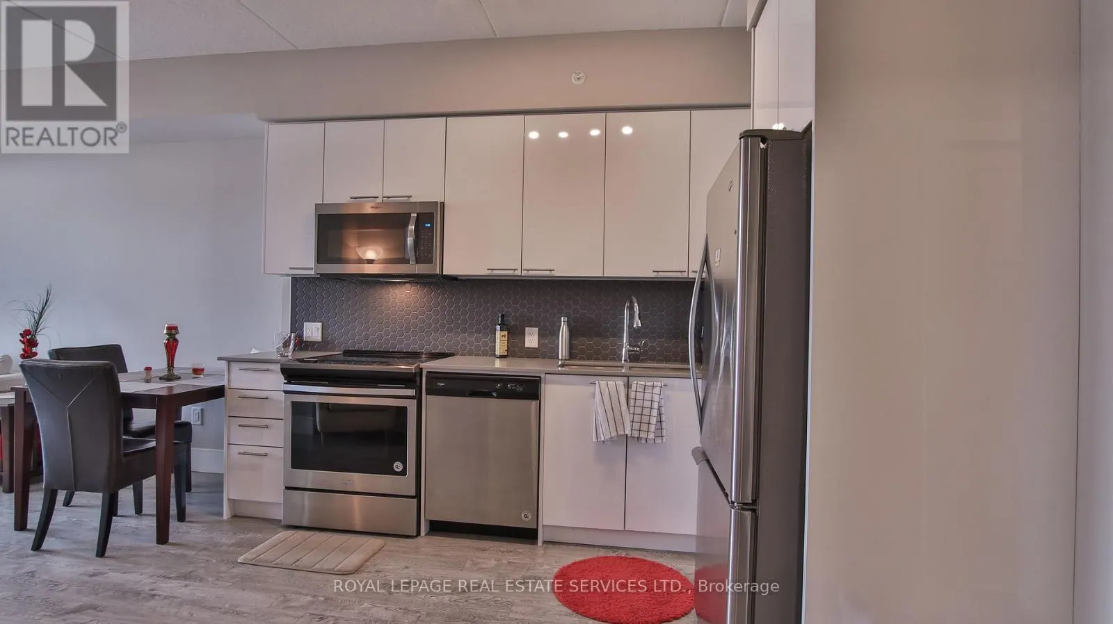 St Leger St & Wellington St N Spacious 1 Bedroom + Den, 2 Full Bath condo in the sought-after Mount Hope neighborhood! The den offers versatility as a separate room and can be used as a 2nd bedroom or home office. Modern open-concept layout with large windows, 9-ft ceilings, and premium finishes throughout. Contemporary kitchen features quartz countertops, tile backsplash, and stainless steel appliances. Bright living area walks out to a private balcony perfect for morning coffee or evening relaxation. Primary bedroom with 3-pc ensuite and ample closet space. In-suite laundry, owned locker and underground parking spot included. Located steps from the Kitchener School of Pharmacy, Medical School, and the new Google office. Close to Victoria Park, downtown restaurants, and community amenities. Easy transit to University of Waterloo & Wilfrid Laurier, plus quick access to GO Train and major highways. Fully furnished and move-in ready just unpack and enjoy carefree living! (id:27476)