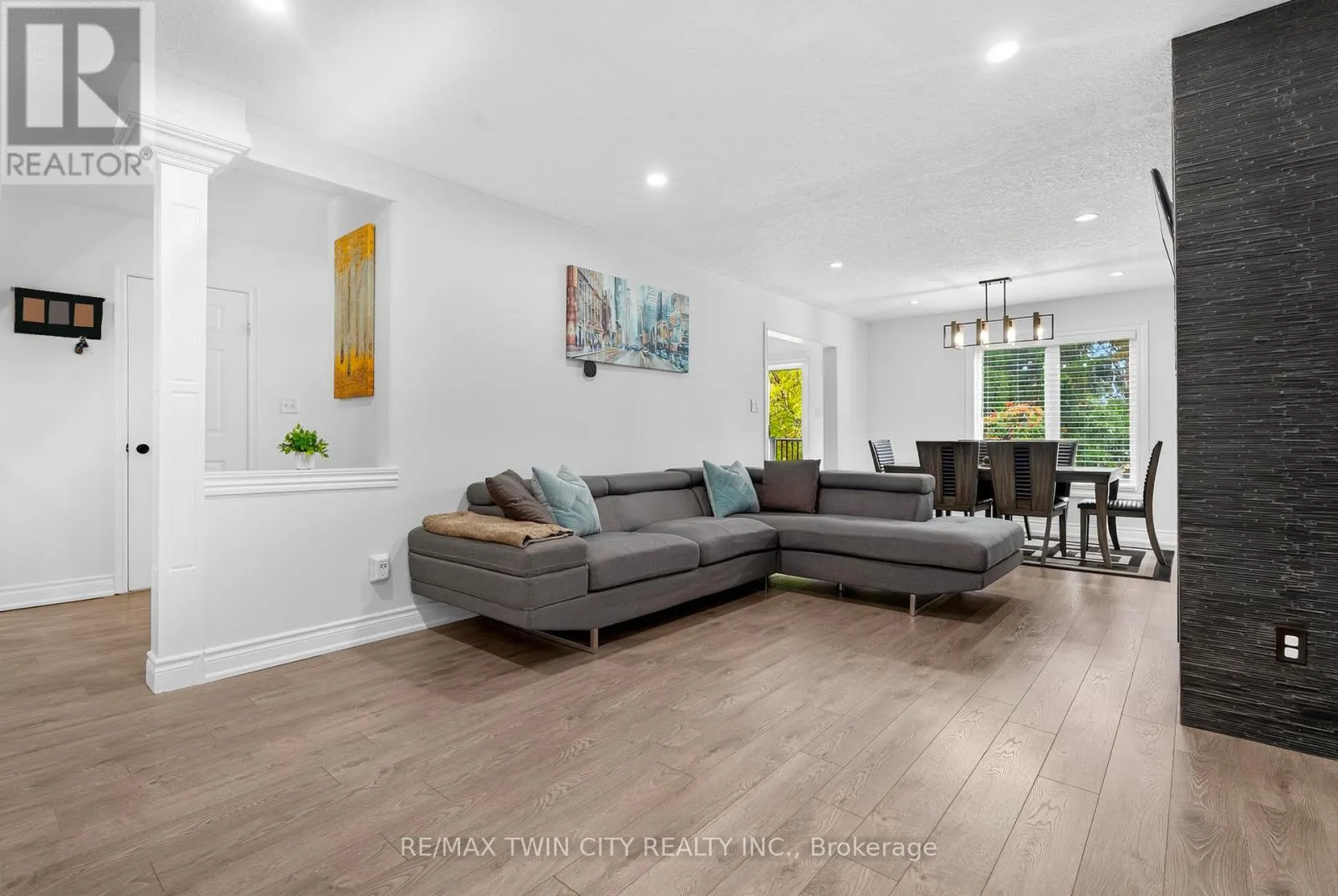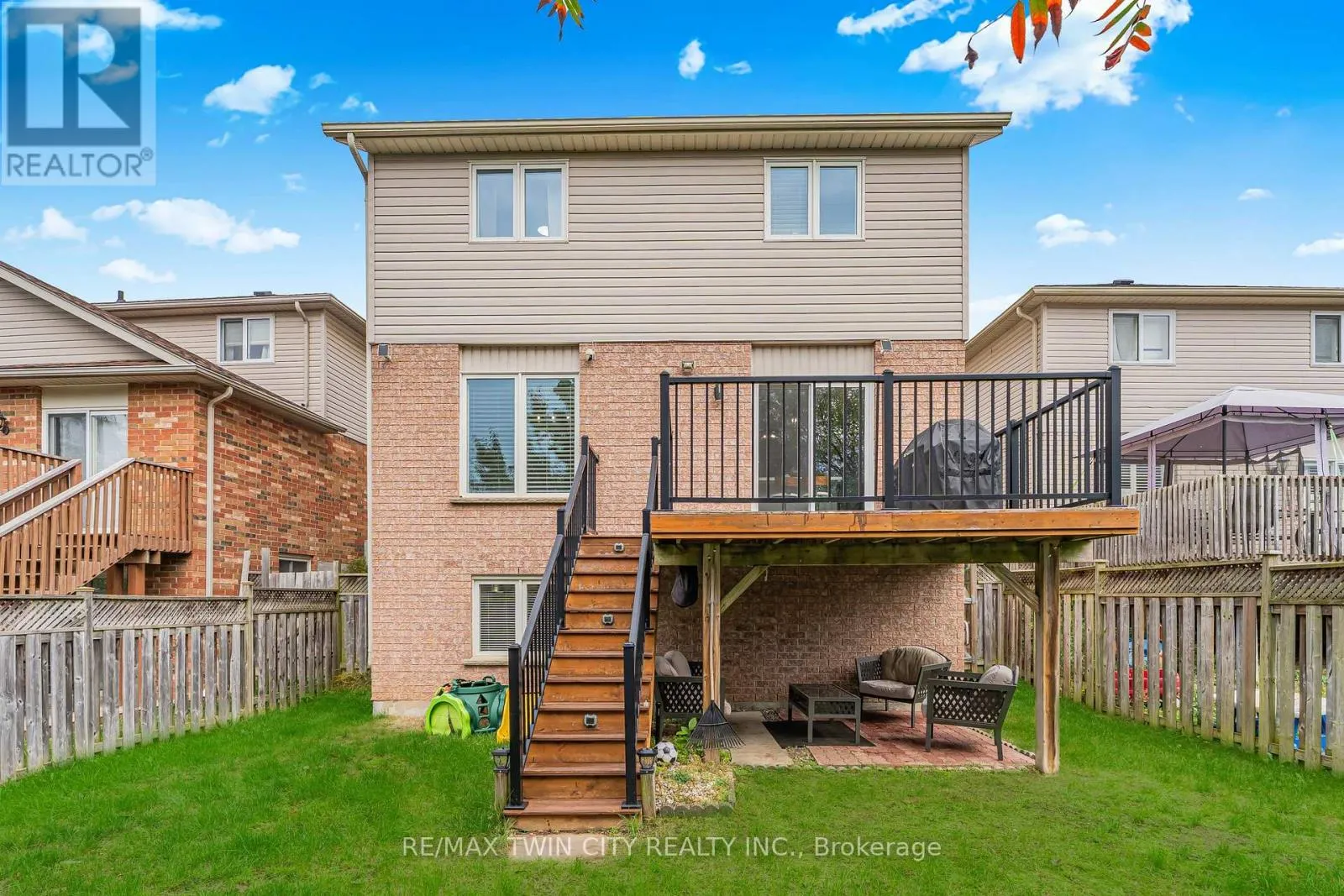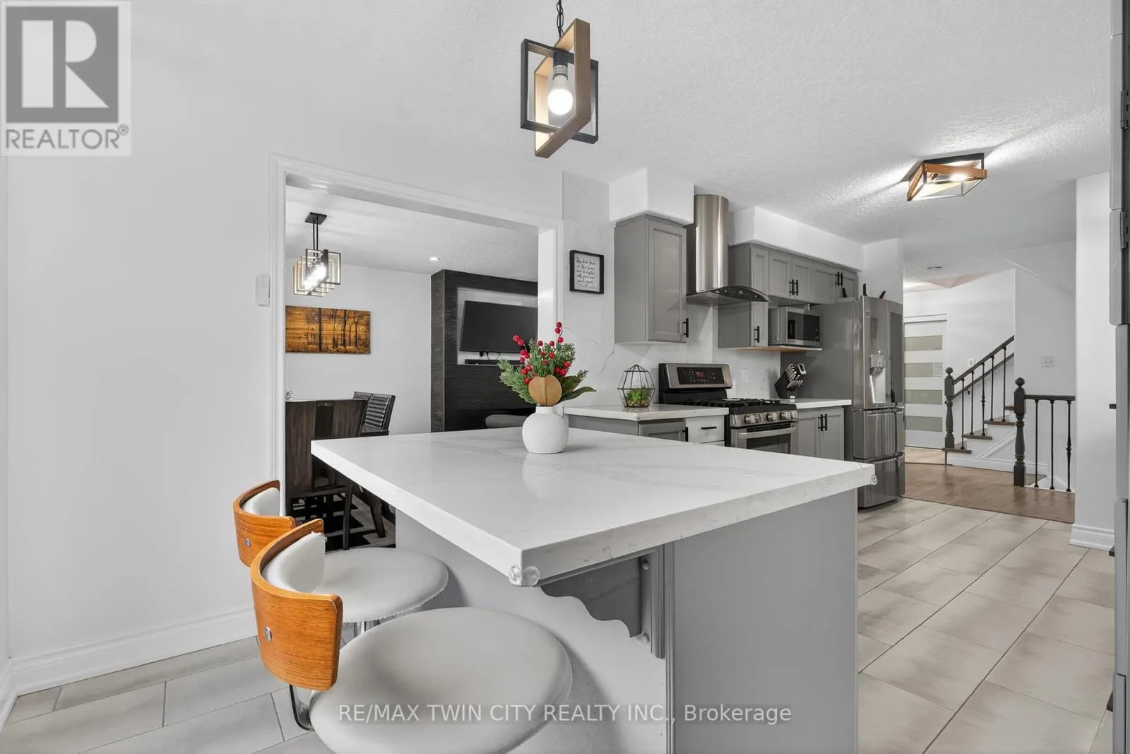 Cross Streets: Huron Rd. ** Directions: Huron Rd/Strasburg Rd. Welcome to 19 Marl Meadow Drive, Kitchener! Nestled in the sought-after Pioneer Park neighbourhood, this beautifully maintained detached home is ideal for first-time home buyers, growing families or investors alike. With a finished lookout basement, this home provides extended living space and endless possibilities. From the moment you arrive, youll appreciate the charming curb appeal with a 1.5-car garage, parking for 2 additional vehicles on the driveway. Step inside through the inviting front porch into a bright, carpet-free home, featuring premium splashproof laminate flooring and washable paint throughout. The open-concept main floor features the cozy living room, highlighted by a fireplace and stunning brick accent wall, enhanced by pot lights. The modern kitchen (renovated in 2022) showcases quartz countertops, porcelain backsplash tiles, SS Appliances and huge breakfast island. Adjacent is the Dinning area perfect for family meals. A 2pc powder room with a floating vanity completes the main level. Upstairs, there is a spacious family room with soaring cathedral ceilings: a versatile area that can easily be used as a 4th bedroom, home office or entertainment zone. The primary bedroom features a walk-in closet, a luxurious 4pc ensuite renovated in 2022, complete with dual sinks and a glass-enclosed shower. Two additional bedrooms are generously sized and share a 4pc main bathroom with a shower/tub combo. Basement offers a large recreation room, 2pc bathroom and plenty of storage. Step outside to fully finished backyard, complete with a raised deck, two gas line hookups for BBQs or fire tables and ample green space for kids to play. Recent updates include: All new windows (2022) with transferable warranty, New heat pump, air conditioner (2023). Located in a prime family-friendly neighbourhood, this home is minutes away from shopping plazas, Top-notch Schools, highways, parks and trails. This is a home youll be proud to call your own, Book your showing today. (id:27476)