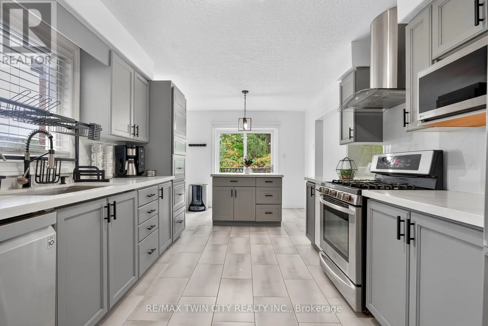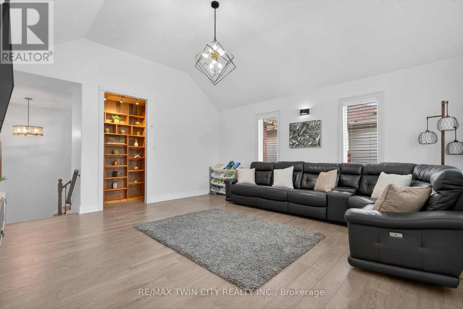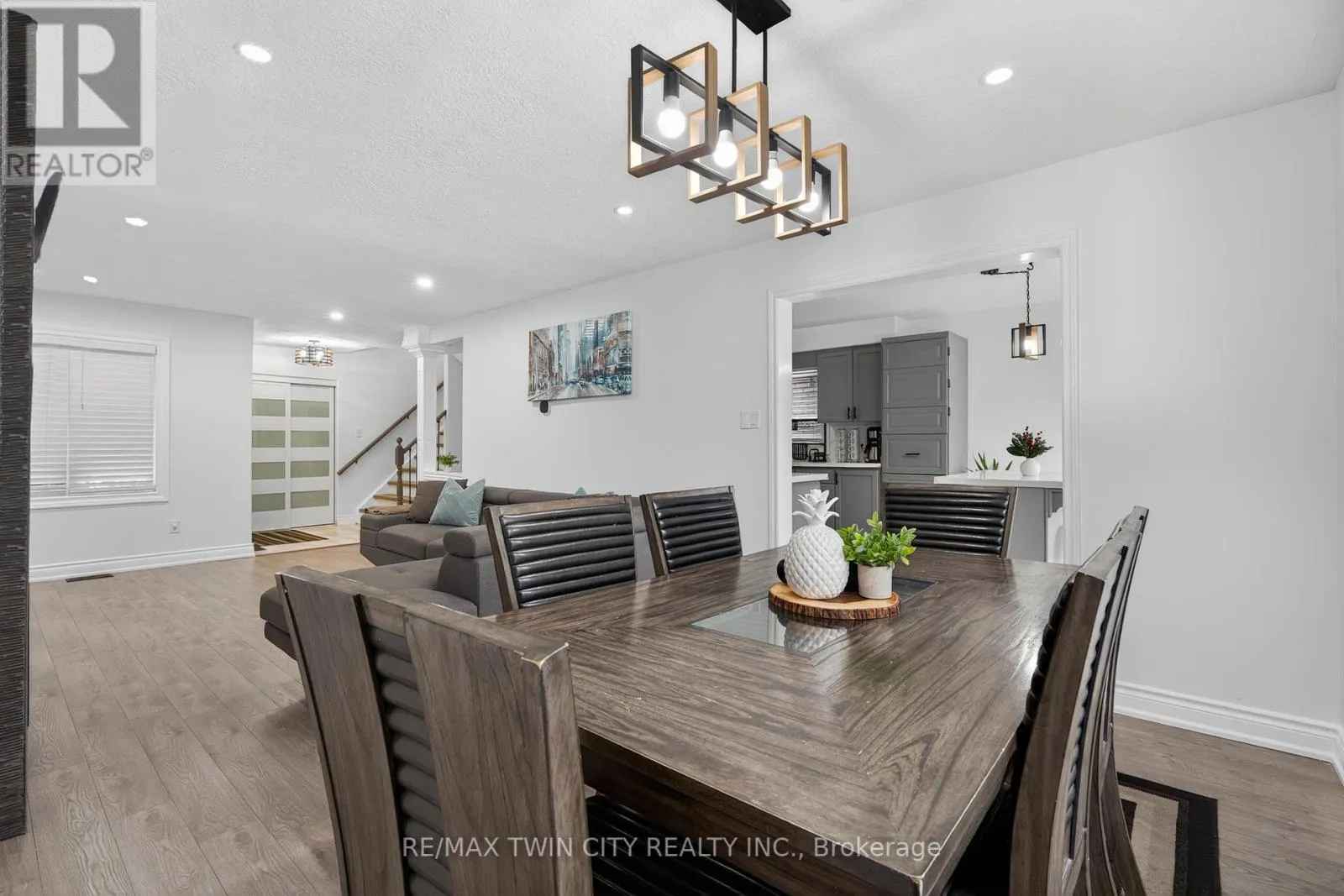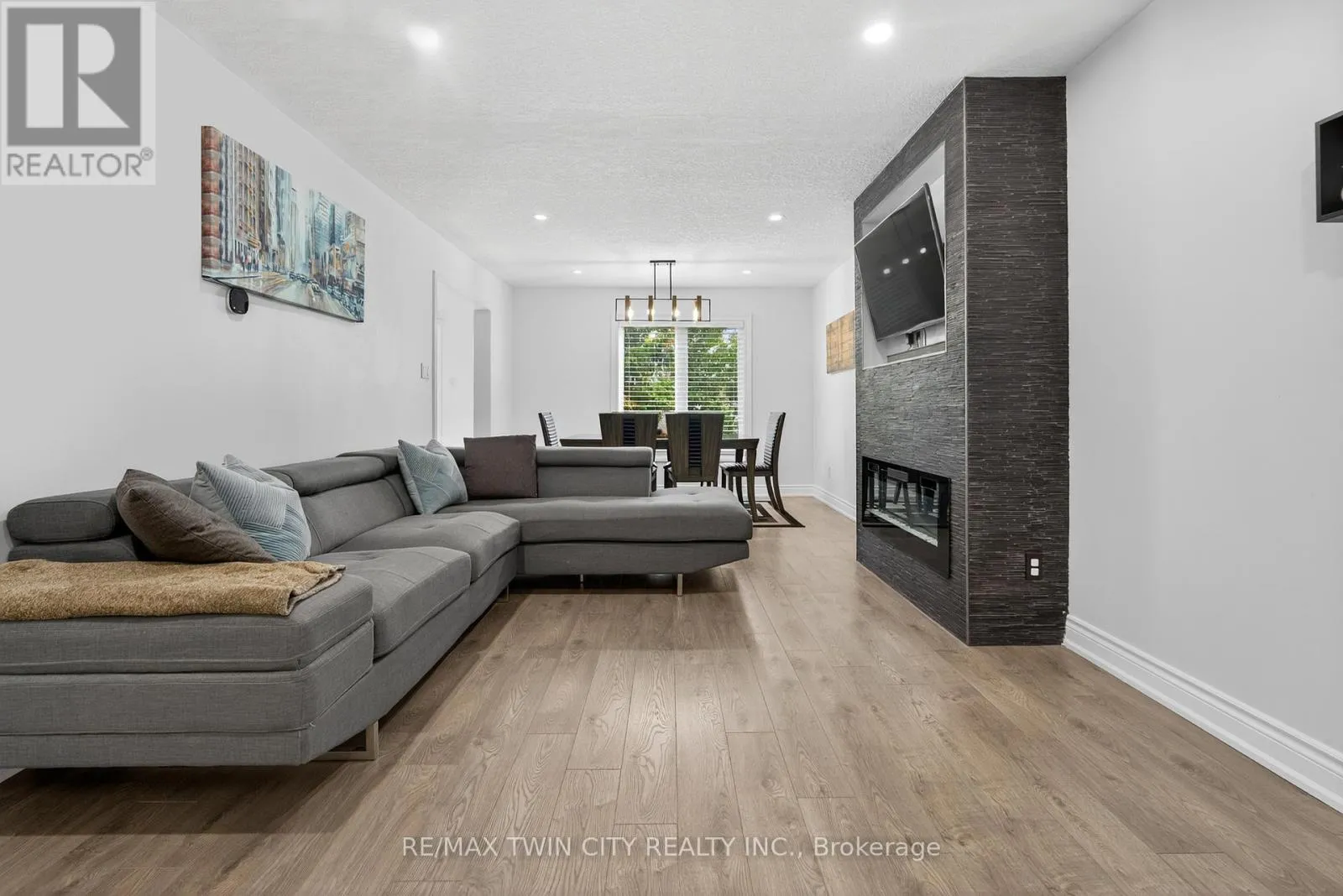 Cross Streets: Huron Rd. ** Directions: Huron Rd/Strasburg Rd. Welcome to 19 Marl Meadow Drive, Kitchener! Nestled in the sought-after Pioneer Park neighbourhood, this beautifully maintained detached home is ideal for first-time home buyers, growing families or investors alike. With a finished lookout basement, this home provides extended living space and endless possibilities. From the moment you arrive, youll appreciate the charming curb appeal with a 1.5-car garage, parking for 2 additional vehicles on the driveway. Step inside through the inviting front porch into a bright, carpet-free home, featuring premium splashproof laminate flooring and washable paint throughout. The open-concept main floor features the cozy living room, highlighted by a fireplace and stunning brick accent wall, enhanced by pot lights. The modern kitchen (renovated in 2022) showcases quartz countertops, porcelain backsplash tiles, SS Appliances and huge breakfast island. Adjacent is the Dinning area perfect for family meals. A 2pc powder room with a floating vanity completes the main level. Upstairs, there is a spacious family room with soaring cathedral ceilings: a versatile area that can easily be used as a 4th bedroom, home office or entertainment zone. The primary bedroom features a walk-in closet, a luxurious 4pc ensuite renovated in 2022, complete with dual sinks and a glass-enclosed shower. Two additional bedrooms are generously sized and share a 4pc main bathroom with a shower/tub combo. Basement offers a large recreation room, 2pc bathroom and plenty of storage. Step outside to fully finished backyard, complete with a raised deck, two gas line hookups for BBQs or fire tables and ample green space for kids to play. Recent updates include: All new windows (2022) with transferable warranty, New heat pump, air conditioner (2023). Located in a prime family-friendly neighbourhood, this home is minutes away from shopping plazas, Top-notch Schools, highways, parks and trails. This is a home youll be proud to call your own, Book your showing today. (id:27476)