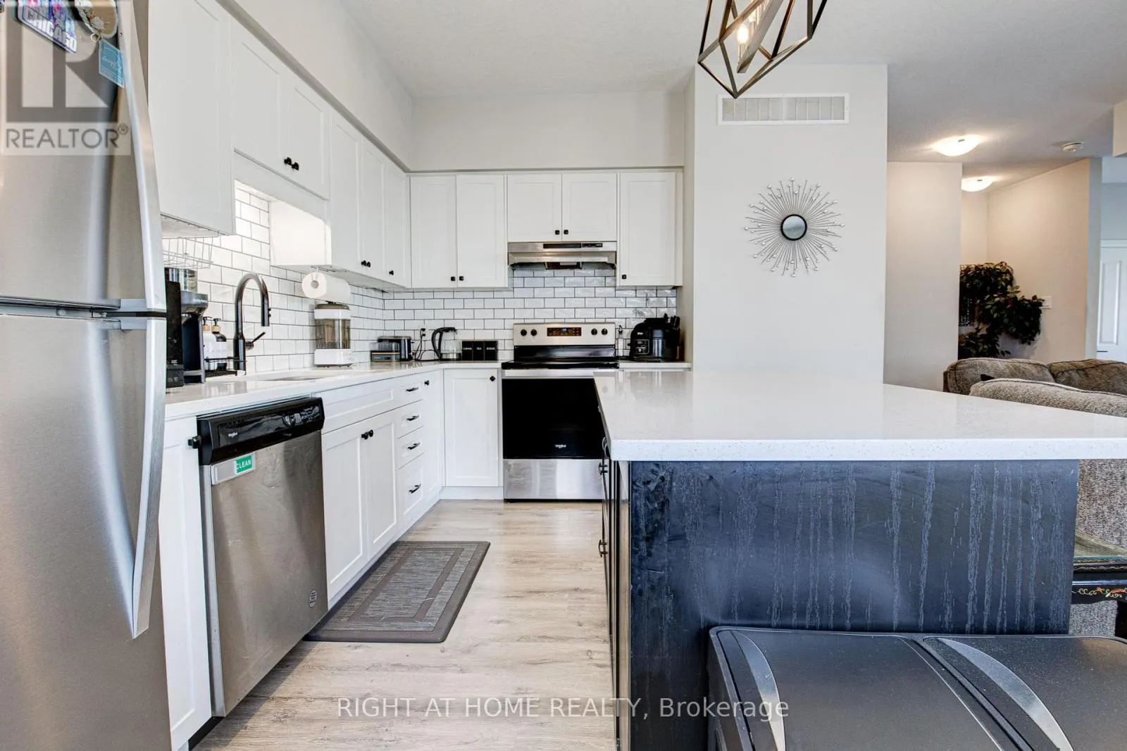 Cross Streets: Fischer-Hallman Rd / Seabrock Dr. ** Directions: Google Maps. Welcome to 34 Vitality Drive, a bright and stylish corner stacked townhouse in the heart of Kitchener's sought-after Huron Park community! This beautifully designed 2-bedroom + den, 3-bathroom home offers a perfect combination of comfort, functionality, and modern elegance ideal for young professionals, families, or investors seeking low-maintenance living in a thriving neighbourhood. Step into the main floor and be greeted by an expansive open-concept layout featuring a sun-filled living and dining area, private balcony, and a modern kitchen with stainless-steel appliances, quartz countertops, subway-tile backsplash, and a large island ideal for gatherings and casual dining. A spacious den on this level provides an ideal space for a home office or creative studio, while a convenient 2-piece powder room completes the floor. Upstairs, discover two well-appointed bedrooms, each offering ample natural light, generous closet space, and ensuite access. The primary suite features a walk-in closet and a 3-piece ensuite with a glass-enclosed shower, while the second bedroom enjoys a 4-piece bath with tub. Thoughtful details include in-suite laundry, energy-efficient systems, and 1 dedicated parking space for added convenience. Situated in one of Kitchener's fastest-growing areas, this home is steps to Jean Steckle PS, Schlegel Park, RBJ Schlegel Sports Complex and close to Seabrook Park, Sophia Park, and scenic walking trails. Just minutes to Highway 7/8 & 401, shopping, dining, and public transit. Low condo fees include Bell 1 GB high-speed internet, offering exceptional value. Experience modern living, abundant light, and unbeatable location 34 Vitality Drive welcomes you home! (id:27476)