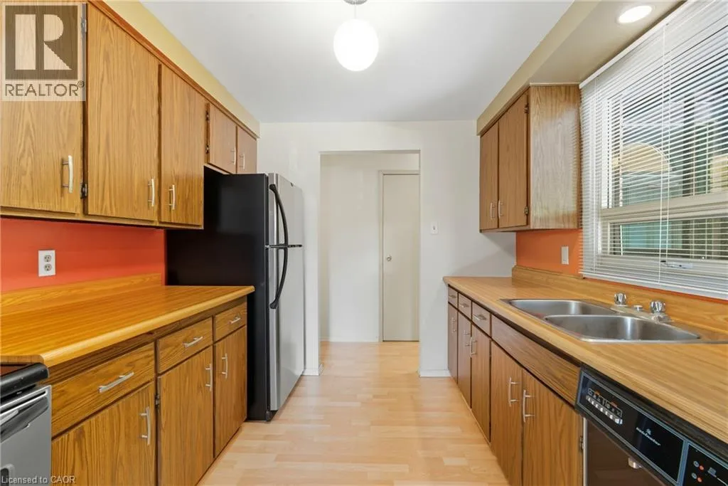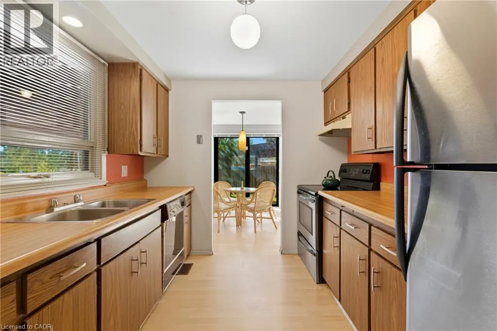 King Street East to River Road to Underhill Crescent Believe it or not, this bright and spacious 2-storey townhouse condo might be the hidden gem youâve been waiting for! Unit 19 is surrounded by mature trees and walking trails, offering that peaceful, tucked-away feeling while still being close to everything you need. Step inside and youâll find big windows bringing in tons of natural light, a patio door leading to your private side yard, and a main floor that feels open and airy, plus a brand-new kitchen sink and faucet, just replaced for a fresh, updated touch. Upstairs features 3 spacious bedrooms, and the basement offers a great-size rec room with a wood-burning stove, perfect for cozy movie nights, a home gym, or whatever fits your lifestyle, plus a separate laundry room and plenty of storage space. Private covered carport parking right in front of your unit. With a little love and a few upgrades, this home has all the right ingredients to become your perfect and practical space. Conveniently located minutes from Highway 401, downtown, the Grand River, Chicopee Ski Hill, shopping, and trails, it doesnât get more convenient than this! Furniture included in the sale. Being sold as is. (id:27476)