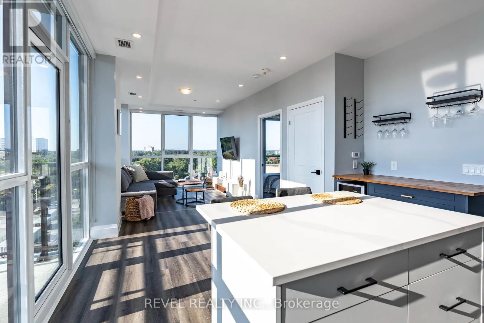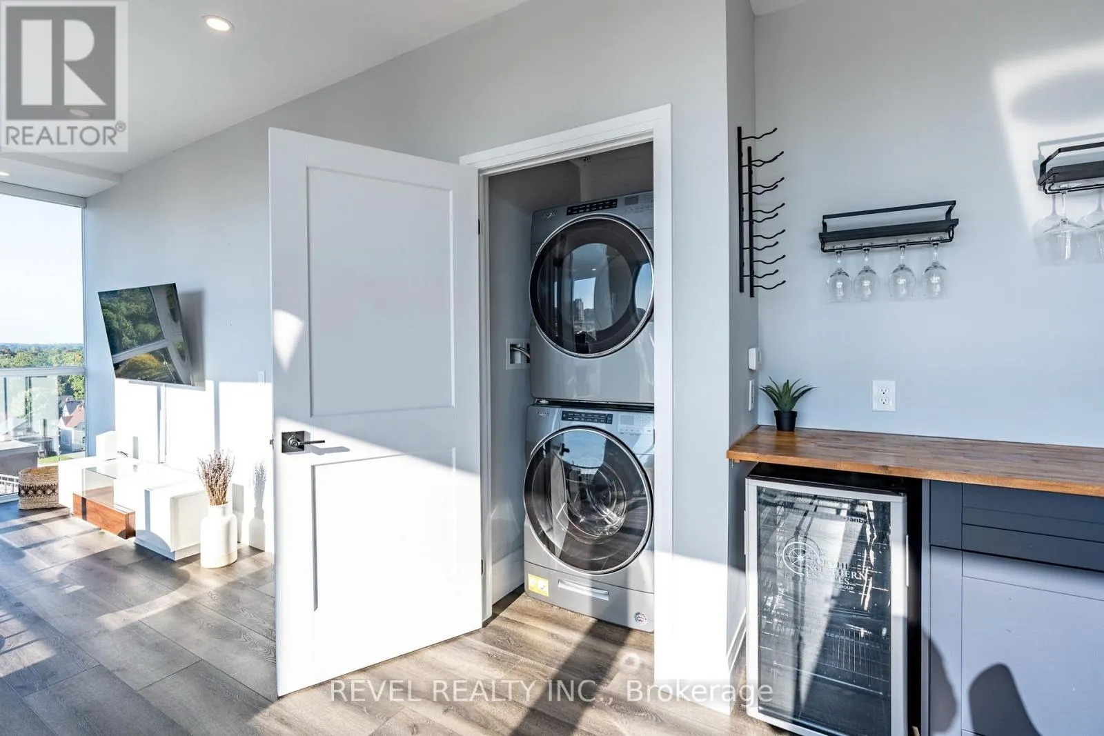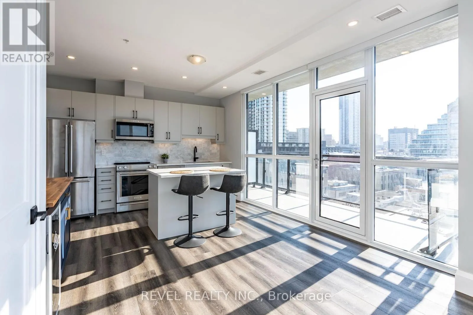 Cross Streets: Charles & Gaukel. ** Directions: Charles to Gaukel. This 797 total square foot one-bedroom, one-bathroom corner unit offers modern design, high-end finishes, and an open-concept layout filled with natural light. Featuring 9-foot ceilings, floor-to-ceiling windows, custom closets, upgraded appliances, in-suite laundry, and a private balcony with stunning views of Victoria Park, this home has been elevated with over $42,000 in upgrades. One underground parking space and a storage locker are included. The building provides exceptional amenities including a concierge, a social lounge with catering kitchen, a landscaped seventh-floor terrace, a fully equipped fitness centre, yoga and wellness rooms, and secure vehicle and bicycle parking. Located in the heart of downtown, this condo is just steps to Victoria Park, community festivals, restaurants, cafés, shopping, Google, top universities and colleges, and the LRT. Perfect for young professionals, first-time homebuyers, or investors, this property combines convenience, style, and unmatched urban living. (id:27476)