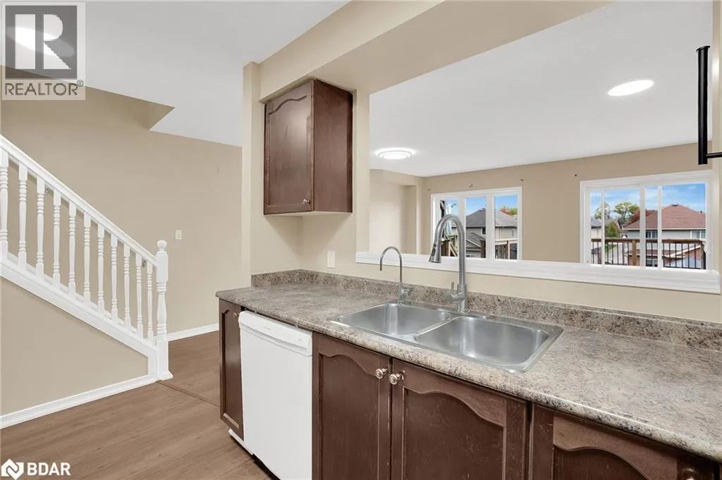 Pebble Creek and Zeller Drive Welcome to 933 Zeller Crescent â Where Comfort Meets Lifestyle! ? This beautifully updated freehold townhome in the heart of Lackner Woods is move-in ready and feels like new with fresh paint throughout and gleaming brand-new hardwood floors. Step inside and be greeted by a spacious, welcoming foyer that sets the tone for the open and inviting layout. The main floor features a bright kitchen with ample counter space, abundant cabinetry, and all appliances includedâperfect for both everyday meals and entertaining. A dedicated dining area flows seamlessly into the living room, creating a warm gathering space for family and friends. Walk out through the sliding doors to your fully fenced backyard with a deck, ideal for summer barbecues, morning coffee, or playtime with the kids. Upstairs, youâll find three large bedrooms, each filled with natural light and offering plenty of room for rest and relaxation. Two 4-piece bathroom with a shower/tub combos and modern vanities completes the upper level. The lower level is a blank canvasâan expansive basement waiting for your personal touch, whether it be a home gym, rec room, or office. ?? Prime Location: Enjoy being steps from the Grand River Trail, with easy access to parks, green spaces, and top-rated schools. Everything you need for a balanced, family-friendly lifestyle is right here. This home is brand new again and combines style, space, and location in one perfect package. Donât miss your chanceâbook your private showing today! (id:27476)