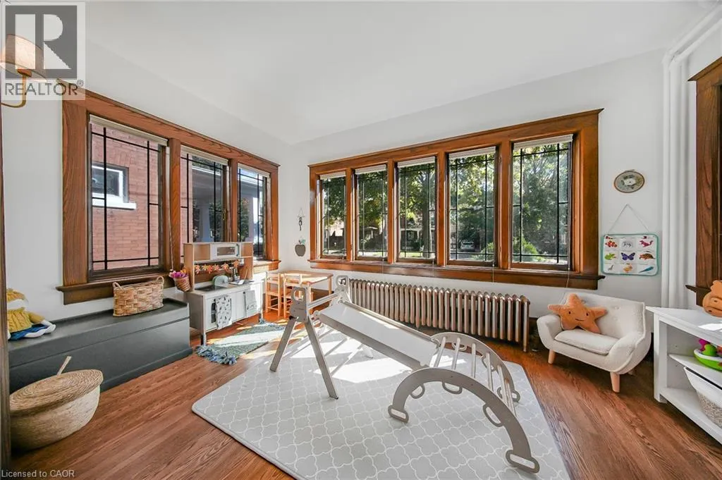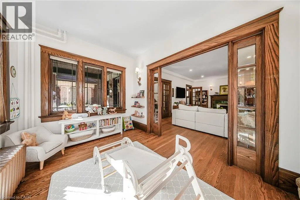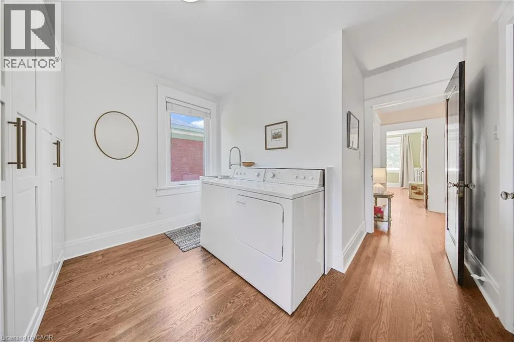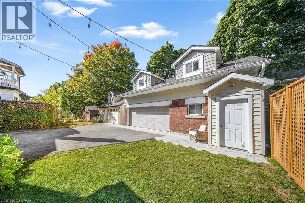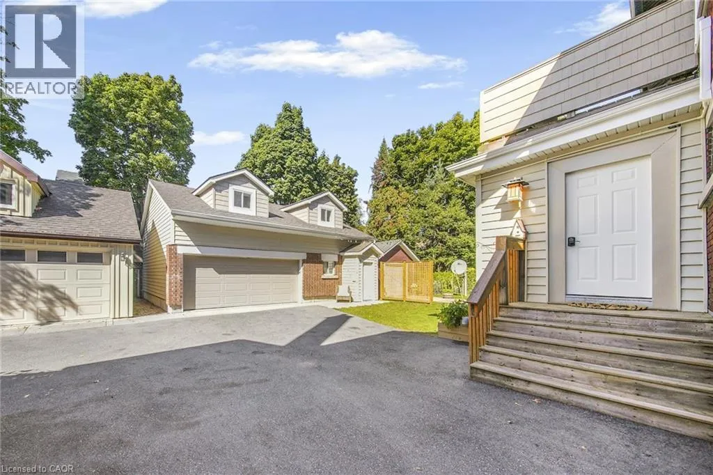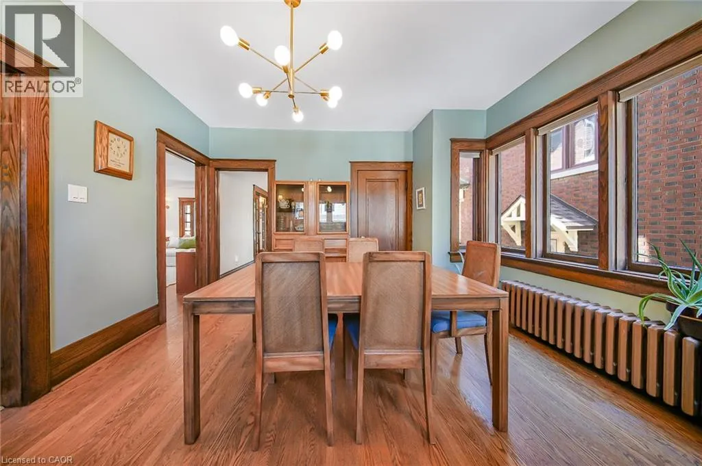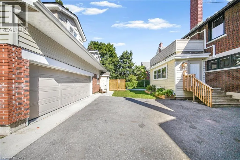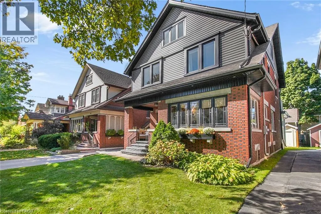 Victoria to Park to Jubilee to Heins Nestled on a family-friendly street just steps from beautiful Victoria Park and vibrant downtown Kitchener, this charming 4-bedroom home strikes the perfect balance between character and modern convenience. The welcoming exterior hints at the thoughtful updates and well-maintained features you'll discover inside. Step through the front door and you'll immediately notice the gorgeous oak strip hardwood floors that flow throughout, complemented by elegant crown moulding and beautiful wide wood trim that adds a touch of sophistication. The main level offers comfortable living spaces, while a convenient half-bath serves daily needs. Venture upstairs to find three generous bedrooms, including a spacious primary bedroom. The fourth bedroom has been thoughtfully converted into an upper-level laundry room â though it could easily return to bedroom duty if needed. Check out the recently renovated 4-piece bathroom that creates a spa-like retreat, perfect for unwinding after busy days. Don't miss the unspoiled loft space, ideal for a children's playroom, home office, or additional living area â let your imagination run wild! Practical features include separate side and back entrances, plus laundry hookups in the basement for added flexibility.?The real showstopper? A massive 749 sqft detached garage measuring 32ft 8in X 23 ft and housing a self-contained studio complete with its own furnace (2022) and air conditioning (2025). Whether you're an artist, entrepreneur, or just need extra space, this versatile outbuilding delivers endless possibilities. Some of the many updates include: windows, eaves & siding, driveway, heat pumps, boiler and softener. Reach out for the full list. This home is truly beautiful - book your showing today. (id:27476)