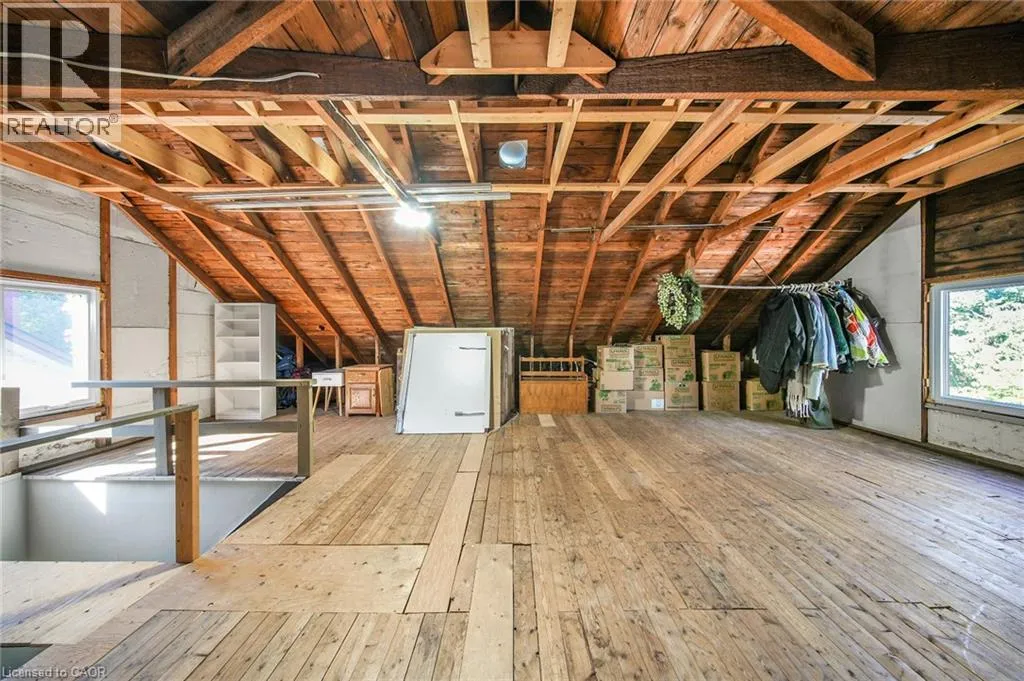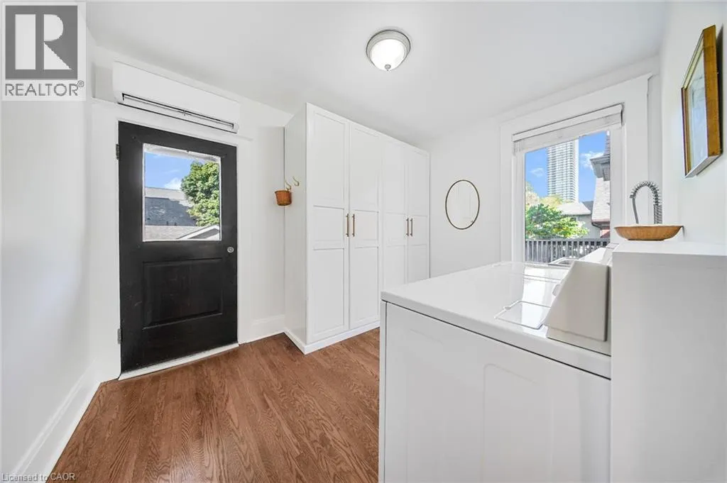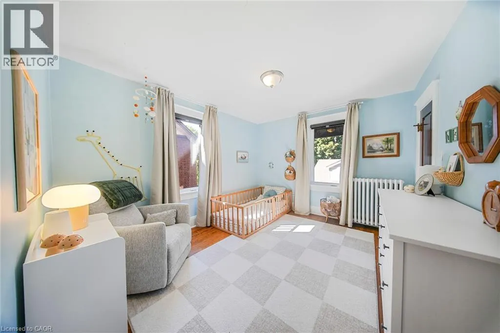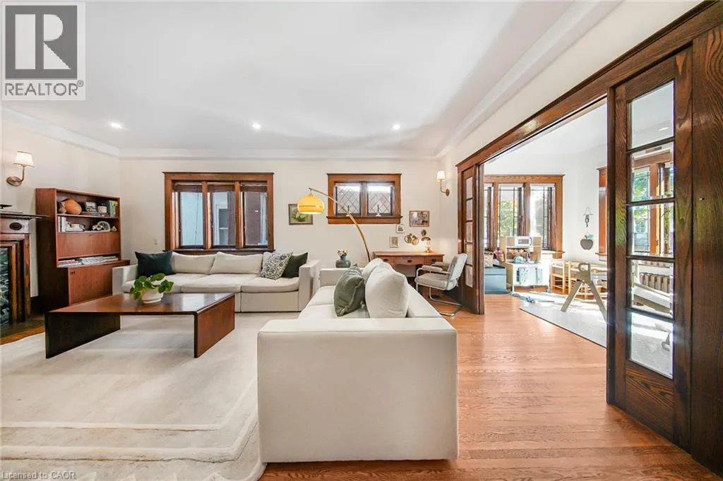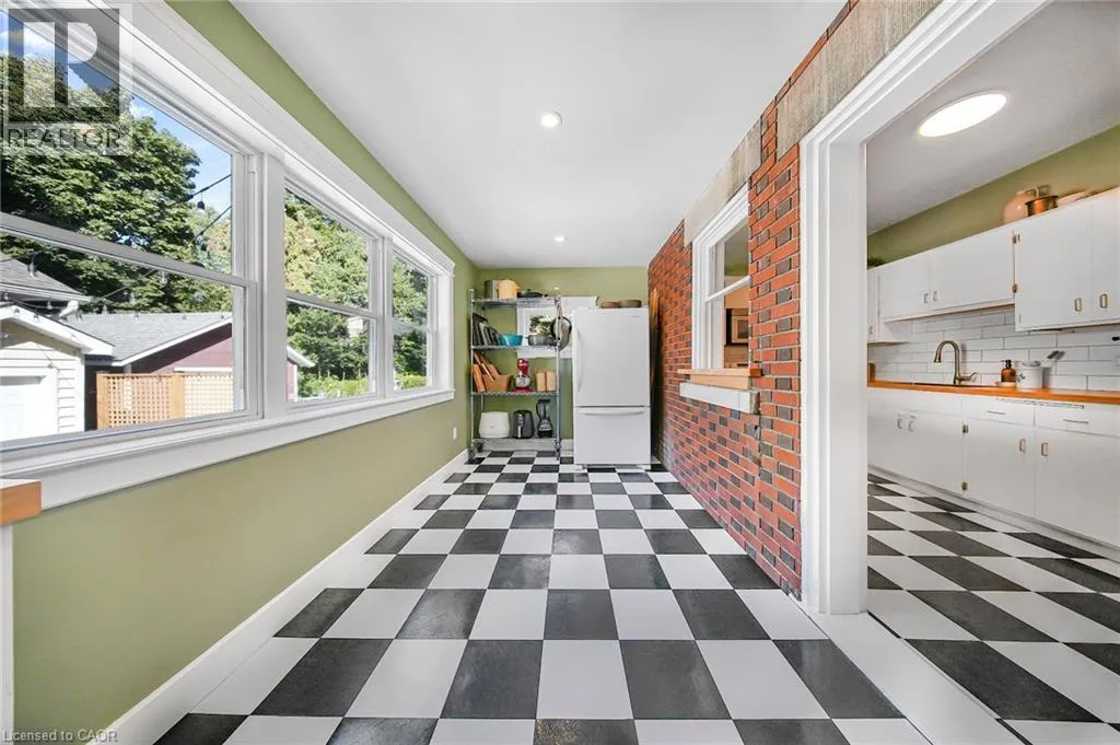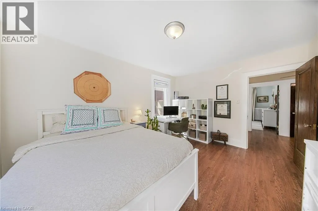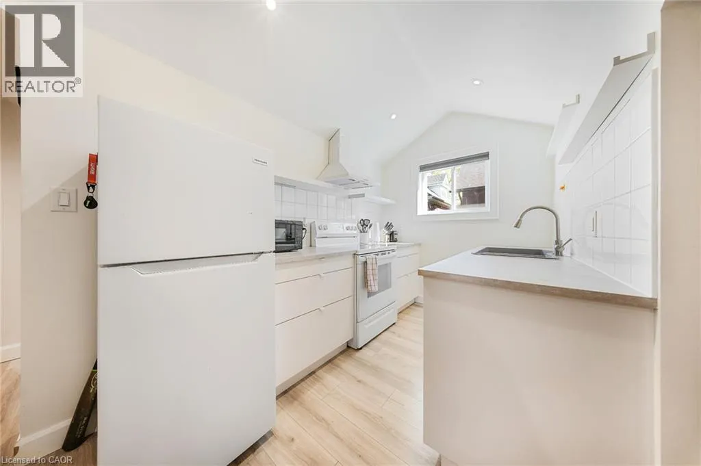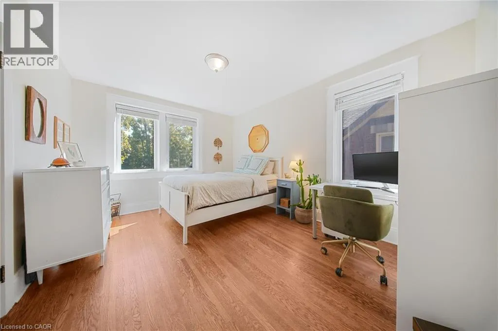 Victoria to Park to Jubilee to Heins Nestled on a family-friendly street just steps from beautiful Victoria Park and vibrant downtown Kitchener, this charming 4-bedroom home strikes the perfect balance between character and modern convenience. The welcoming exterior hints at the thoughtful updates and well-maintained features you'll discover inside. Step through the front door and you'll immediately notice the gorgeous oak strip hardwood floors that flow throughout, complemented by elegant crown moulding and beautiful wide wood trim that adds a touch of sophistication. The main level offers comfortable living spaces, while a convenient half-bath serves daily needs. Venture upstairs to find three generous bedrooms, including a spacious primary bedroom. The fourth bedroom has been thoughtfully converted into an upper-level laundry room â though it could easily return to bedroom duty if needed. Check out the recently renovated 4-piece bathroom that creates a spa-like retreat, perfect for unwinding after busy days. Don't miss the unspoiled loft space, ideal for a children's playroom, home office, or additional living area â let your imagination run wild! Practical features include separate side and back entrances, plus laundry hookups in the basement for added flexibility.?The real showstopper? A massive 749 sqft detached garage measuring 32ft 8in X 23 ft and housing a self-contained studio complete with its own furnace (2022) and air conditioning (2025). Whether you're an artist, entrepreneur, or just need extra space, this versatile outbuilding delivers endless possibilities. Some of the many updates include: windows, eaves & siding, driveway, heat pumps, boiler and softener. Reach out for the full list. This home is truly beautiful - book your showing today. (id:27476)