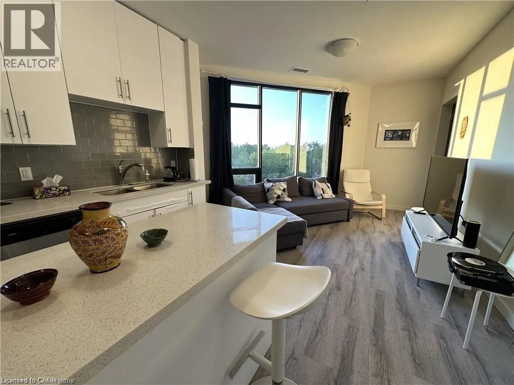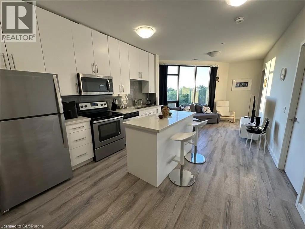 King St. W. & Wellington St. N. Fully furnished Modern 2-bedroom, 1-bathroom condo unit with almost 900 sqft of living space! Great location with excellent walkability to the LRT, public transit, Google BRT, grocery stores, restaurants, and easy highway access. The floor-to-ceiling windows provide tons of natural light and the kitchen features quartz countertops, a double sink, and stainless steel appliances. The unit features ensuite laundry, your own controlled thermostat, and spacious walk-in closets in both bedrooms. Heat and water are included, and the tenant is responsible for hydro. Building Amenities Include A Lounge Area, Fitness Center, And A Beautiful Outdoor Terrace With A Natural Gas BBQ. Unit comes fully furnished but furnitures can be taken out. Parking is available at $185 Monthly (id:27476)