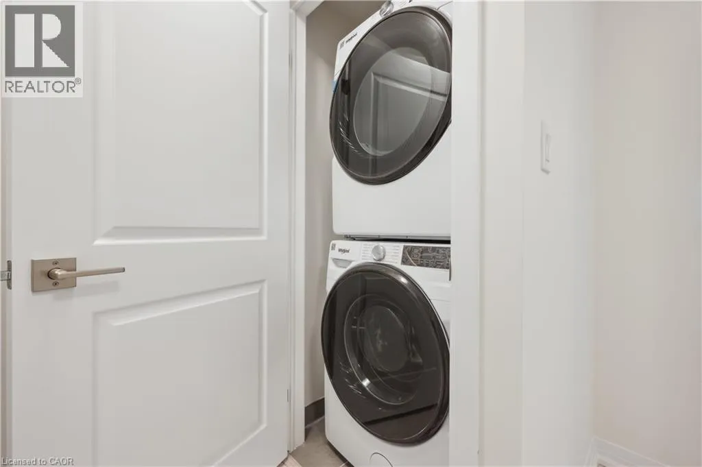 New Dundee Rd to Stauffer Woods Tr Ready to occupy NOW at Harvest Park in Doon South, this brand new, beautiful 1 bedroom, 1 bathroom, carpet-free home features an abundance of windows. The open-concept layout is bright and airy - and comes with stainless kitchen appliances, stackable washer/dryer, air conditioning, a surface parking spot and in-unit storage space. The condo fees include Rogers Internet (1.5 GB), exterior maintenance and snow removal. Situated in a superb South Kitchener location, this property provides easy access to Hwy 401, Conestoga College, and nearby walking trails, ponds and greenspaces. Drop in to the sales centre at 154 Shaded Creek for more information - open Mon/Tues/Wed 4-7 pm and Sat/Sun 1-5 pm or ask your agent to arrange a private showing! (id:27476)