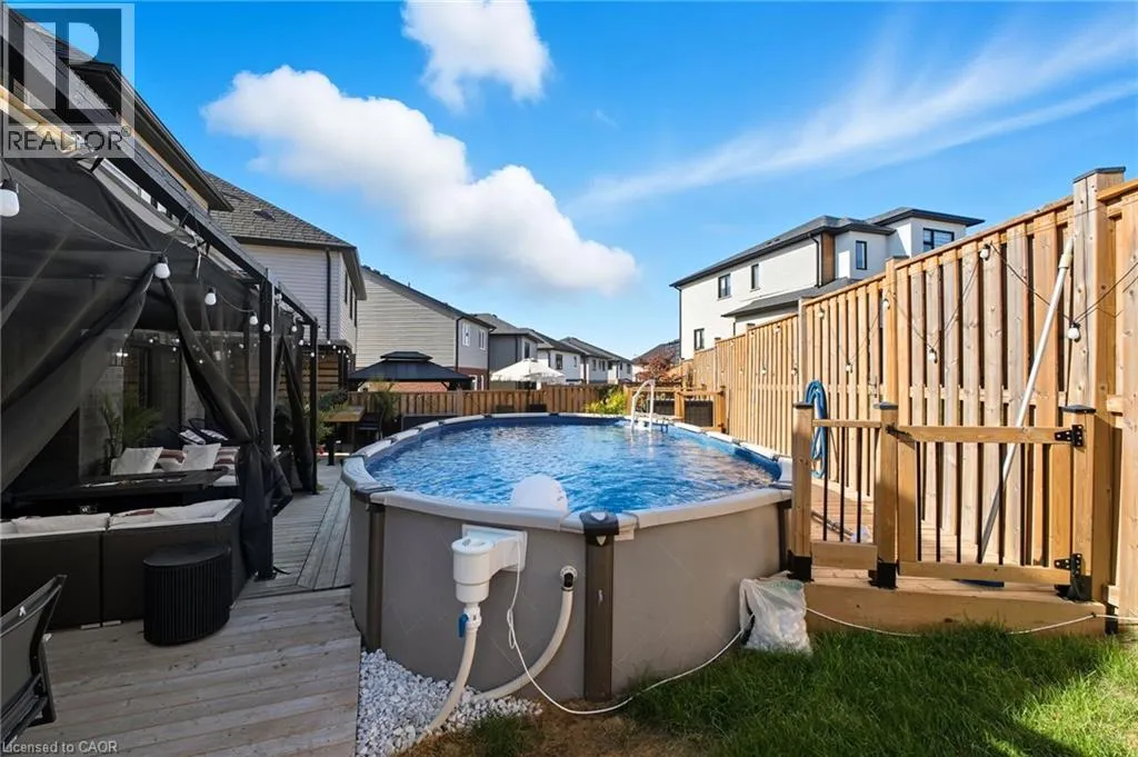 Between Robert Ferrie Dr & Thomas Slee Dr 126 Blair Creek Drive, Kitchener, ON Located in the highly sought-after Doon South/Blair Creek neighbourhood, this impressive home offers 3297 sq. ft. of finished living space across three thoughtfully designed levels and is loaded with upgrades throughout. Perfect for multi-generational living or those seeking an income-producing opportunity, it features a self-contained lower suite and a versatile main-level flex space with its own separate entrance â ideal for work, studio, or client-based use. The main floor showcases 9 ft ceilings, large windows, and an open-concept design that seamlessly connects the spacious living room with fireplace, bright dining area, and modern kitchen with abundant cabinetry and a large island â perfect for everyday living and entertaining. A 2-piece bath and private front-entry studio/office add exceptional flexibility, ideal for an aesthetician, therapist, or home-based business. Upstairs, the primary suite impresses with a walk-in closet and a luxurious 5-piece ensuite featuring a soaker tub and double vanity. Three additional bedrooms â including one with its own 3-piece ensuite â plus a family lounge, two full baths, and upper-level laundry provide comfort and convenience for the whole family. The fully finished basement extends the living space with a complete suite including a kitchen, bedroom with walk-in closet, 3-piece ensuite, and second laundry â perfect as an in-law or rental setup with convenient access through the garage. Step outside to your private backyard oasis featuring a heated pool, expansive decking, a covered BBQ area with gas hookup, and a built-in bar â ideal for summer entertaining. Offering countless upgrades, exceptional versatility, and an unbeatable location - close to 401, this home is a rare find in one of Kitchenerâs most desirable family communities. (id:27476)
