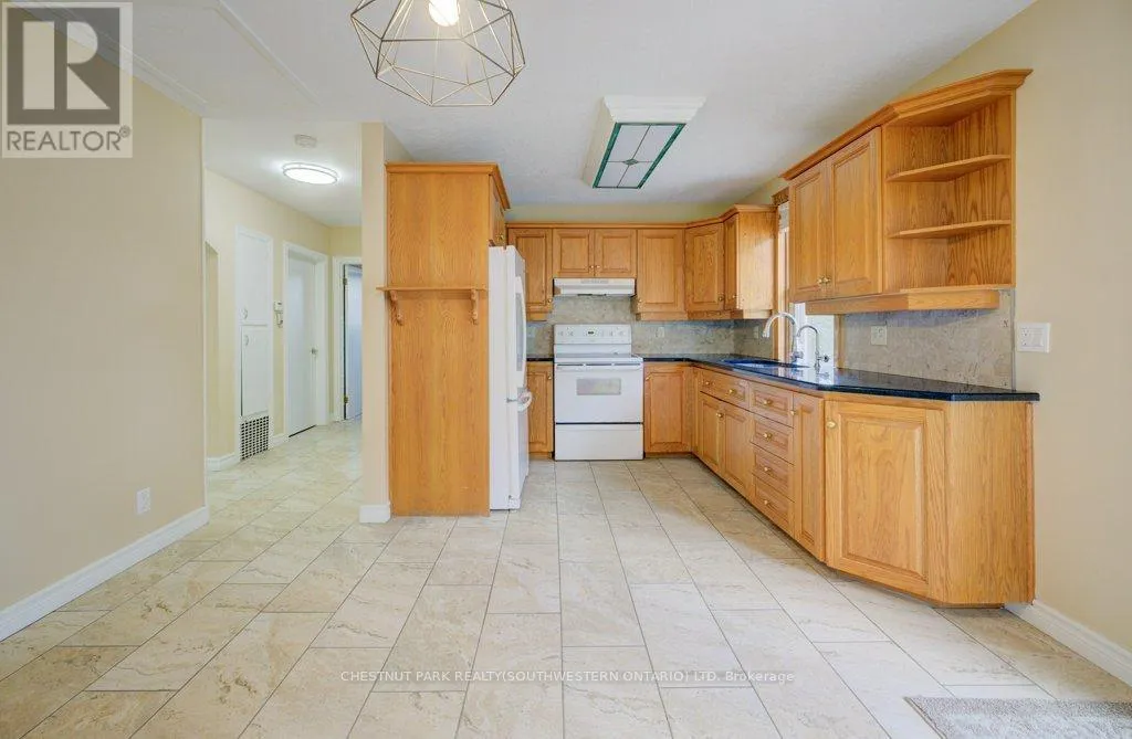 Bruce St to Ephraim St Expect to be impressed by this charming home featuring an oversized tandem garage (30' x 18') and a deep 150-foot private lot. The garage is ideal for two vehicles with additional side storage, or the perfect space to pursue your hobbiesfully insulated and equipped with a 100-amp electrical panel and separate entrance door. The concrete driveway accommodates 4+ vehicles, while the spacious, tree-covered backyard offers privacy and tranquility with no rear neighbours. This property comes with full approvals and all permit fees paid to convert the home into a duplex, and it can even be transformed into a triplex by converting the existing garage into an Accessory Dwelling Unit (ADU). All approved drawings and documentation are available in the supplementsan exceptional opportunity for investors or those seeking a multi-unit living setup without the time and cost of new approvals. The open-concept kitchen and dining area includes a convenient walk-in pantry, double-door storage closet, functional cabinetry, and granite countertops. The bright and cozy living room features a wall of windows with California shutters and updated flooring, creating a welcoming space for relaxation or entertaining. A separate entrance to the finished basement with a 3-piece bath provides an excellent potential rental or in-law suite opportunity. Recent updates include new flooring (making this home carpet free), an updated main floor bathroom, and fresh paint throughout. The high-efficiency gas furnace and central A/C, fully finished basement with pot lights, and upgraded sanitary main line (2024) are also new additions. Located just minutes from the expressway, schools, shopping, and public transitthis home truly offers comfort, convenience, and value. Immediate possession available! (id:27476)