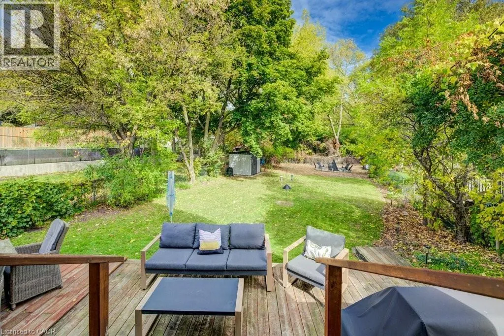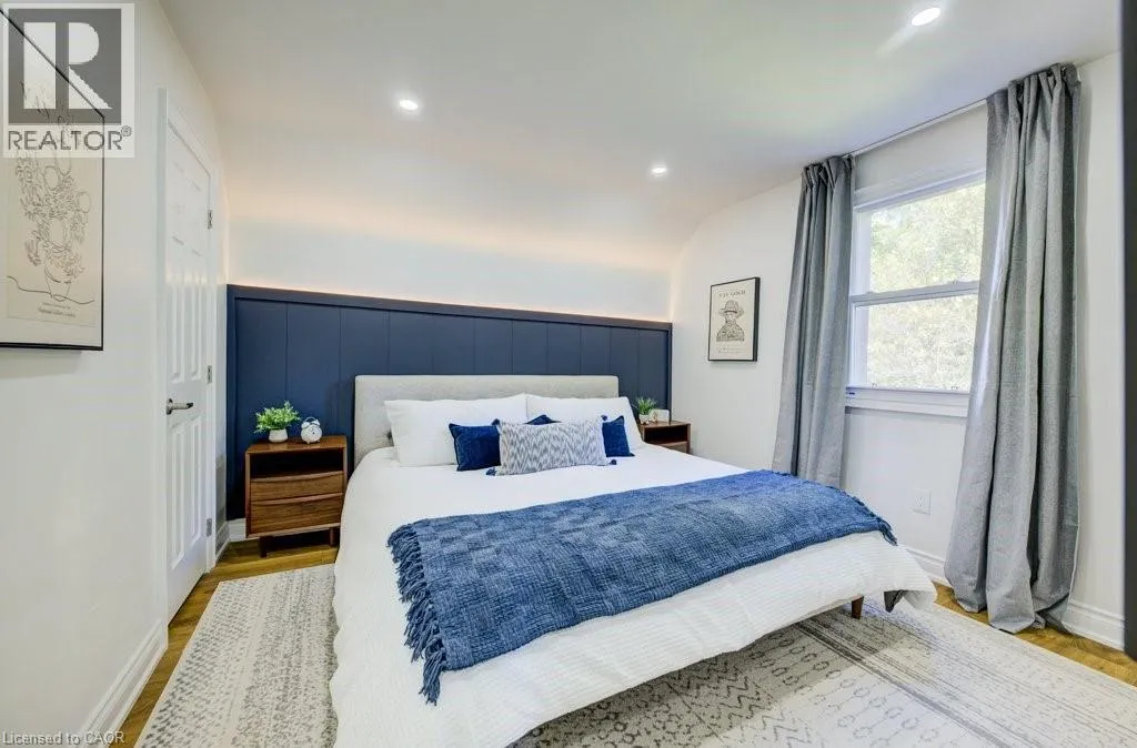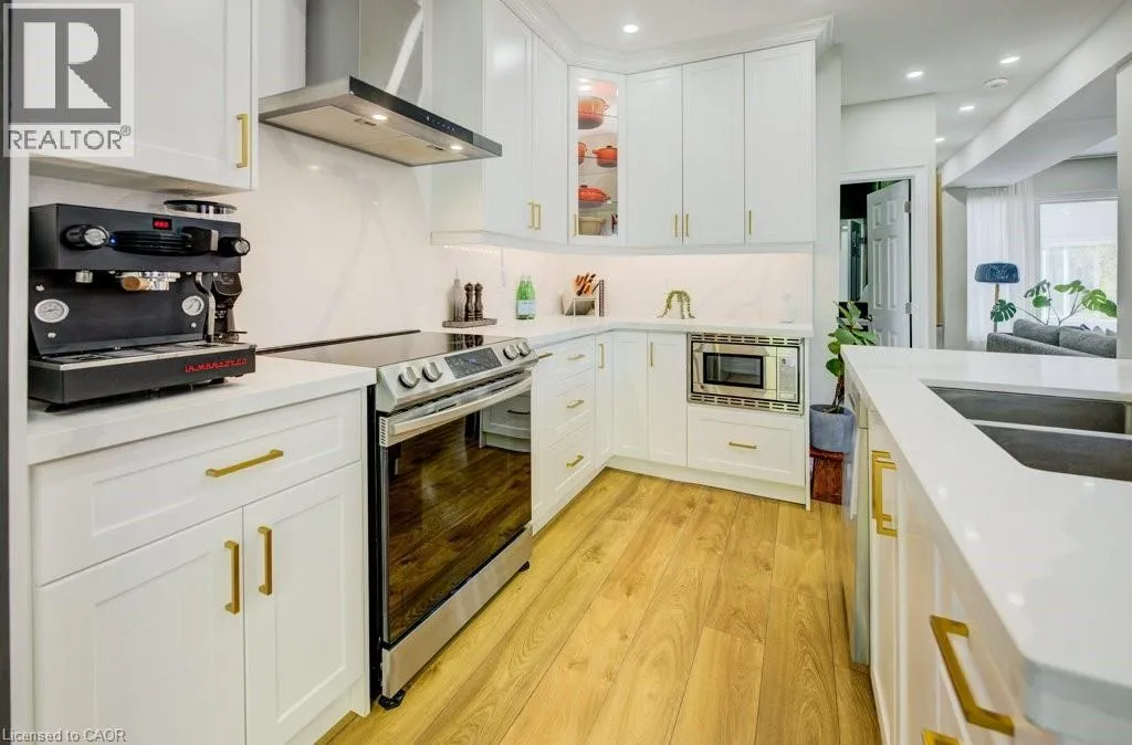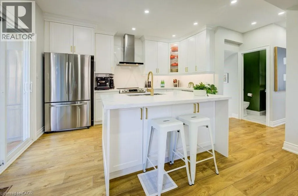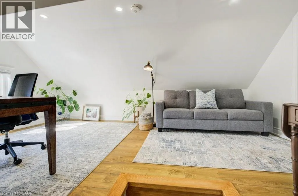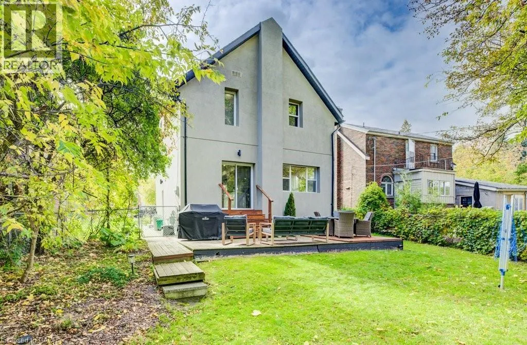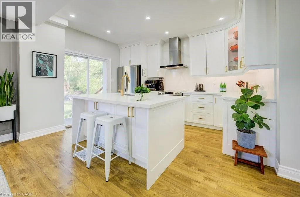 Highland to West Ave to Homewood Ave. Welcome to this stunning 2.5 storey home in one of Kitchenerâs most desirable neighbourhoods, surrounded by mature trees and trails at your fingersteps. Offering over 2300 sq ft of finished living space on a fully landscaped lot, this move-in ready home blends charm with high-end modern updates. Step into the bright sunroom, ideal as a mudroom or sitting area, before entering the fully renovated interior featuring a carpet-free layout, custom finishes, pot lighting, and thoughtful design throughout. The open-concept main floor includes a bright living room with built-ins and a spacious dining area surrounded by oversized windows. The custom kitchen is a true showpiece with an oversized island with storage, double sink, gold hardware, sleek stone countertops, ample cabinetry, and a stunning stone backsplash, space that is perfect for entertaining or everyday living. Upstairs, you will find the primary suite that features two closets, integrated lighting, and a luxurious newly updated ensuite with steam shower, floor-to-ceiling glass, built-in shelving, and high-end tile. The second bedroom is very spacious with generously sized closet, and the third is ideal as an office or den. A gorgeous 4-piece main bath with double vanity, glass shower doors and marble accents completes this level. And if that werenât enough space, a retreat awaits! Accessed from the third room is the versatile upper loft which offers space for a bedroom, office, or playroom, with a bright window and large storage/closet. The finished basement (with separate entrance- in law potential) includes a cozy rec room with electric fireplace, pot lights, built-ins, laundry area, and extra storage. Outside, enjoy a private, fully fenced yard surrounded by mature trees, a deck for morning coffee, and a new fire pit area for evenings with friends. Minutes to Kitchener Market, Victoria Park, shops, restaurants, Google, LRT, GO Station, and expressway access. This is downtown living at its finest! (id:27476)