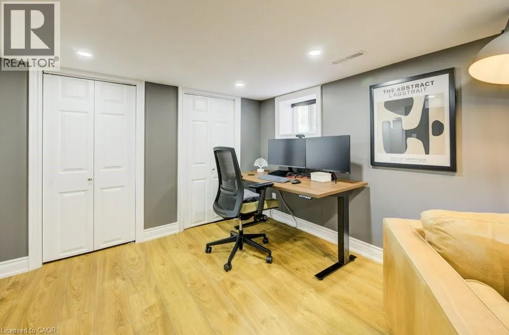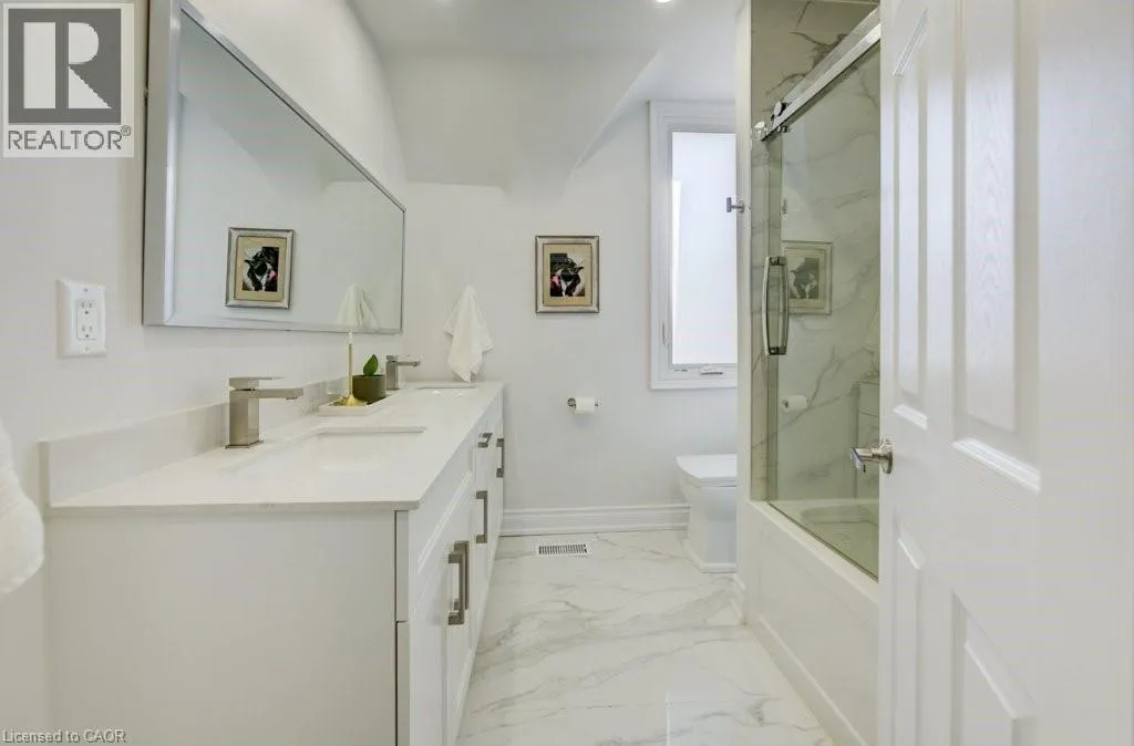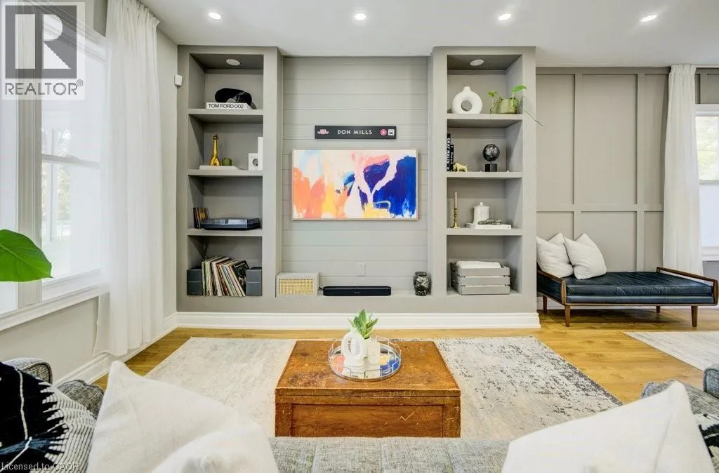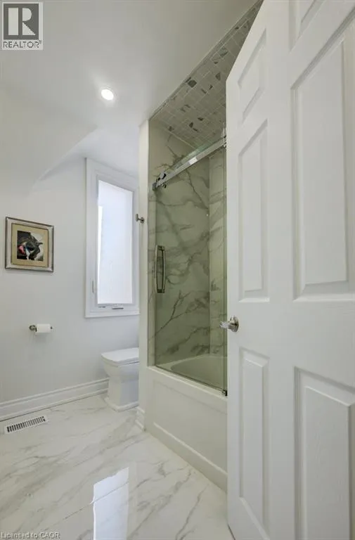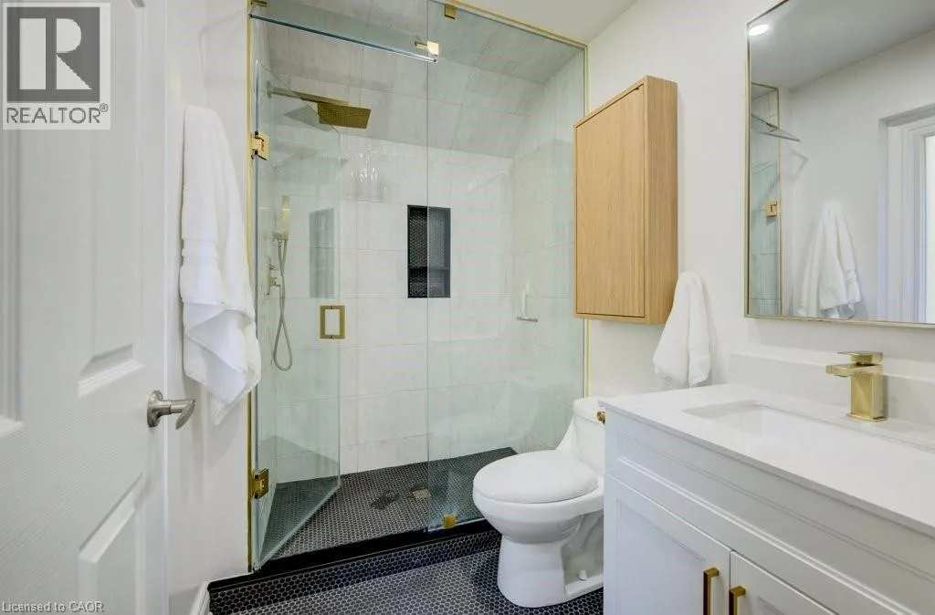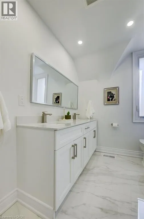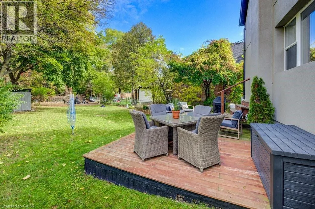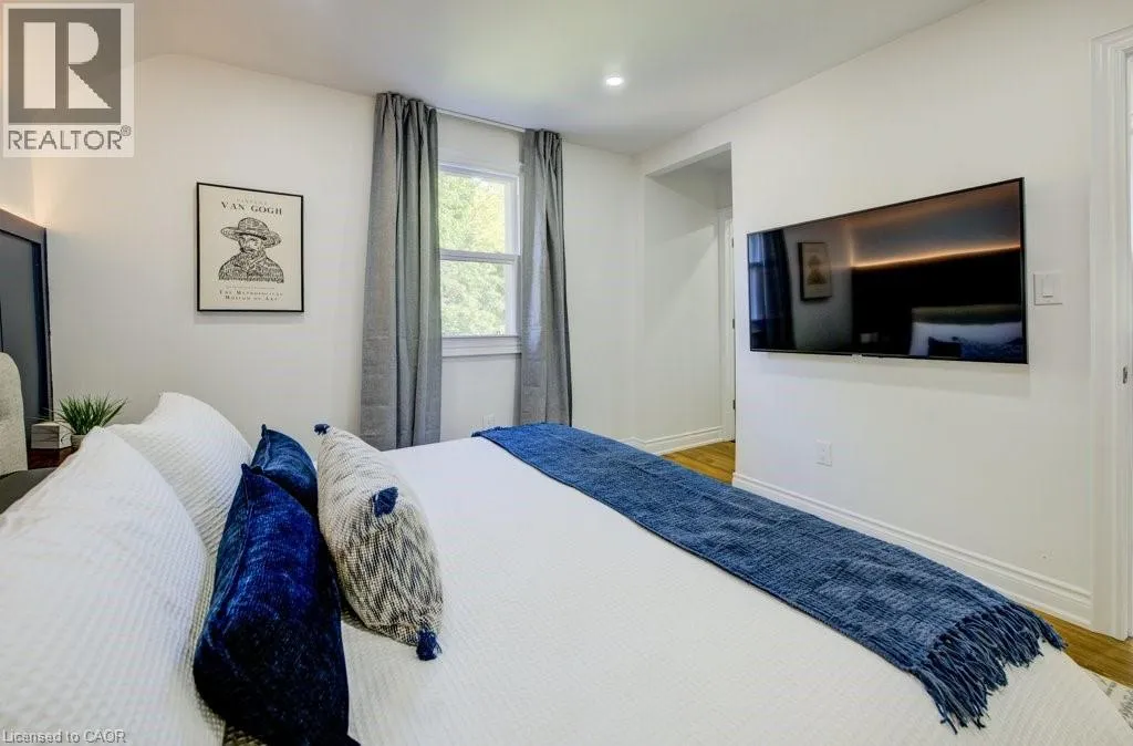 Highland to West Ave to Homewood Ave. Welcome to this stunning 2.5 storey home in one of Kitchenerâs most desirable neighbourhoods, surrounded by mature trees and trails at your fingersteps. Offering over 2300 sq ft of finished living space on a fully landscaped lot, this move-in ready home blends charm with high-end modern updates. Step into the bright sunroom, ideal as a mudroom or sitting area, before entering the fully renovated interior featuring a carpet-free layout, custom finishes, pot lighting, and thoughtful design throughout. The open-concept main floor includes a bright living room with built-ins and a spacious dining area surrounded by oversized windows. The custom kitchen is a true showpiece with an oversized island with storage, double sink, gold hardware, sleek stone countertops, ample cabinetry, and a stunning stone backsplash, space that is perfect for entertaining or everyday living. Upstairs, you will find the primary suite that features two closets, integrated lighting, and a luxurious newly updated ensuite with steam shower, floor-to-ceiling glass, built-in shelving, and high-end tile. The second bedroom is very spacious with generously sized closet, and the third is ideal as an office or den. A gorgeous 4-piece main bath with double vanity, glass shower doors and marble accents completes this level. And if that werenât enough space, a retreat awaits! Accessed from the third room is the versatile upper loft which offers space for a bedroom, office, or playroom, with a bright window and large storage/closet. The finished basement (with separate entrance- in law potential) includes a cozy rec room with electric fireplace, pot lights, built-ins, laundry area, and extra storage. Outside, enjoy a private, fully fenced yard surrounded by mature trees, a deck for morning coffee, and a new fire pit area for evenings with friends. Minutes to Kitchener Market, Victoria Park, shops, restaurants, Google, LRT, GO Station, and expressway access. This is downtown living at its finest! (id:27476)