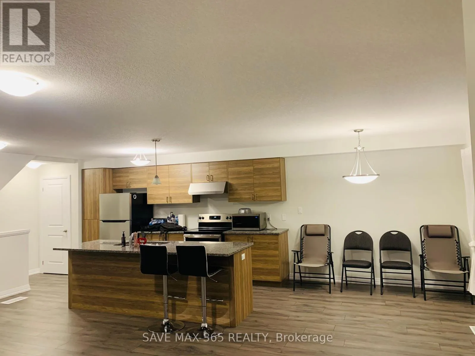Blair Creek Dr to Bank Swallow Welcome to this executive modern corner townhouse located in the highly sought-after community of Doon South! This bright and spacious home features 3 bedrooms and 2.5 bathrooms, offering a functional open-concept layout filled with natural light. The upgraded kitchen boasts a large island with a breakfast bar, sleek stainless steel appliances, and ample counter space-perfect for cooking and entertaining.Upstairs, you'll find 3 generously sized bedrooms, including a primary suite with a walk-in closet and ensuite bath. The added convenience of upper-level laundry makes daily living a breeze. This home combines style and practicality, ideal for families, professionals, or investors.Enjoy the benefits of being a corner unit with extra privacy and additional windows. Located within walking distance to top-rated schools, scenic walking trails, major highways, Conestoga College, and numerous retail amenities, this home offers the perfect balance of comfort and convenience.Don't miss the opportunity to own this move-in-ready townhouse in one of Kitchener's most desirable neighborhoods! (id:27476)