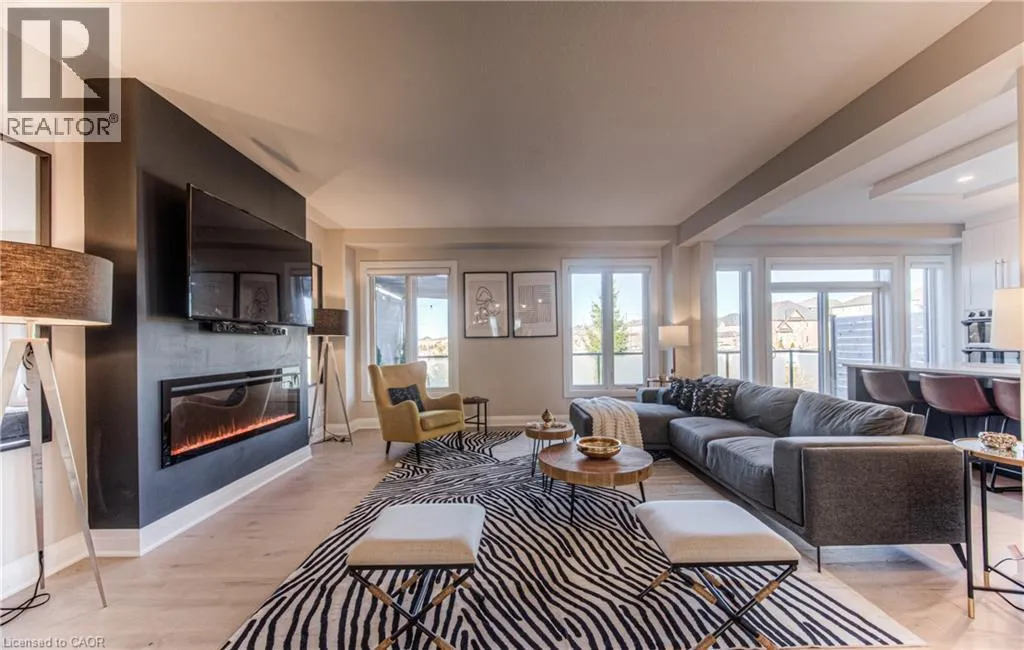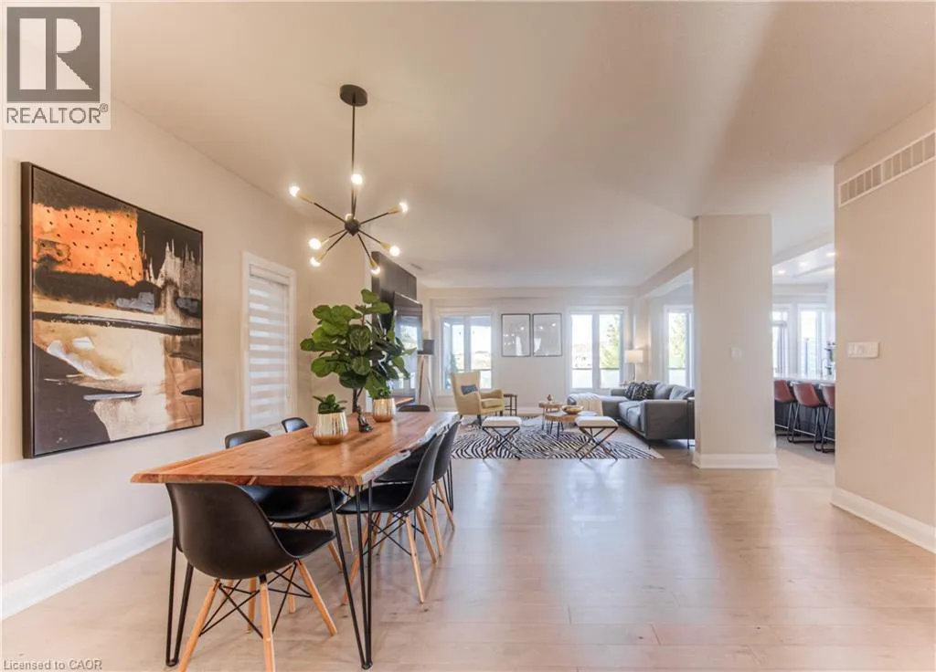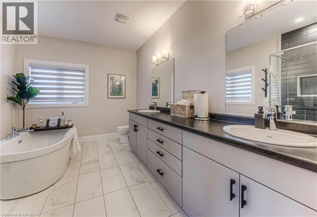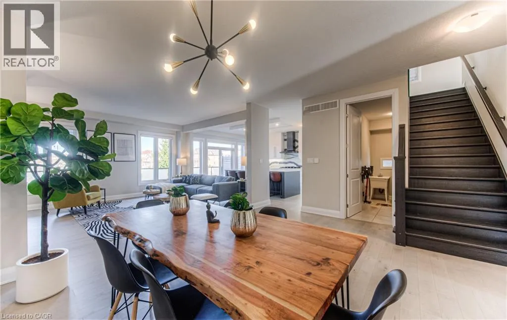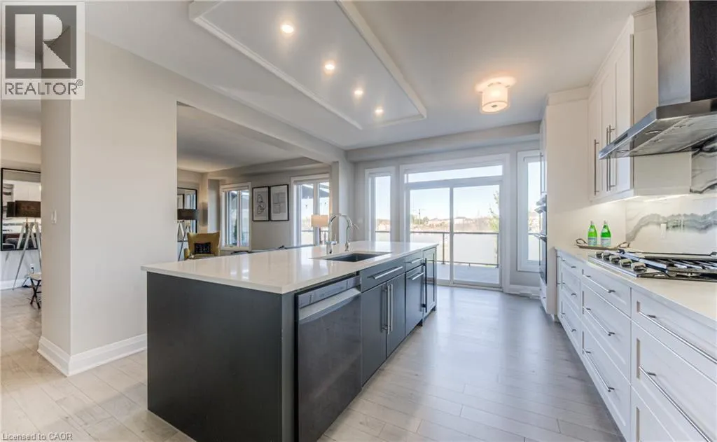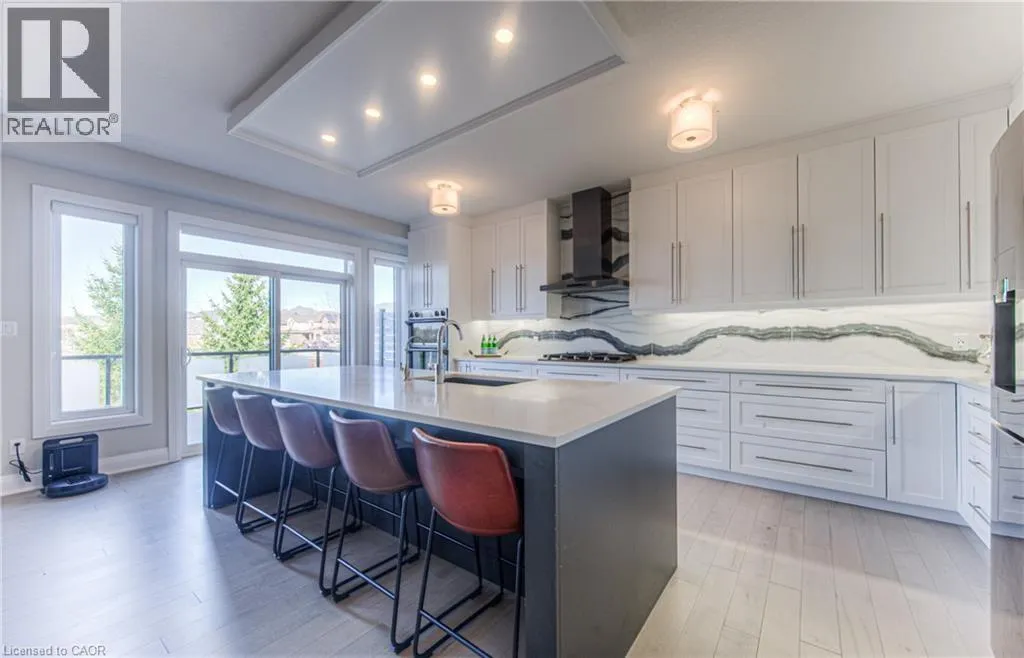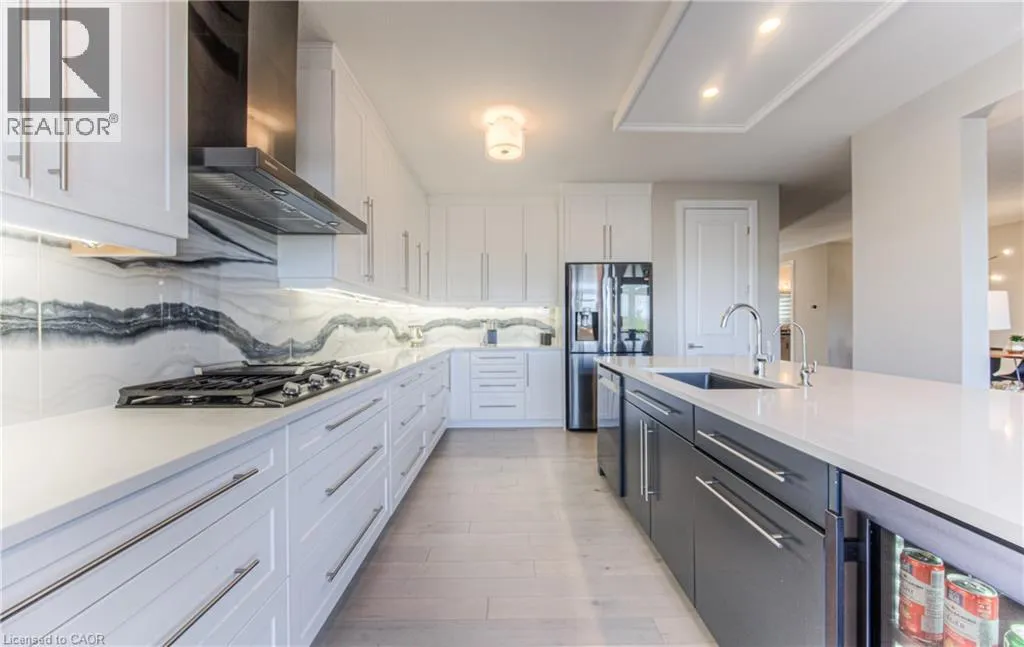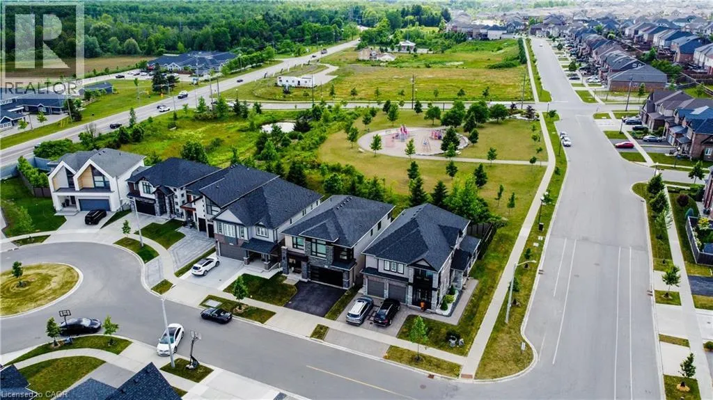 Robert Ferrie Dr / Blair Creek Dr / Thomas Pedder Court Live on a prestigious court surrounded by multi-million dollar executive homes, with Wetland Way Park as your private natural backdrop. Set on a premium lot, this modern residence offers nearly 3,900 sq. ft. of finished living space, thoughtfully designed with 9-ft ceilings on main and upper levels with a finished walk-out basement. The open-concept main floor showcases a custom chef's kitchen featuring a strikingly large island, full-height cabinetry, soft-close pots-and-pans drawers, and premium finishes-a perfect setting for both everyday living and elegant entertaining. The kitchen flows effortlessly into the dining and living areas and extends outdoors to an oversized composite deck, ideal for gatherings with family and friends. Upstairs, discover four spacious bedrooms plus a large family room with feature windows that can easily transform into a home office, cozy library, or even a fifth bedroom. The primary suite overlooks the park and deck, offering a spa-inspired ensuite and a walk-in closet with custom built-ins. Additional bedrooms are generous in size, filled with natural light, and designed with family comfort in mind. The walk-out basement is a versatile extension of the home-complete with a rec room for entertaining to the fully fenced backyard. A rough-in for a future wet bar or kitchen allows for easy conversion into a rental or in-law suite. This level includes a private office/nap room and a den currently converted into a walk-in seasonal wardrobe. Blending privacy, sophistication, and modern design, this home offers an exceptional lifestyle in one of Kitchener's most sought-after neighbourhoods. Enjoy proximity to top-rated schools, scenic trails, and tranquil green spaces, all within an exclusive community of executive homes. With its family-friendly setting, luxurious finishes, and direct access to nature, this residence truly defines the best of upscale living-the perfect place to call home. (id:27476)