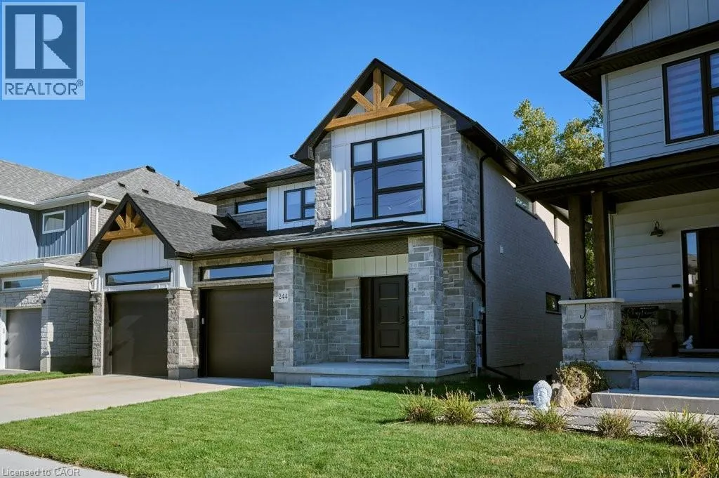 Lackner Rd to Otterbein Rd Welcome to 244 Otterbein Road....Your new dream home! This stunning 2021 custom Ridgeview Homes build will amaze you! This two story home is located in one of Kitchener's most family and friendly neighborhoods. The main floor features nine foot ceilings, a spacious foyer, laundry/mudroom, powder room and an open concept kitchen with large family room surrounded with large windows, gas fireplace mantel and sliding doors that lead to your new deck enjoying beautiful views of your greenspace. The gorgeous white kitchen with stainless steel appliances, large island, quartz countertops and new light fixtures to match are perfect for entertaining family and friends. The second level features three bedrooms, two 5 piece bathrooms and a seating area that can be a forth bedroom if needed. There wasn't a detail that was missed in this home including engineered floors, wood staircase, enlarged garage interior and lawn sprinkler system. The fully finished walkout basement is completed perfectly to match the upstairs of home. With similar floor, nine foot ceilings, gas fireplace mantel, 4 piece bathroom, cold room, storage space, and spacious rec room area. Sliding doors will lead you to your clean backyard fully fenced backing onto your greenbelt. You are minutes to highway, schools, transit, trails and shopping making everyday life so easy. This home is move in ready and waiting for its new owners. Book your private showing today! (id:27476)