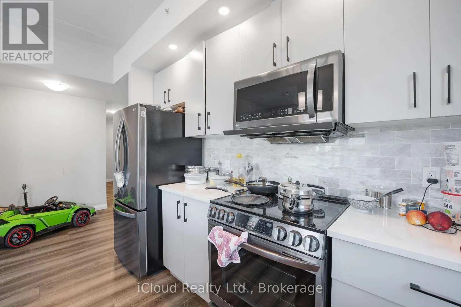 Victoria/Garment Live the Good Life at Garment Street Condos! Luxury 2-bedroom, 2-bath corner unit in Kitchener's Innovation District. Approx. 976 sq. ft. with open-concept layout, engineered hardwood floors, quartz counters, and stainless steel appliances. Enjoy top amenities-rooftop pool, BBQs, gym, yoga studio, urban park, and 24-hour concierge. (id:27476)