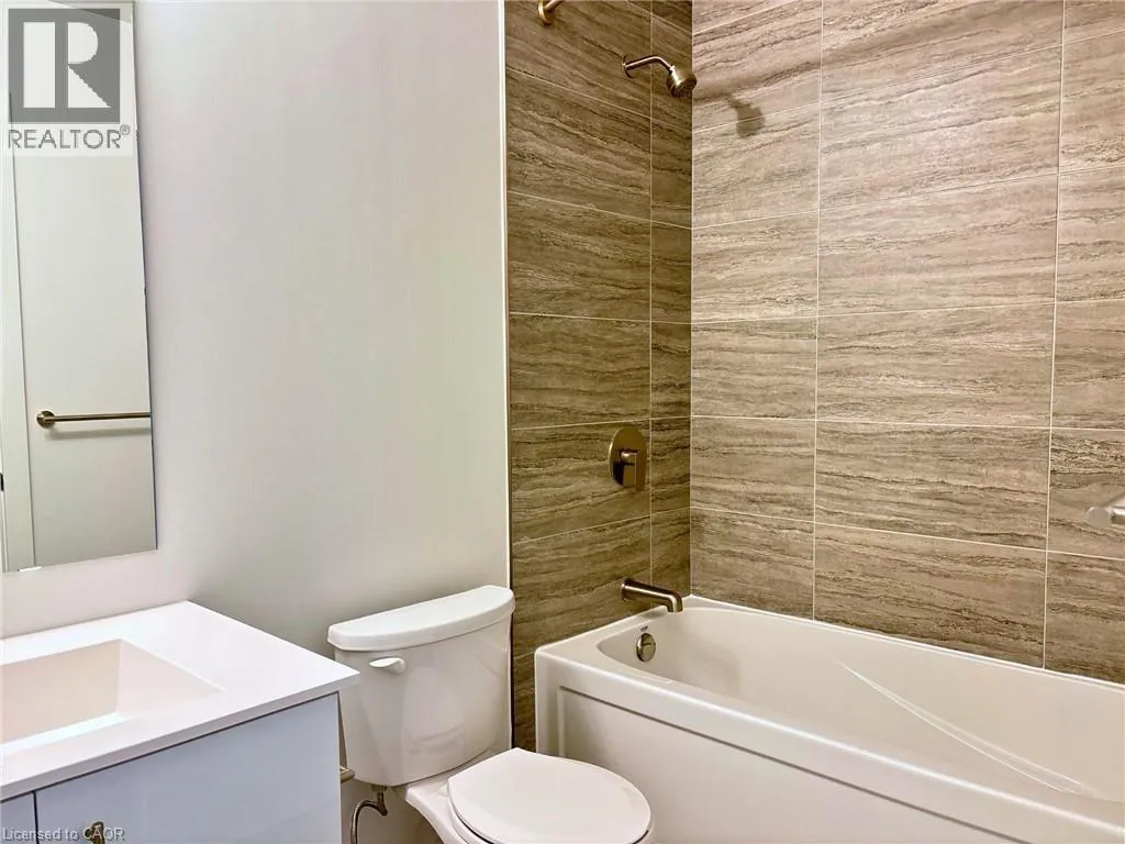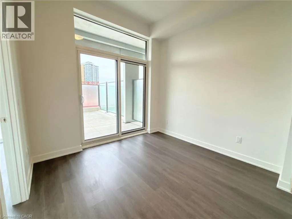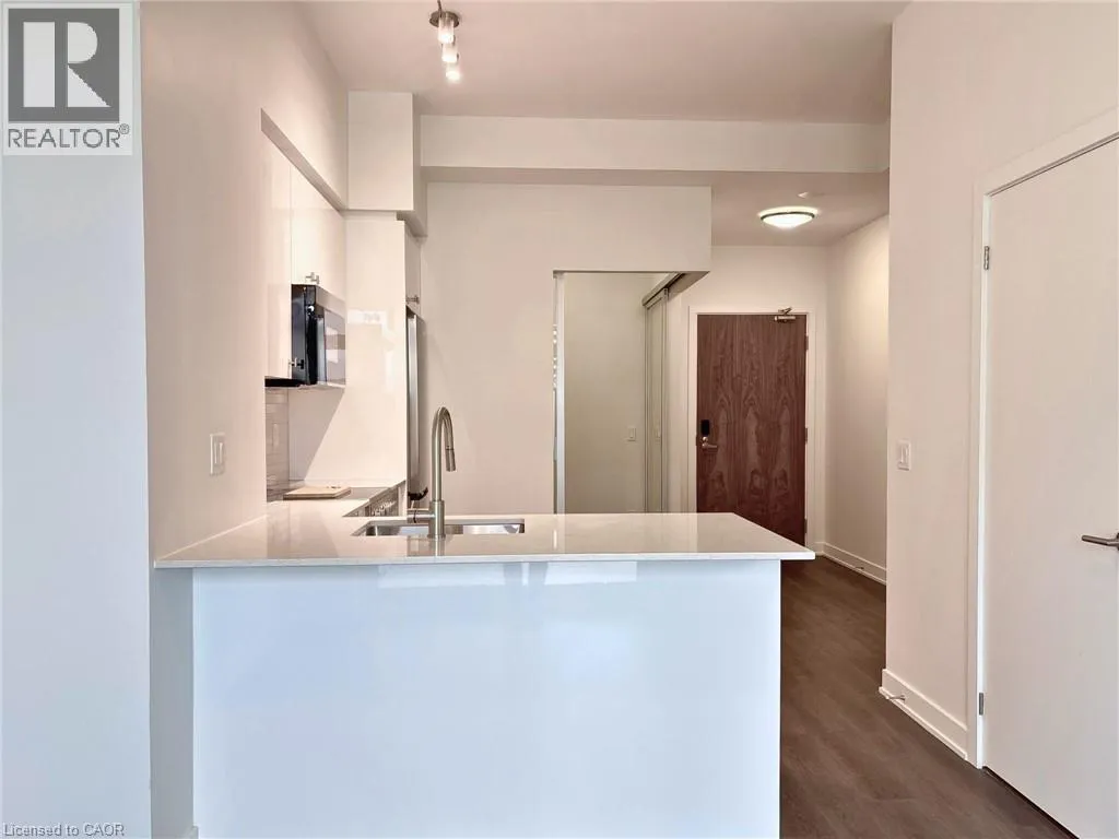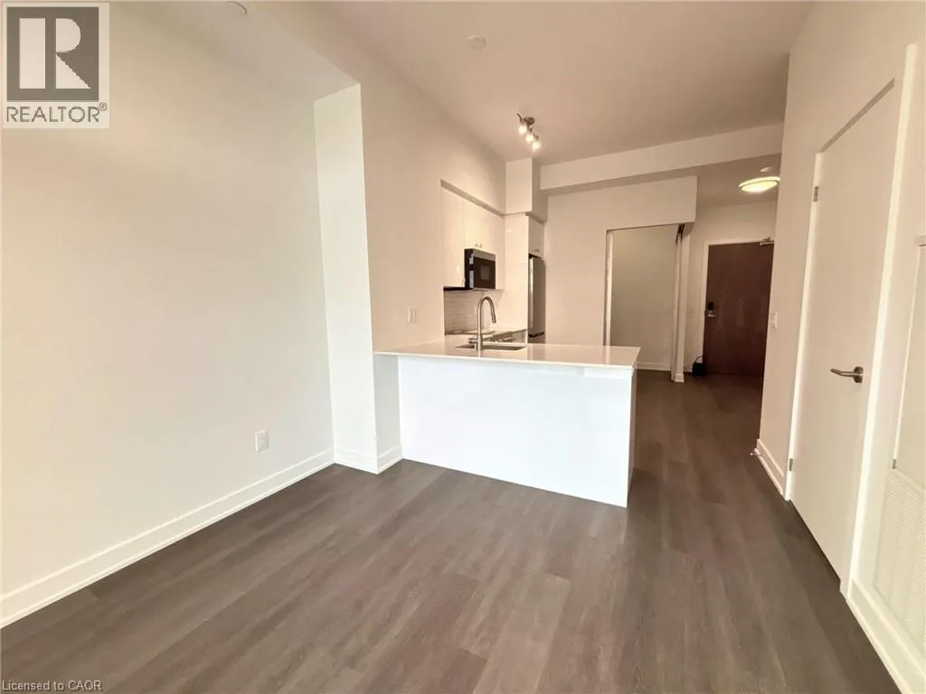 King St W to Wellington St S First Monthâs Rent Free! This rare podium 1-bedroom plus den suite offers a larger layout and an expansive private terrace. The den has sliding glass doors, perfect for a home office or flexible space. The kitchen includes stainless steel appliances and plenty of counter space with a breakfast bar, while the bedroom features a walk-in closet. Bright, open, and well laid out, itâs an easy place to feel at home. Rent includes internet, A/C, and heat; tenants pay hydro and water. Residents can enjoy on-site amenities such as a sauna, outdoor gym, and half running track, as well as full access to all Station Park building amenities, including a fitness and Peloton studio, bowling lanes, indoor lounge and bar, music room, and hydro-pool swim spa. (id:27476)