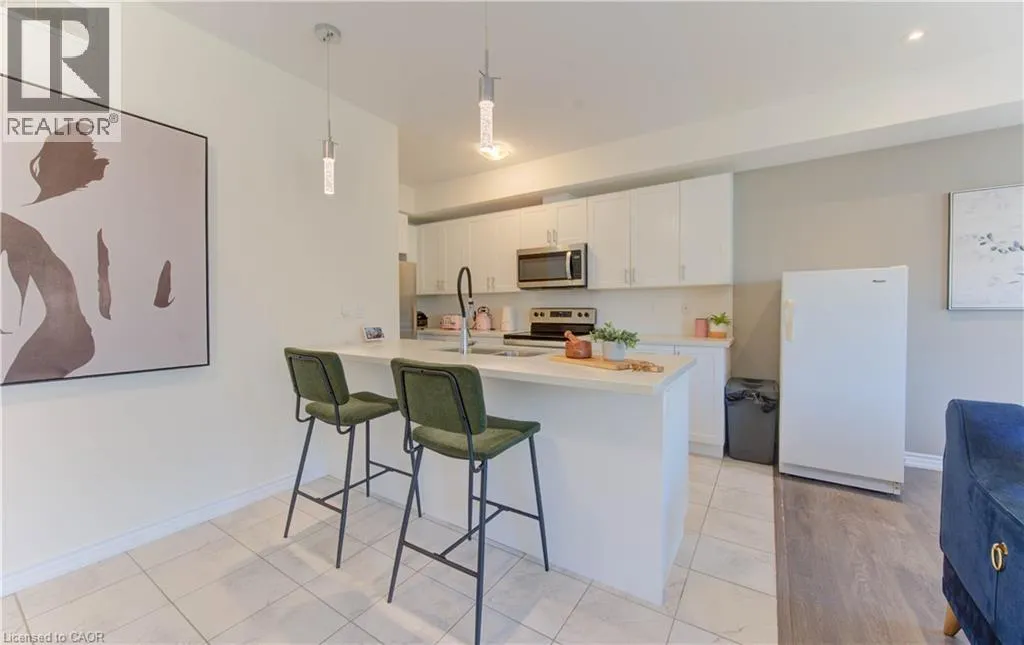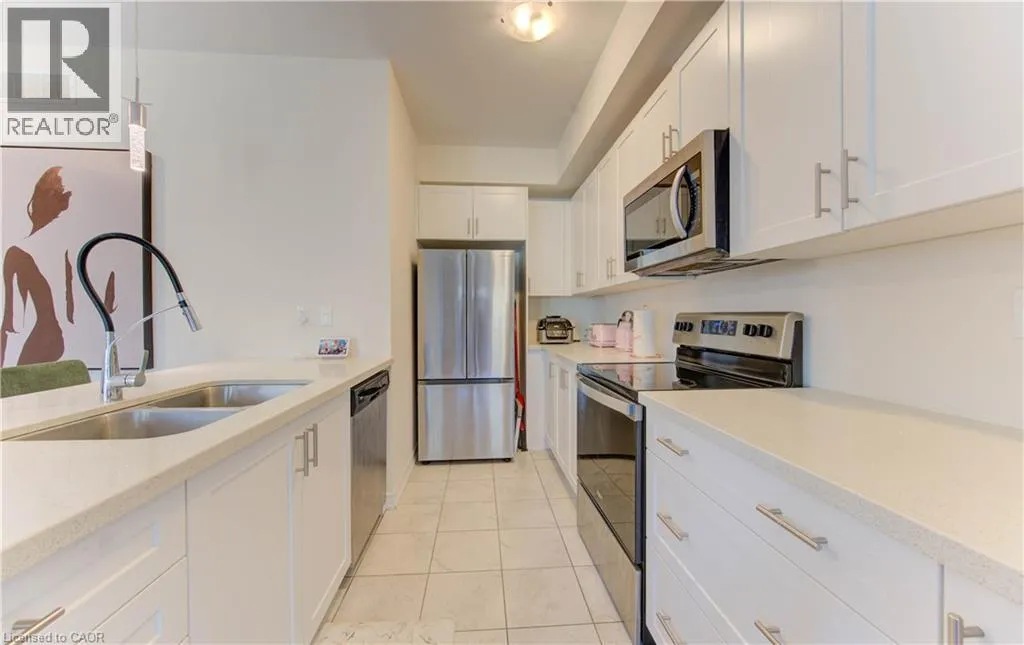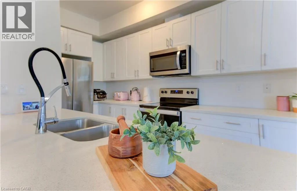 Off of Glasgow St. TWO PARKING SPACES! Welcome to 385B Westwood Drive â affordable, move-in ready condo living! This bright END-UNIT stacked townhome offers a modern open-concept main floor with 9-foot ceilings, plenty of natural light, and a walkout to your private patio. The stylish kitchen features quartz countertops, stainless steel appliances, and a breakfast bar â perfect for casual dining or entertaining. The lower level includes two comfortable bedrooms, a full bath with soaker tub, and thoughtful upgrades like a hardwood staircase and custom closet organizers. What truly sets this home apart? Two owned parking spaces â a rare and valuable feature! Add in the UNBEATABLE LOCATIONâ close to schools, shopping, transit, quick access to the expressway, and a short walk to Westmount Golf & Country Club â and youâve got a home that checks all the boxes. Whether youâre a first-time buyer, downsizer, or investor, this is affordable living without compromise. (id:27476)