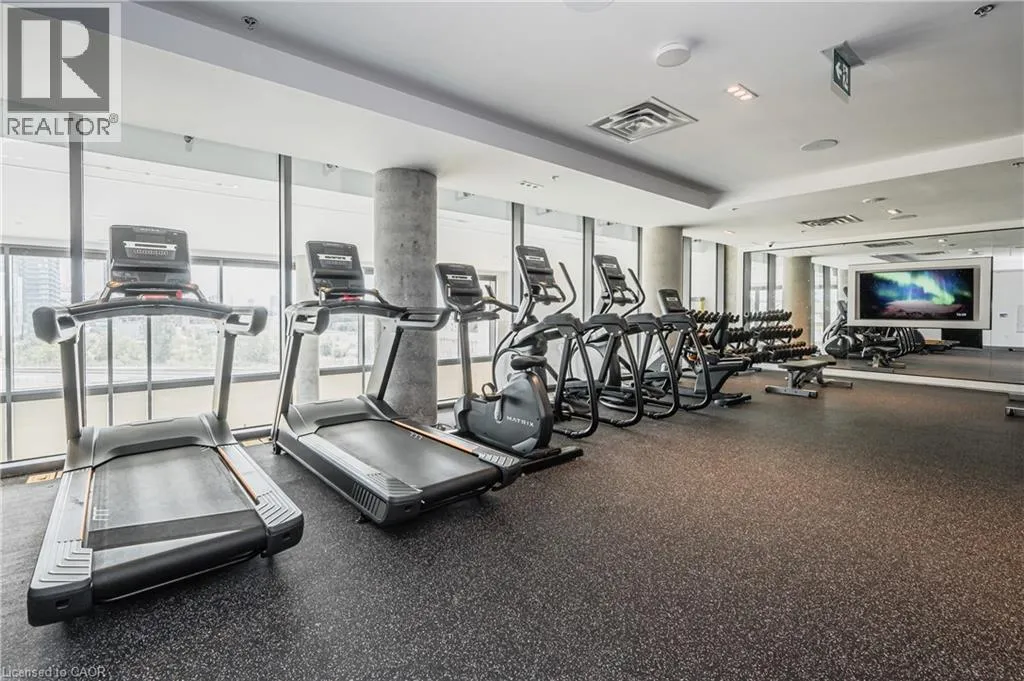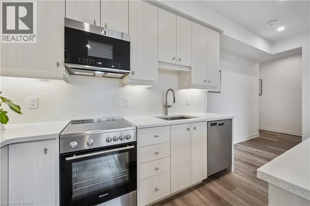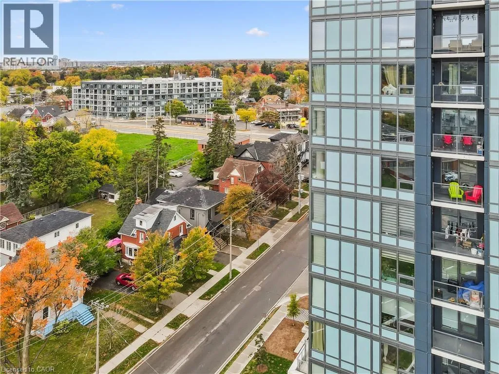 King & Wellington St S VIEWS FOR DAYS!! Welcome to Station Park â where modern living meets unmatched convenience in the heart of downtown Kitchener. With thousands spent on upgrades, this corner 2-bedroom, 2-bath unit comes with underground parking and storage locker. Perched up on the 9th floor, enjoy spectacular views of the city overtop the trees. This spacious and well appointed unit offers an upscale bright kitchen, with upgraded island with seating, clean quartz countertops, penny shaped backsplash and ample counter and cupboard storage. The kitchen opens up to the living room that is filled with tons of natural light and unobstructed views. Make your way to the primary bedroom, fit with ceiling to floor windows all the way around and spectacular views of the neighbourhood and Uptown Waterloo. Enjoy your private ensuite with glass walk-in shower. The second bedroom is a great size - perfect for an office or for guests with another full bath. Your private balcony is the perfect place to unwind. The unit features in-suite laundry, 1 underground parking space and storage locker. Internet is included in the condo fees. Steps from Google, the School of Pharmacy and Medicine, the MedTech Hub, CommuniTech, KPMG, and countless restaurants, cafes, and shops. With the LRT and GO Train at your doorstep, the entire city and region are within easy reach. Station Park is known for offering some of the most impressive amenities in the region. From a fitness studio with yoga space, hydrapool and hot tub, to an ice rink, bowling alley, arcade hall, jam room, amphitheater, party room, outdoor work pods, sauna, Peleton room - youâll never run out of ways to work, play, or unwind right at home. Don't miss the chance to experience a vibrant, connected lifestyle at Station Park - downtown living at its very best. (id:27476)