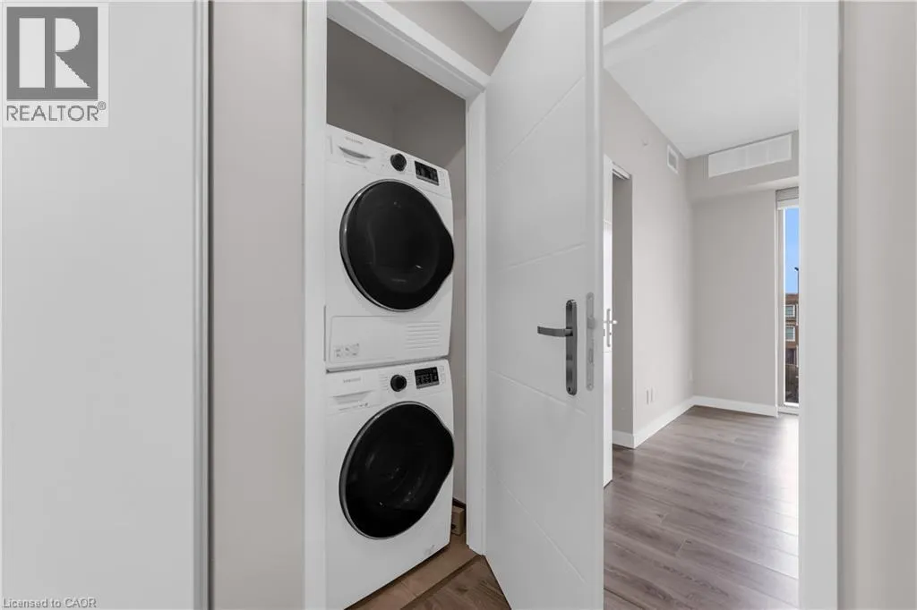 Duke St E and Frederick St Welcome to unit 307. This rare 2-bedroom, 2-bath condo located in the heart of Kitchener. The unit is 823 sq. ft and the largest 2-bedroom unit in the building. Located on the podium level, you can skip the elevator and access your unit directly from your owned parking spot on the 3rd floor. The layout boasts a spacious primary bedroom with a walk-in closet, while the second bedroom features double closets, all fitted with upgraded organizers. Additional highlights include automated powered roller shades, private balcony and in-suite laundry. The condo is close to it all- LRT access, Conestoga College, government buildings and great restaurants. Don't miss out on this rare opportunity to own a spacious unit in one of Kitchenerâs premier buildings! (id:27476)