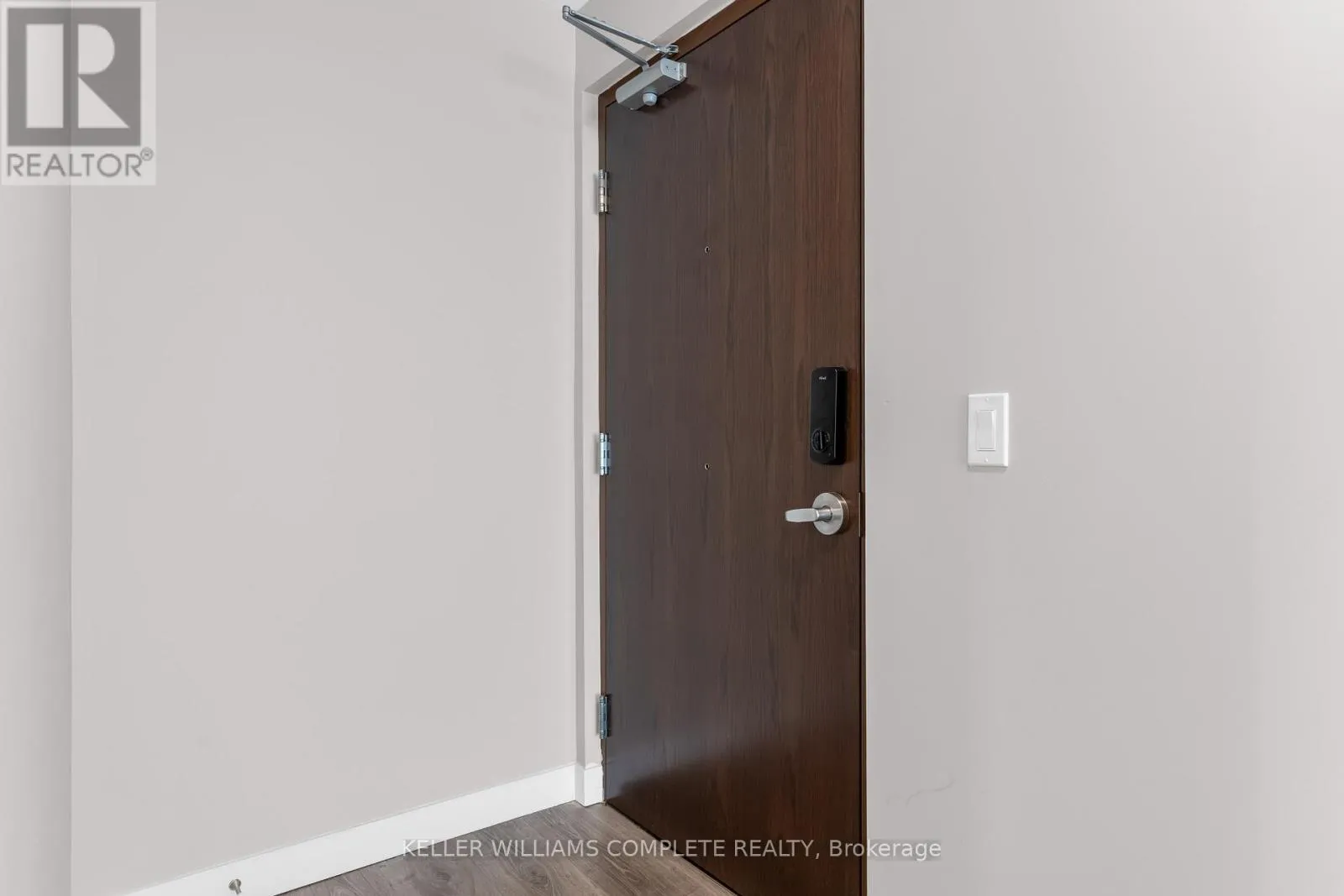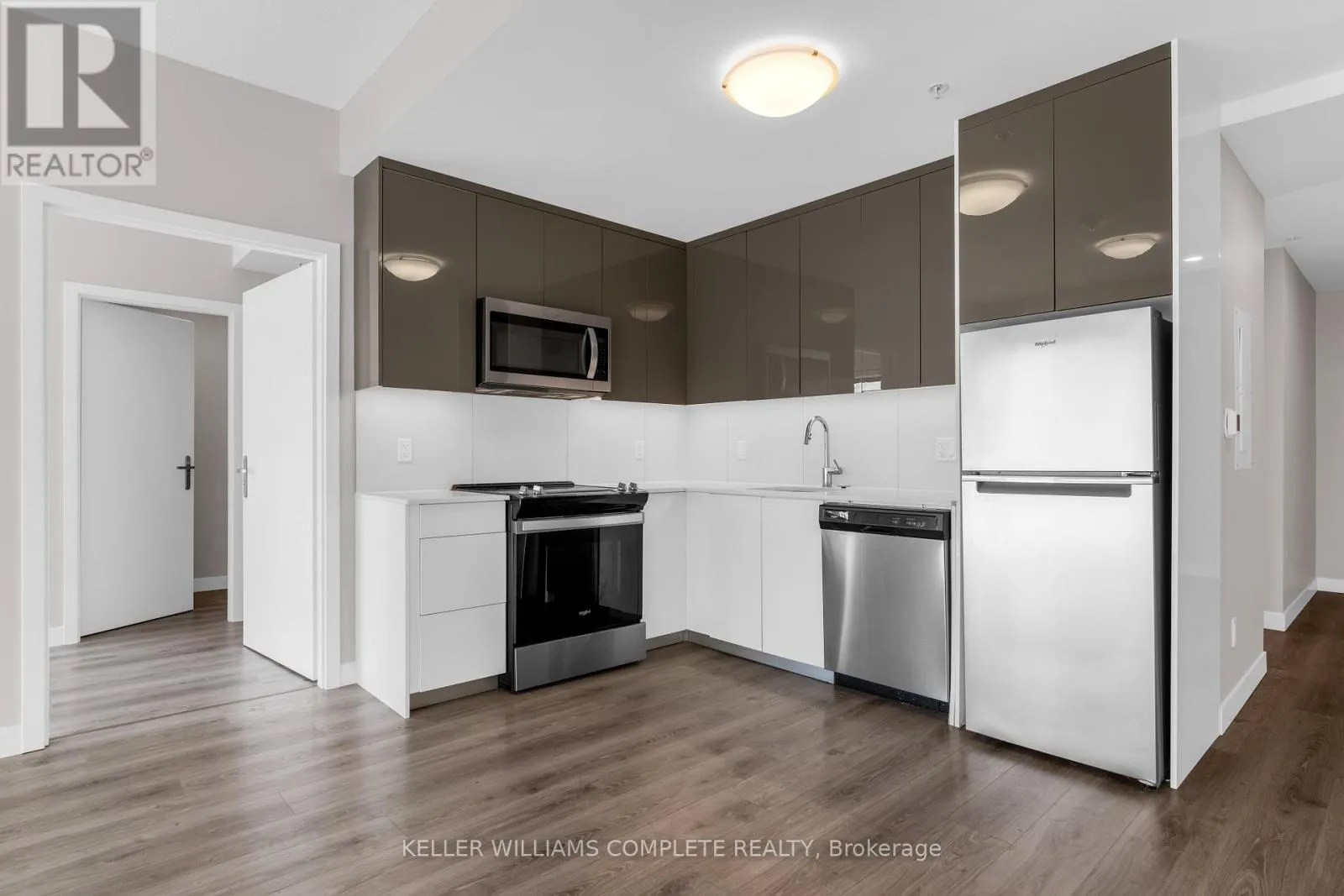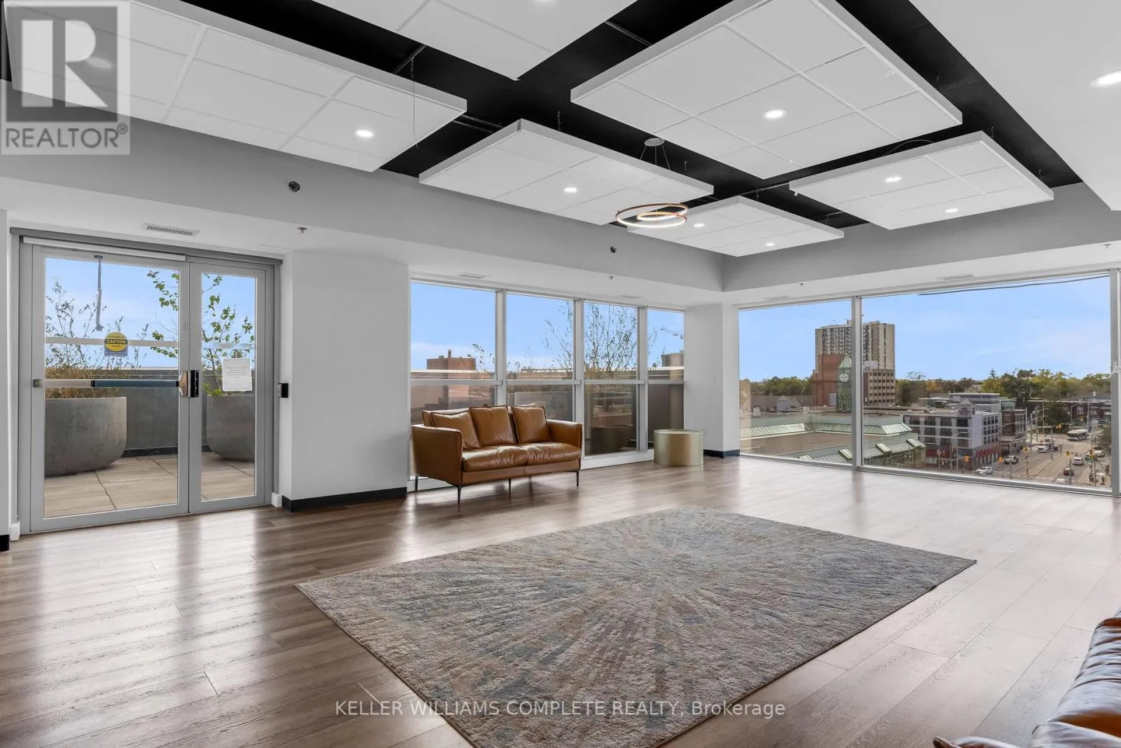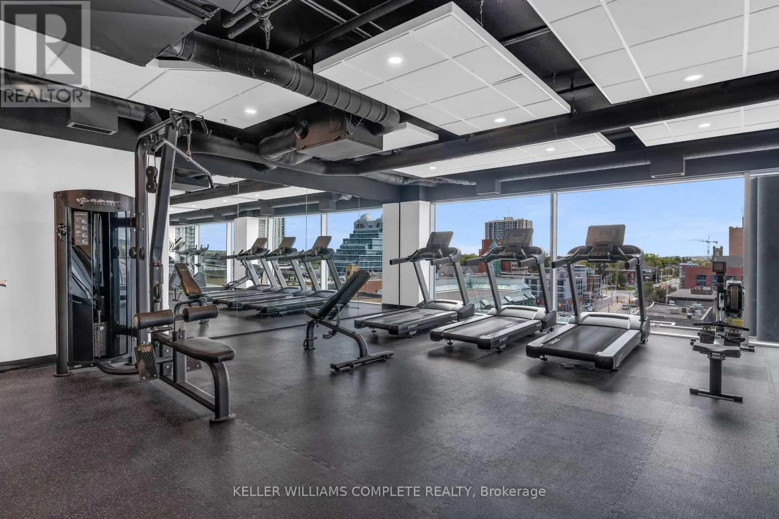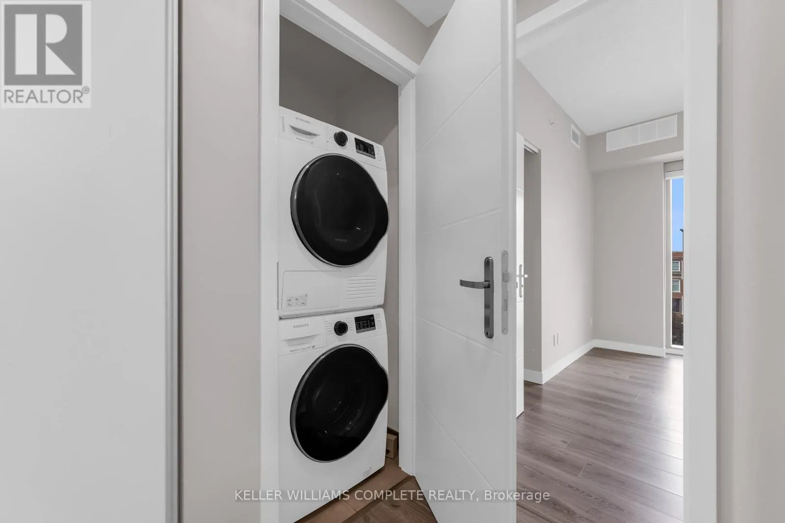 Duke St E and Frederick St Welcome to unit 307. This rare 2-bedroom, 2-bath condo located in the heart of Kitchener. The unit is 823 sq. ft and the largest 2-bedroom unit in the building. Located on the podium level, you can skip the elevator and access your unit directly from your owned parking spot on the 3rd floor. The layout boasts a spacious primary bedroom with a walk-in closet, while the second bedroom features double closets, all fitted with upgraded organizers. Additional highlights include automated powered roller shades, private balcony and in-suite laundry. The condo is close to it all- LRT access, Conestoga College, government buildings and great restaurants. Don't miss out on this rare opportunity to own a spacious unit in one of Kitchener's premier buildings! (id:27476)