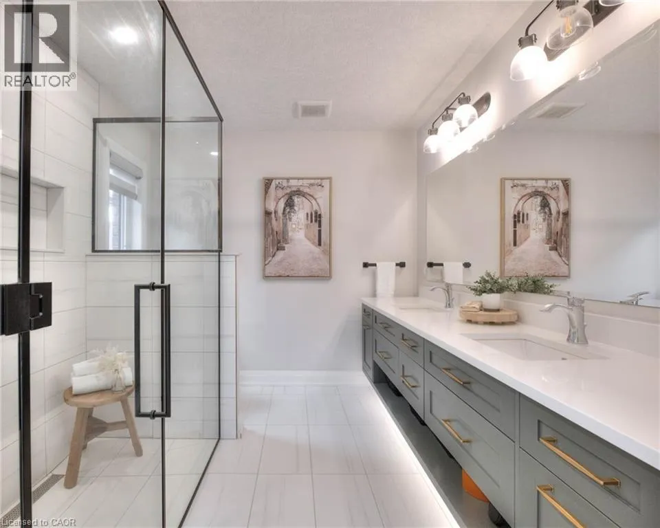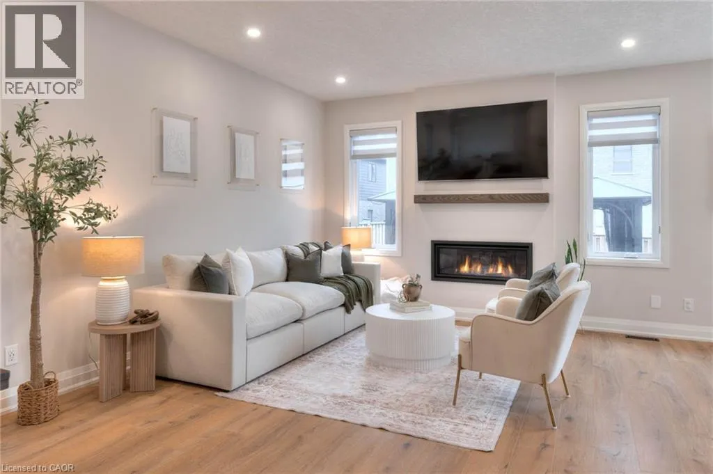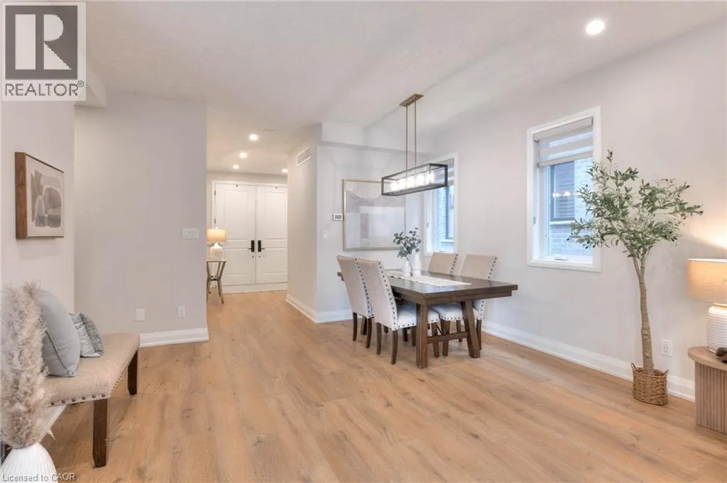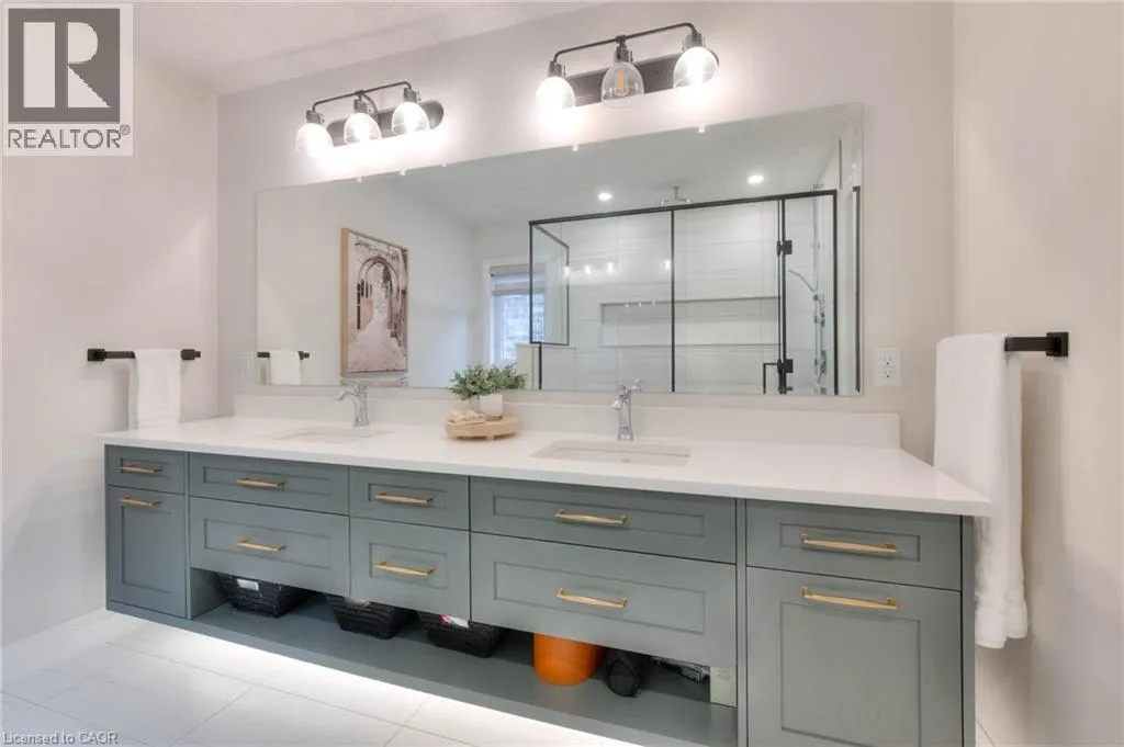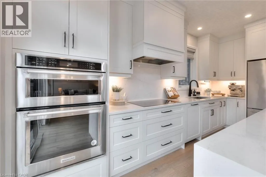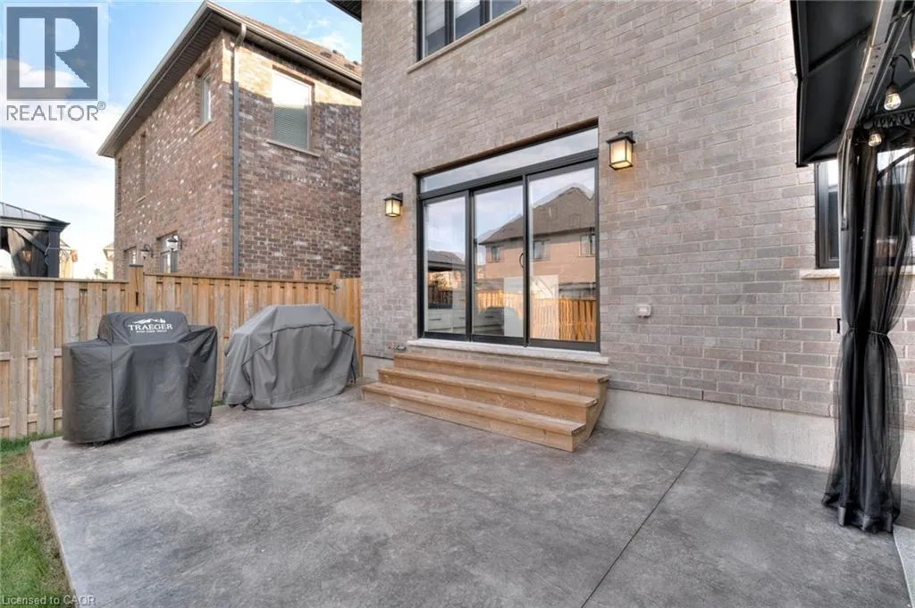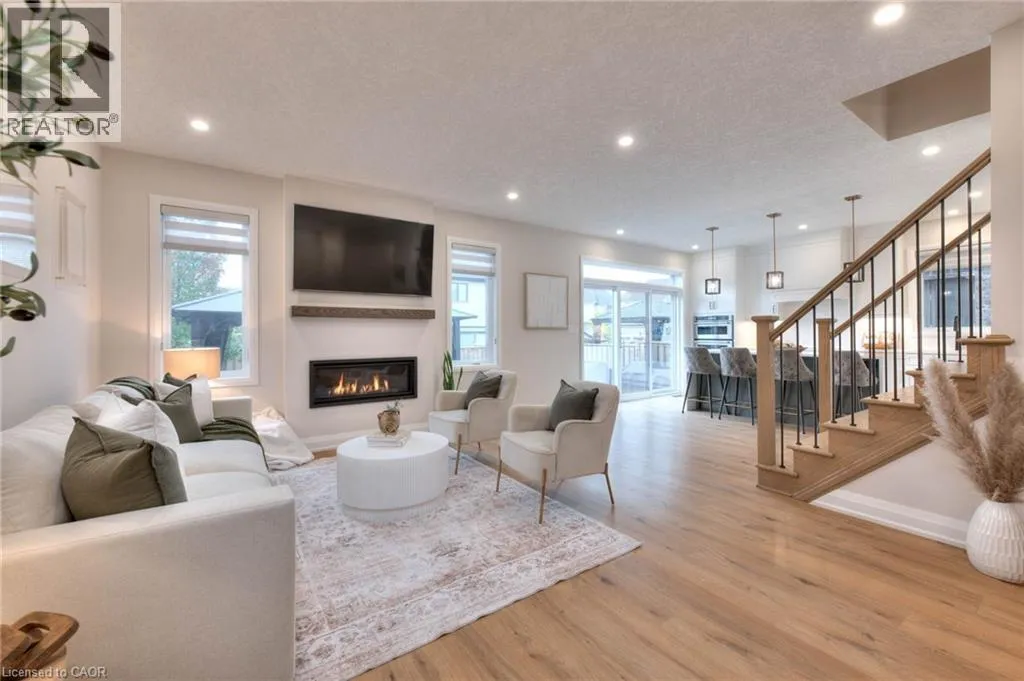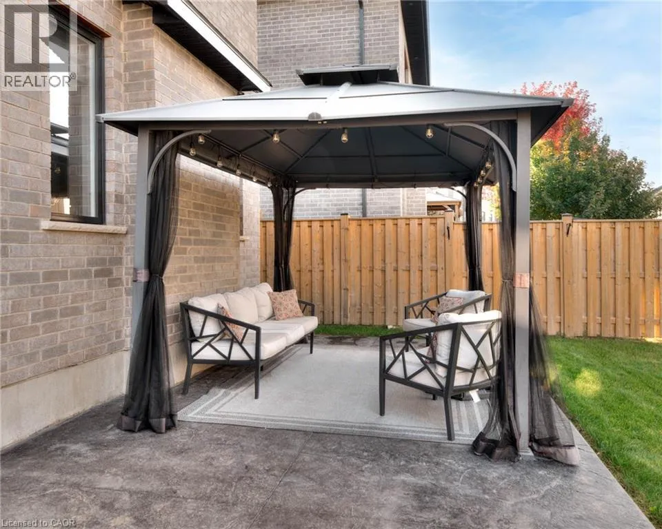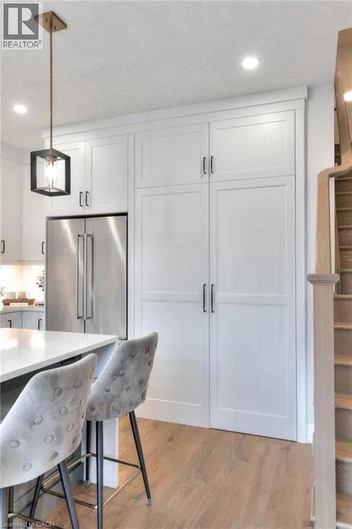 Apple Ridge Drive to Forest Creek Drive. Located in Kitchenerâs highly sought-after Doon South neighbourhood, this 4-bedroom, 3.5-bath detached two-storey blends modern elegance with everyday family comfort. Built in 2021 with over $100,000 in builder upgrades, this home features a chefâs kitchen with a massive double waterfall-edge island, dovetail drawers with integrated organizers and spice racks, a custom walk-in pantry, built-in microwave, oven, and cooktop, and a hidden panel-ready dishwasher. The mudroom offers custom shelving for functional storage, and the two-car garage is EV ready. Upstairs, youâll find four well-sized bedroomsâtwo with walk-in closetsâand a serene primary ensuite showcasing a floating vanity and a barrier-free glass shower with a rainfall shower head. The basement adds a finished 4-piece bath, and a wet bar rough-in. Outdoors, enjoy a large stamped-concrete patio with gazebo and a natural gas BBQ lineâperfect for family gatherings and summer barbecues. Walking distance to J.W. Gerth Public School and close to parks, trails, and all family conveniences, this exceptional Doon South home perfectly combines thoughtful upgrades with timeless comfort. (id:27476)