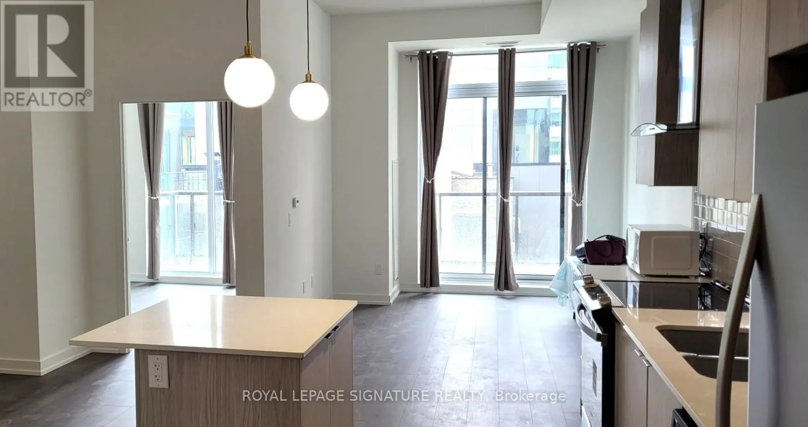 Young Street / Duke Street Stylish Downtown Kitchener Condo - Modern Living in the Heart of the City - Welcome to this stunning 1+1 bedroom suite offering 728 sq. ft. of beautifully designed indoor living space plus a 108 sq. ft. private balcony, perfect for morning coffee or evening relaxation. Bathed in natural light from large windows with blackout curtains installed and featuring 9' ceilings, this open-concept home blends modern elegance with everyday functionality. The contemporary kitchen is equipped with Whirlpool stainless steel appliances, sleek quartz countertops, and ample cabinetry, seamlessly flowing into the dining and living areas. The bedroom offers a peaceful retreat, while the den provides flexibility as a home office or guest room. The large, accessible washroom adds comfort and practicality, complemented by in-suite laundry for effortless urban living. Ideally located with the LRT station right outside the building entrance, this condo places you steps away from City Hall, Google, KW's Tech Hub, restaurants, shopping, and Victoria Park-the vibrant heart of Kitchener's cultural and business district. Enjoy the excitement of downtown living while staying connected to transit, entertainment, and green spaces. Residents enjoy premium amenities, including a state-of-the-art fitness zone, rooftop running track, pet spa, and secure concierge services. The unit also includes a storage locker and an extra-large parking space conveniently located on the main level, directly across from the elevator-offering exceptional accessibility and convenience. Whether you're a first-time buyer, young professional, or investor, this property delivers the ideal mix of style, location, and long-term value. With its modern design, 9' ceilings, large windows, premium finishes, and unbeatable downtown location, this condo defines urban sophistication and contemporary comfort-a rare opportunity to own in one of Kitchener's most desirable developments. Experience the best of downtown living-refine (id:27476)