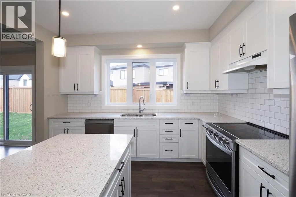 Victoria St & Lackner Blvd Four year old detached home offering approximately 2,140 sq. ft. of above-grade living space, located in the Grand River North area of Kitchener. The main floor includes a combined living and dining area, kitchen with quartz countertops, large island, and a main floor office, along with a two-piece bathroom. The second level contains four bedrooms and two full bathrooms, including a primary bedroom with an ensuite bath and walk-in closet. The lower level is unfinished, providing additional storage or future development potential. This property features an attached double-car garage with a private double driveway, accommodating parking for four vehicles. Services include municipal water, sanitary sewer, and natural gas. (id:27476)