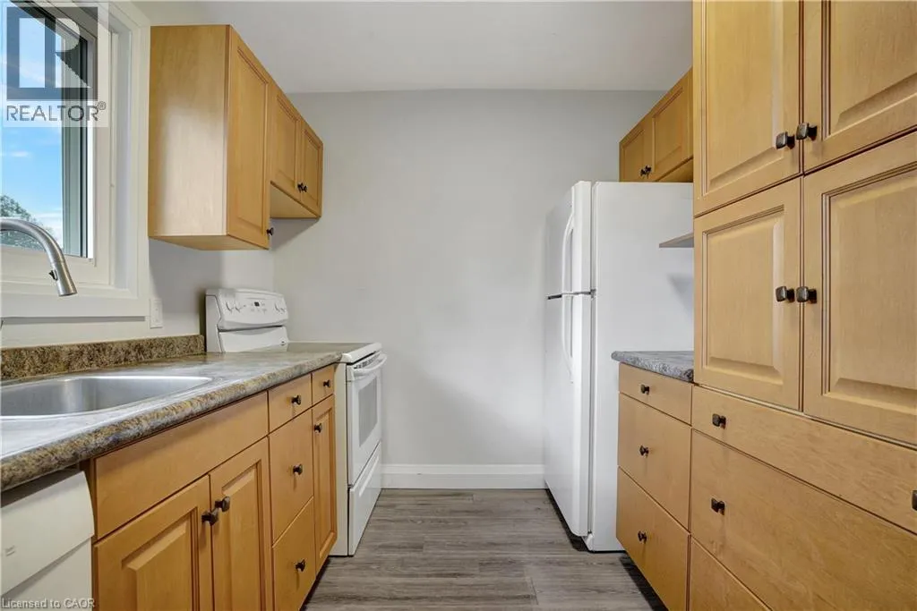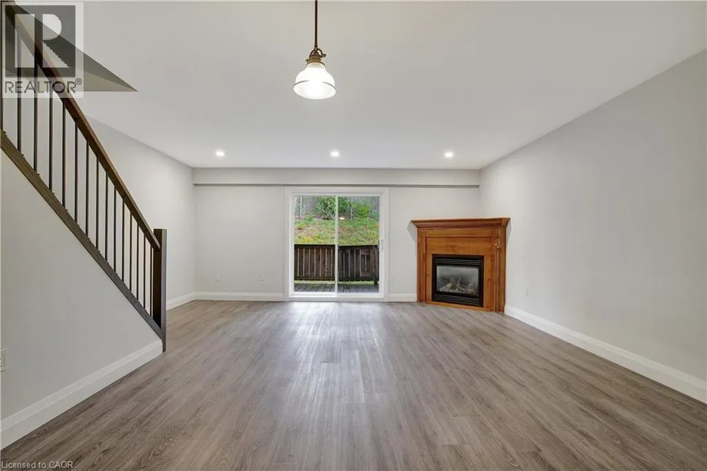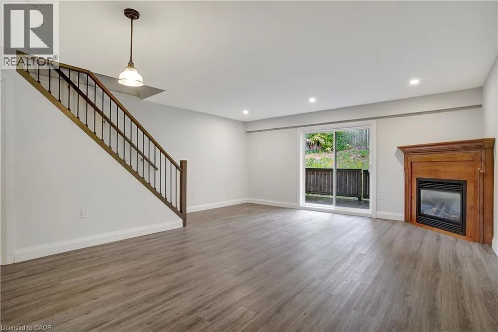 FAIRWAY RD TO JANSEN AVE Excellent property fully deep cleaned and ready to move-in for tenants. A townhouse condo with modern touches. Upper floor has 3 bedrooms and a 4 piece bath with soaker/jet tub. Galley kitchen has an abundance of cupboard space. The main floor living room boasts a gas fireplace and access to the backyard and open greenspace. Basement includes a finished rec room with laminate floor and separate unfinished laundry and furnace room with plenty of storage potential. Super close to hwys 7/8 and 401 and every amenity your family could need: mall, restaurants, movie theater, schools and recreational opportunities. (id:27476)