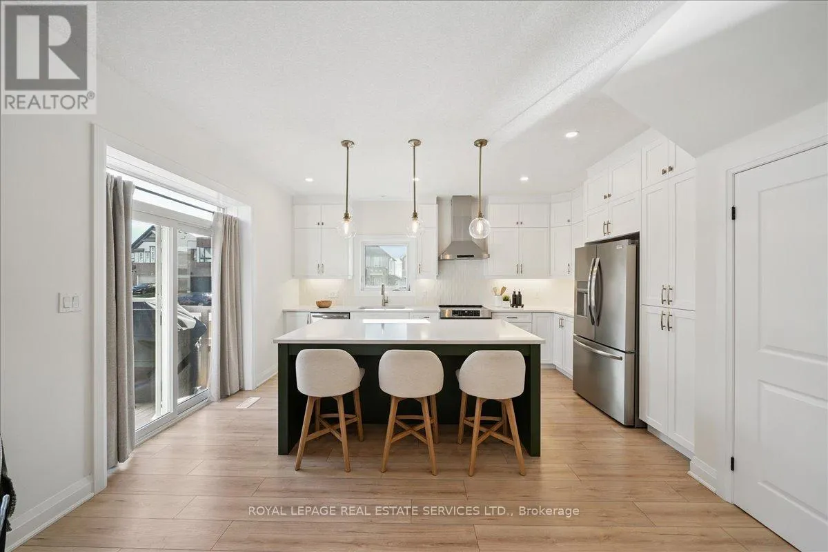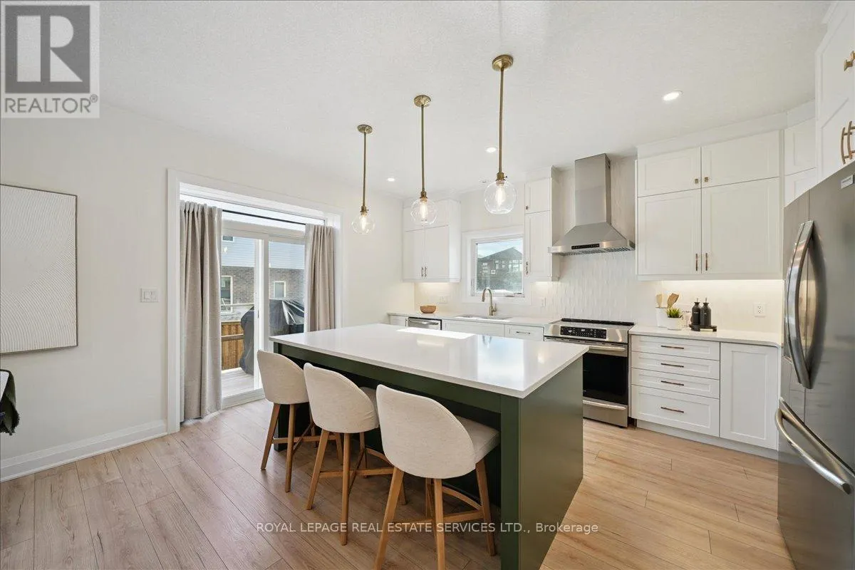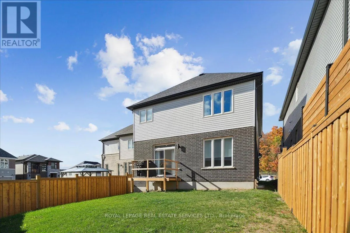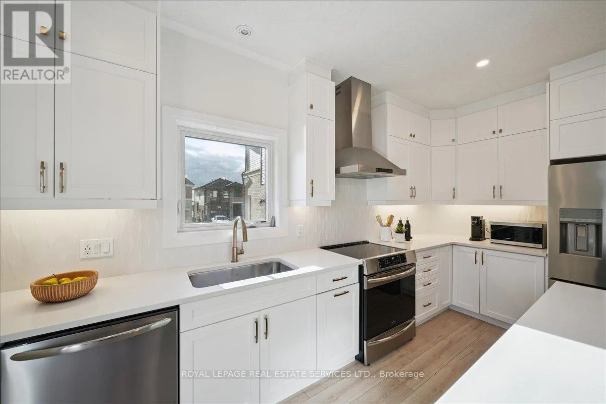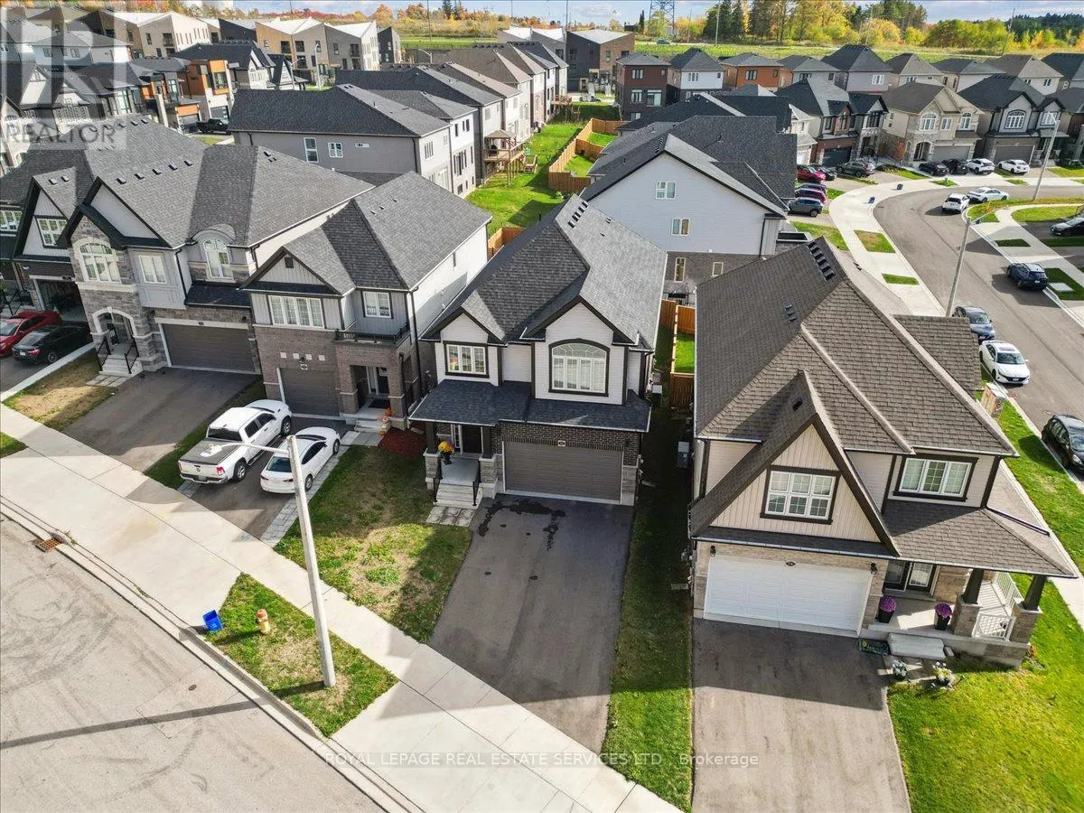 Cross Streets: Trussler Rd & Ottawa St S. ** Directions: Trussler Rd & Nathalie St. Discover your dream home in the heart of Kitchener's new, family-friendly Trussler West community. Nestled on a quiet street, this exquisite 2,382 sq.ft. residence blends tasteful modern finishes with timeless craftsmanship, creating a truly magnificent living space. From the moment you arrive, the home impresses with its classic brick facade and a double-car garage offering parking for four vehicles. Step into a bright, open-concept main level where 9-foot ceilings & continuous engineered hardwood floors establish a modern, airy atmosphere right from the foyer. The living and dining areas, illuminated by pot lights and chandeliers, create the perfect ambiance for both entertaining guests and quiet family evenings. The heart of the home is the stunning modern kitchen, a chef's delight featuring a large quartz centre island,custom backsplash,extended cabinetry, and stainless steel appliances. From here, slide open the doors to a walk-out deck. A main-floor office provides a quiet space for work or study. Upstairs, the primary bedroom serves as a personal sanctuary,a large walk-in closet, and a luxurious ensuite. Unwind in the elegant soaker tub or the spacious glass shower, and appreciate the privacy of a separate water closet and the convenience of double sinks. Three additional generous bedrooms share a well-appointed 5-piece main bath, thoughtfully designed with a water closet and double sinks to streamline morning routines. The home's potential continues with a large, unfinished basement-a blank canvas awaiting your personal touch. This Net Zero home is future-ready, with rough-ins for solar panels, an electric vehicle charger, and a basement bathroom and bar. Enjoy the perfect balance of tranquil nature, with the trails of Trussler Woods nearby, and commuter convenience, with easy access to Highways 7/8 & the 401. You're also just minutes from major shopping hubs like the Sunrise Shopping Centre. This is more than a house-it's the home you've been waiting for. (id:27476)
