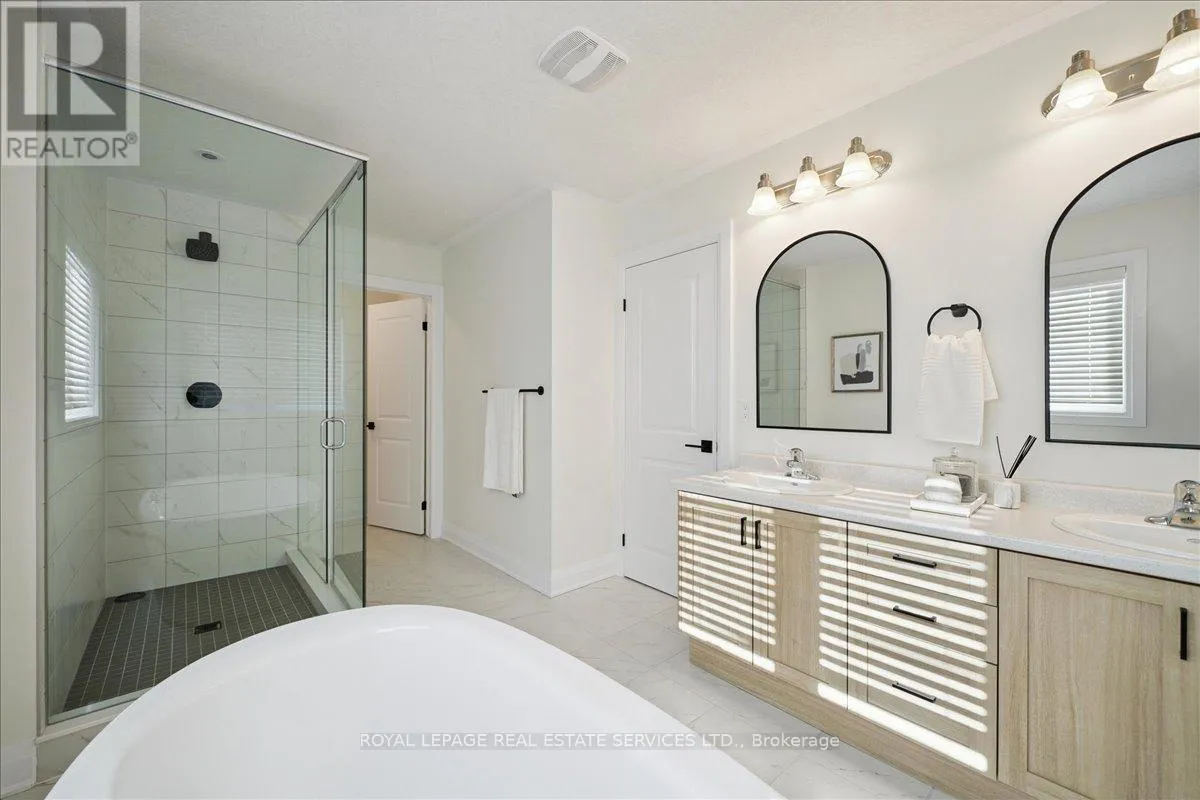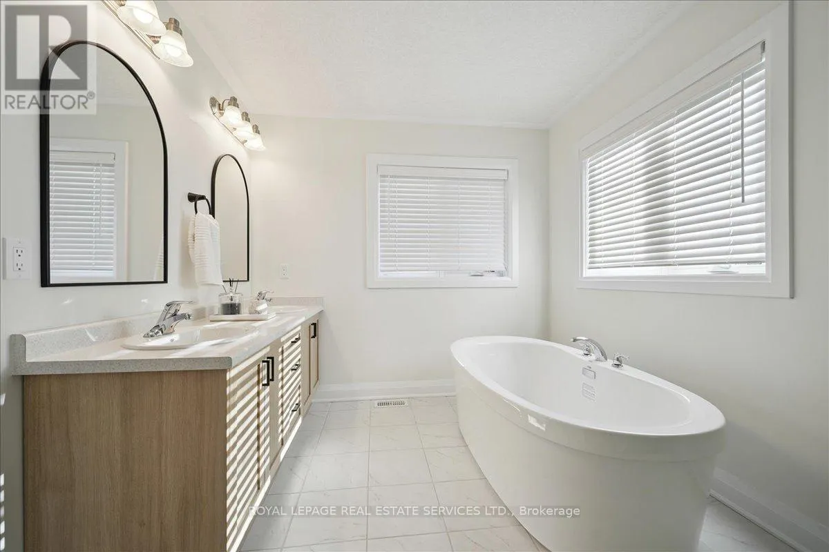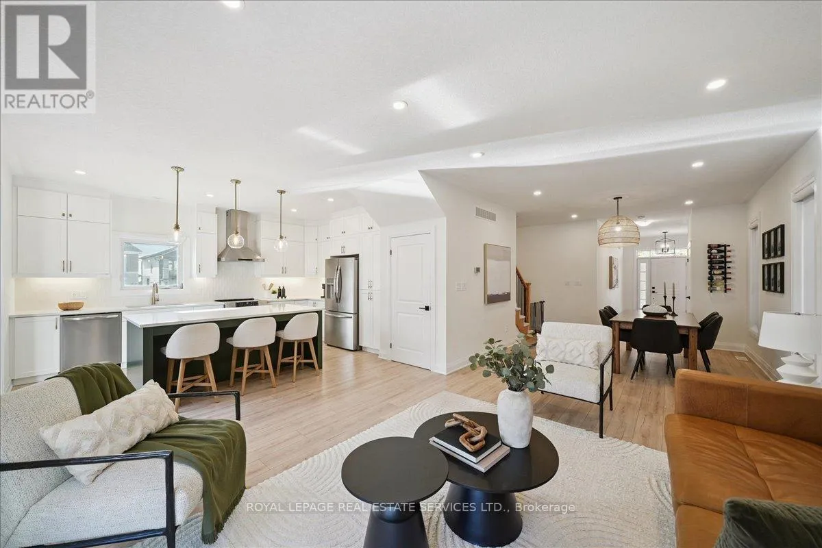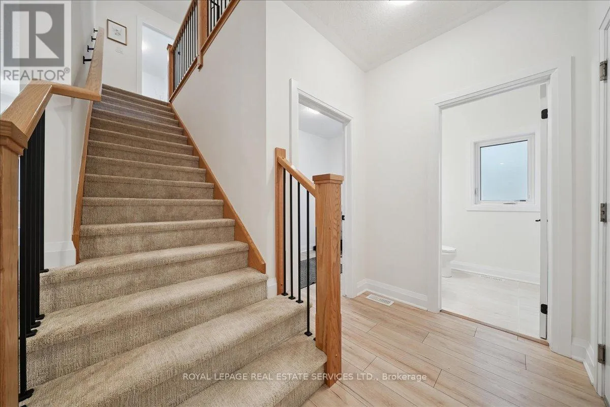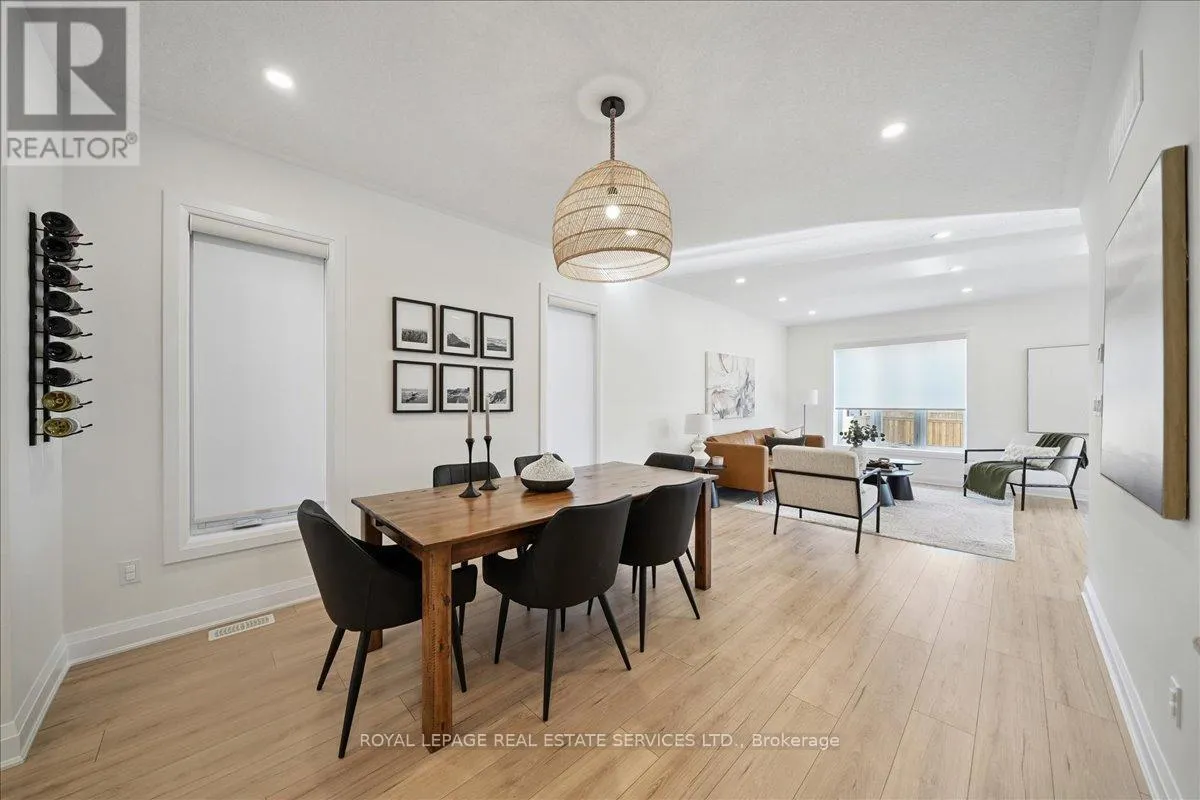Cross Streets: Trussler Rd & Ottawa St S. ** Directions: Trussler Rd & Nathalie St. Discover your dream home in the heart of Kitchener's new, family-friendly Trussler West community. Nestled on a quiet street, this exquisite 2,382 sq.ft. residence blends tasteful modern finishes with timeless craftsmanship, creating a truly magnificent living space. From the moment you arrive, the home impresses with its classic brick facade and a double-car garage offering parking for four vehicles. Step into a bright, open-concept main level where 9-foot ceilings & continuous engineered hardwood floors establish a modern, airy atmosphere right from the foyer. The living and dining areas, illuminated by pot lights and chandeliers, create the perfect ambiance for both entertaining guests and quiet family evenings. The heart of the home is the stunning modern kitchen, a chef's delight featuring a large quartz centre island,custom backsplash,extended cabinetry, and stainless steel appliances. From here, slide open the doors to a walk-out deck. A main-floor office provides a quiet space for work or study. Upstairs, the primary bedroom serves as a personal sanctuary,a large walk-in closet, and a luxurious ensuite. Unwind in the elegant soaker tub or the spacious glass shower, and appreciate the privacy of a separate water closet and the convenience of double sinks. Three additional generous bedrooms share a well-appointed 5-piece main bath, thoughtfully designed with a water closet and double sinks to streamline morning routines. The home's potential continues with a large, unfinished basement-a blank canvas awaiting your personal touch. This Net Zero home is future-ready, with rough-ins for solar panels, an electric vehicle charger, and a basement bathroom and bar. Enjoy the perfect balance of tranquil nature, with the trails of Trussler Woods nearby, and commuter convenience, with easy access to Highways 7/8 & the 401. You're also just minutes from major shopping hubs like the Sunrise Shopping Centre. This is more than a house-it's the home you've been waiting for. (id:27476)