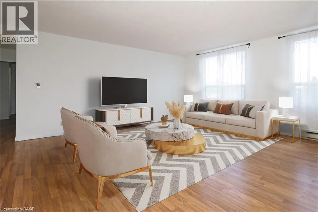 HOLBORN COURT IS OFF HOLBORN DRIVE, BETWEEN RIVER ROAD and OLD CHICOPEE DRIVE near Stanley Park Mall. Welcome to 18 Holborn Crt. #402. It's freshly painted throughout, the condo features a large living and dining area and a spacious primary bedroom with a large closet & 3 piece bath. The 2nd bedroom can also serve as a home office, guest, or baby's room. The laundry room is In-Suite with plenty of storage. Located close to Stanley Park Mall, Zehrs, Cdn. Tire, Schools, Transit plus easy access to Hwy 7/8 expressway. A short drive to Chicopee Ski & Summer Resort. Ideal for 1st time home buyers, retirees or investors! The unit includes 1 assigned underground parking space. Stay active & fit in the on-site gym, unwind in the sauna and there's also a bike storage area. Quick closing can be available. (id:27476)