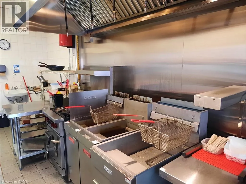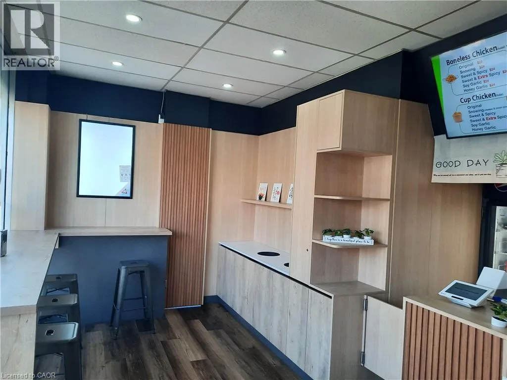 King/Eby St. Corner of the building. TURNKEY FRIED FOOD RESTAURANT WITH EXCELLENT FOOT TRAFFIC ON KING STREET E IN KITCHENER! Located just steps from Conestoga College Downtown Campus, this fully equipped restaurant offers outstanding exposure and steady foot traffic from nearby high school students, office workers, and young professionals living in surrounding condos. Recently renovated with a brand-new 8 ft hood system and refreshed interior, this restaurant is clean, modern, and ready for operation. Currently serving Korean-style fried chicken, but easily adaptable for various other takeout or dine-in food concepts. Very affordable rent of approximately $3,000/month including TMI, with a long lease term and renewal option remaining. An ideal opportunity for first-time business owners or anyone seeking a well-located, move-in-ready restaurant with strong customer potential. Donât miss this exceptional opportunity to own a fully equipped and ready-to-run restaurant in one of Kitchenerâs most vibrant areas! Book your private viewing today! (id:27476)