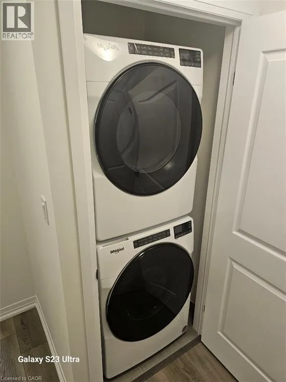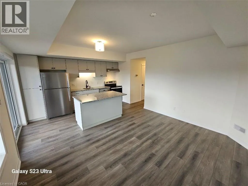 New Dundee Road to Stauffer Woods Trail Beautiful 1 bedroom condo townhome backing onto greenbelt nestled in a quiet neighbourhood has so much to offer. Quick access to the 401, trails nearby and a short drive to shopping and restaurants. You will be impressed with the open concept design which features 9ft ceilings, high quality laminate flooring throughout, a stunning kitchen with walk out to your beautiful backyard which backs onto greenbelt and storm pond. No immediate backyard neighbours and just beautiful views for you to enjoy. The well sized bright bedroom boasts a spacious walk-in closet and a linen closet. In-suite laundry with washer and dryer. Internet is included in the rent. Tenant pays utilities. 1 assigned parking spot in front of the unit for your convenience. (id:27476)