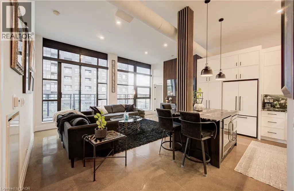 VICTORIA ST S LUXURY PENTHOUSE WITH 2 PARKING SPOTS! Modern 2 Bedroom, 2 Bathroom Condo in the Heart of Kitchener! Condo fees include heat, water and A/C! Steps from Google, Kitchener GO Station, Victoria Park, and more. This stunning unit features high-end upgrades throughout, showcasing a bright white, custom chervin kitchen with built-in appliances, sleek white cabinetry, black hardware, and elegant, high end black granite countertops. Floor-to-ceiling windows fill the space with natural light from the living area through to both bedrooms. The open-concept living room offers a beautiful feature wall, and offers a seamless walkout to a private balconyâperfect for enjoying the city views. Modern, stylish, and conveniently located in one of Kitchenerâs most vibrant areas, this unit is a must see! (id:27476)