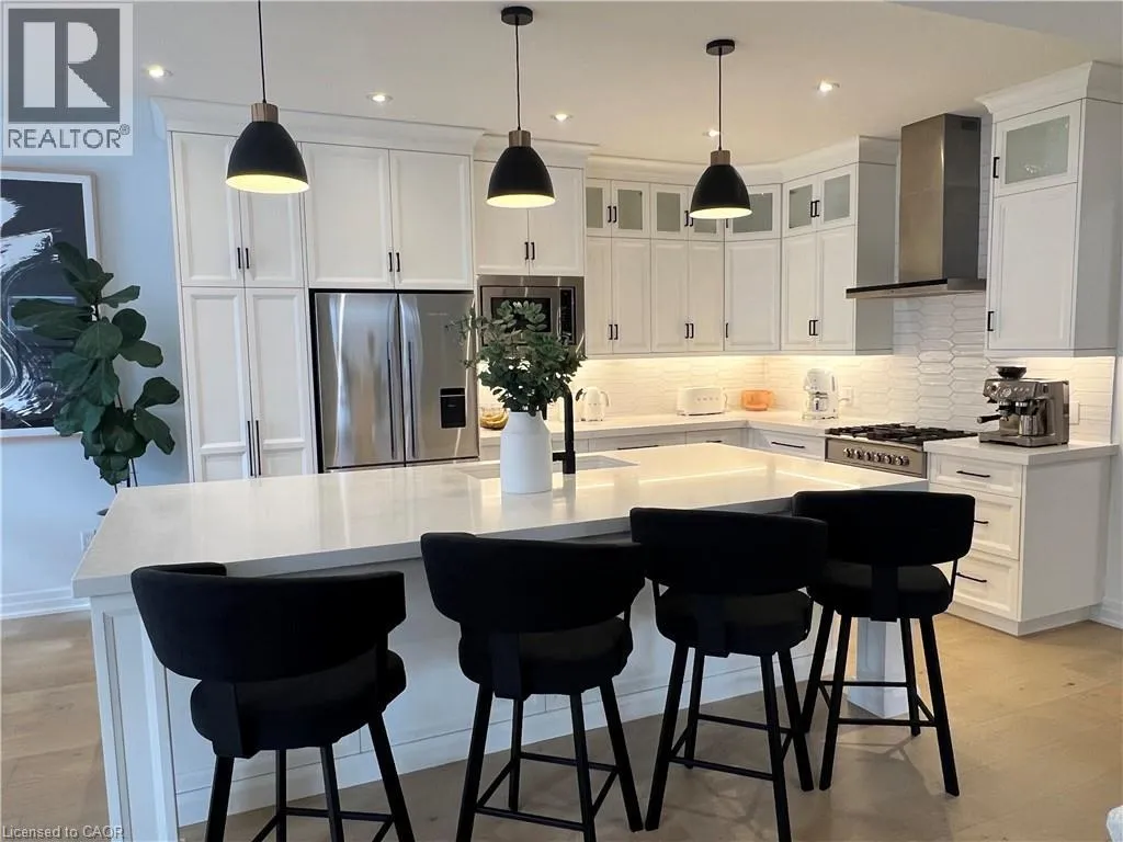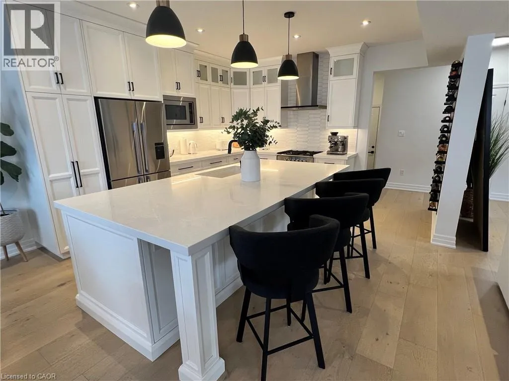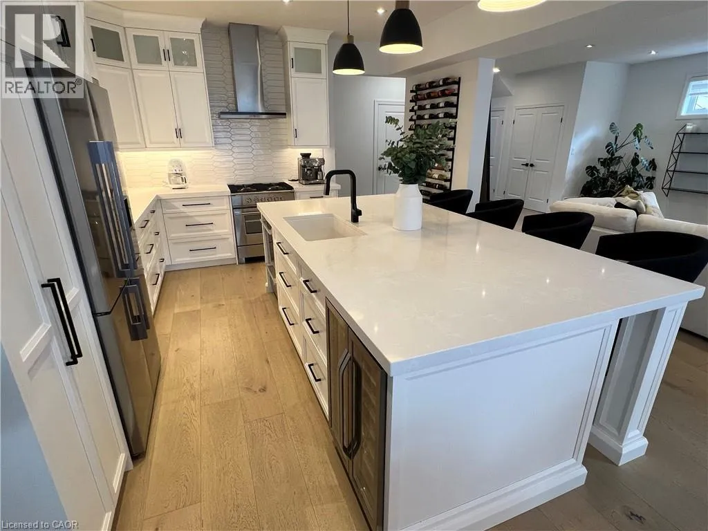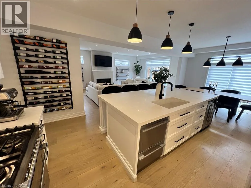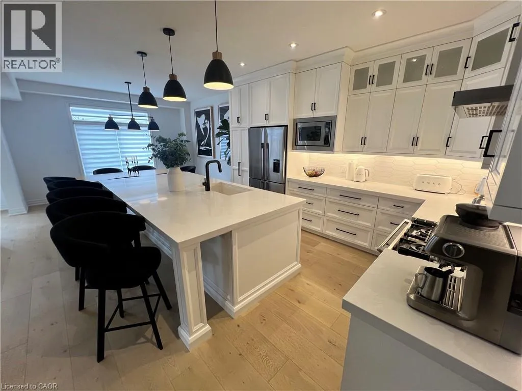 West of Rivertrail Ave. Welcome to this stunning, move-in-ready family home offering 2,708 sq. ft. of above-grade living space (as per builder) and thoughtfully designed for both comfort and style. From the moment you step inside, youâll be greeted by an inviting open-concept layout with soaring 9-foot ceilings, abundant natural light, and elegant finishes throughout. The heart of the home is the bright, fully white kitchen, featuring premium Fisher & Paykel appliances, a gas range and stove, wine cooler fridge, and a spacious 9 feet center island perfect for family gatherings and entertaining guests. The main floor also includes a stylish powder room and beautifully upgraded hardware, creating a cohesive and modern feel in every corner. Upstairs, youâll find four generously sized bedrooms, each offering warmth and space, including a serene primary suite with a luxurious ensuite bath, plus a second full bathroom and a convenient finished laundry room. The fully finished basement adds exceptional versatility with a large recreation or entertainment area, an additional full bathroom, and plenty of room for relaxation or hobbies. Step outside to your private backyard oasis featuring professional interlock stonework, a charming gazebo, and full fencing for privacyâideal for outdoor dining, play, or quiet evenings under the stars. The interlock driveway enhances the homeâs curb appeal, blending practicality with sophistication. With 3.5 bathrooms, a carpet-free design, and every detail carefully curated for easy living, this home truly defines elegant, turnkey family livingâa place where comfort, quality, and style come together seamlessly. Additional highlights include energy-efficient lighting, custom window coverings, and generous storage throughout, ensuring every inch of this home is both beautiful and functional for modern family life. (Open house Saturday Nov. 1st & Sunday Nov 2nd 2-5pm) (id:27476)