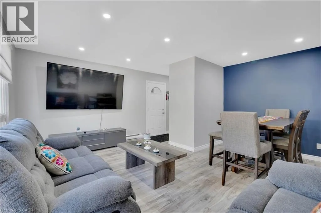 Elm Ridge dr & Silver Aspen cresc Welcome to this stunning first-floor condo offering the perfect balance of comfort and modern updates. Featuring three spacious bedrooms and one full bathroom, this home has been freshly painted and showcases newer flooring throughout. The open-concept living and dining area is bright and inviting, enhanced by an abundance of pot lights that create a warm and contemporary atmosphere. Enjoy the versatility of a finished basement, ideal for a family room, office, or recreation space. Step outside to your private backyardâa rare and desirable feature perfect for relaxing, entertaining, or gardening. The unit also includes a single-car garage for convenient parking and additional storage. Located in a quiet, family-friendly neighborhood close to schools, shopping, parks, and public transit, this home offers exceptional value and lifestyle.Move-in ready and meticulously maintainedâdonât miss your chance to call this beautiful Kitchener condo your new home! (id:27476)
