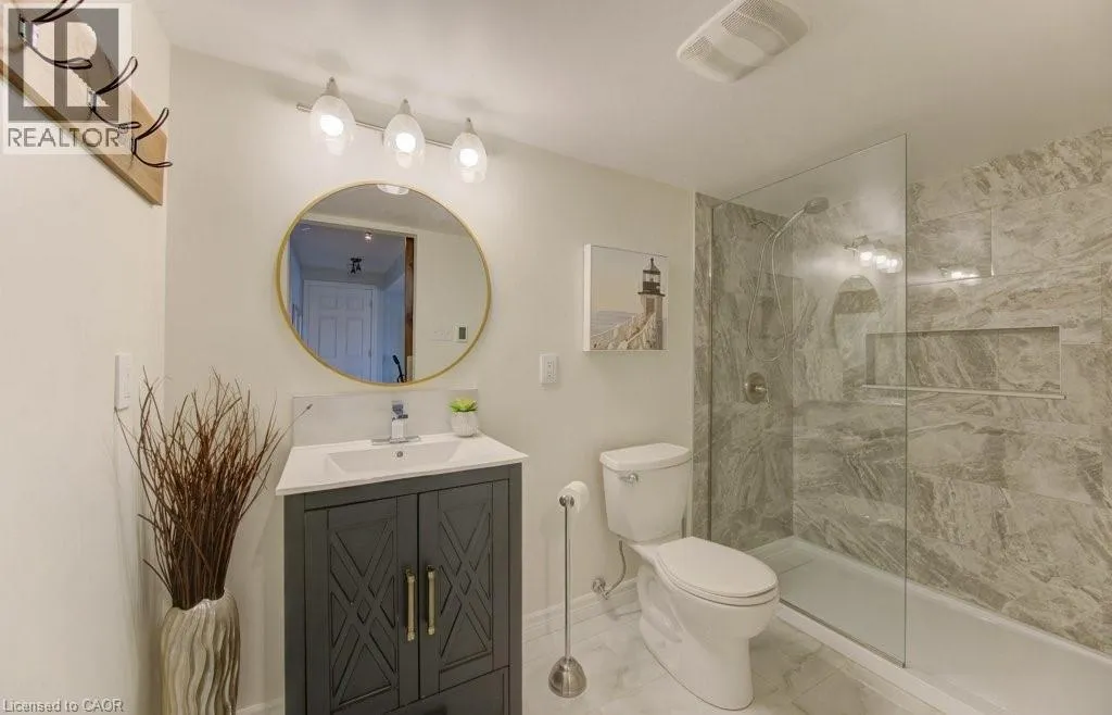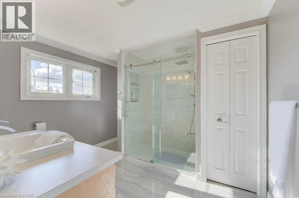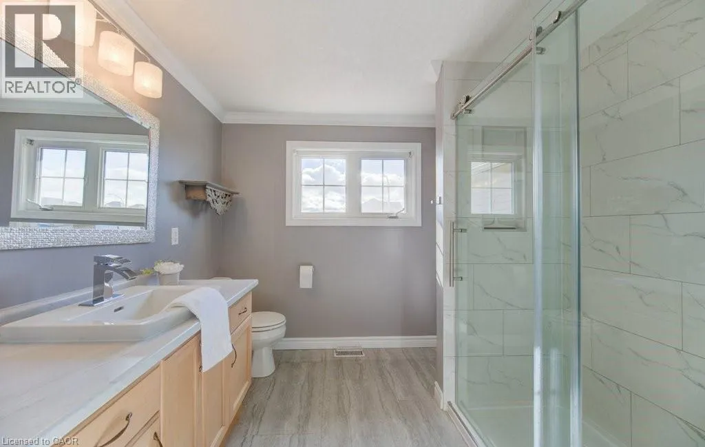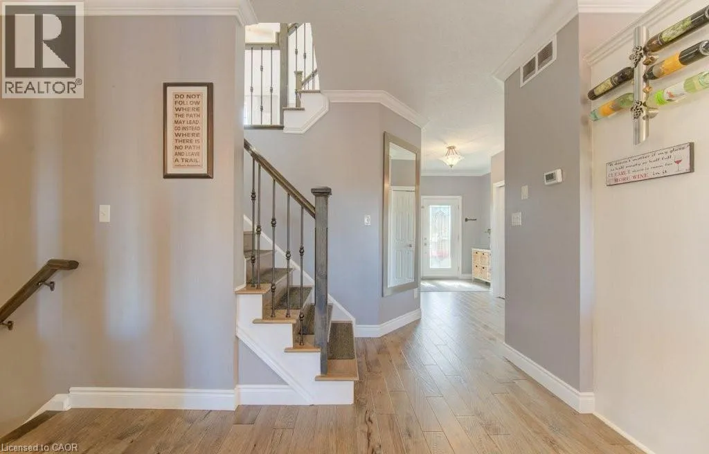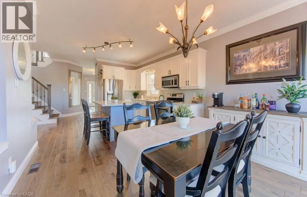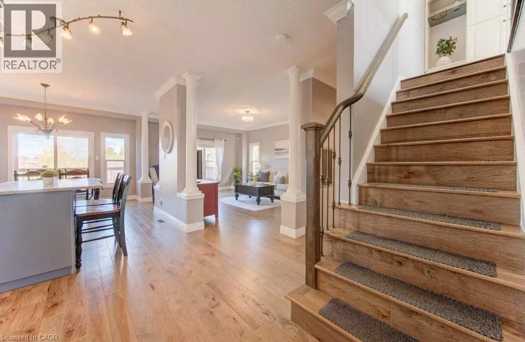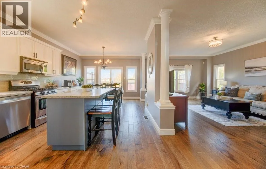 Huron to Woodbine to Maitland Welcome to 99 Maitland St in sought-after Huron Park! This stunning 3-bedroom, 3.5-bath home sits on a fully fenced lot backing onto serene views of nature, offering the perfect blend of comfort and style in a family-friendly neighborhood. Step into the spacious foyer and be greeted by 9-ft ceilings, crown molding and modern hickory flooring (2019) that flows through the open-concept main floor. The bright living room is filled with natural light, providing an inviting space for relaxing or entertaining. The contemporary kitchen features a large island, newer granite countertops, glass backsplash, stainless steel appliances, new hardware, and abundant cabinetry-ideal for everyday living and hosting. The adjoining dining area opens to a beautiful upper deck overlooking the expansive backyard and peaceful green views. Upstairs, you will find a massive great room with soaring 12-ft ceilings, large windows, and custom built-ins-a perfect family gathering space. Three spacious bedrooms include a primary suite with two large closets and a 4-pc ensuite. The updated (2021) luxurious main bath and new carpeting (2025) complete the upper level. The fully finished lower level offers new flooring, a stylish new 3-pc bath (2022) with barn-style door, and a versatile rec room easily adaptable for a 4th bedroom. Walk out to the covered concrete patio with built-in stair lighting and enjoy your private backyard oasis featuring a heated saltwater pool surrounded by composite deck, a perfect space for summer relaxation and entertaining. Located just minutes from walking trails, schools, shopping, and highway access, this home truly has it all- space, style, and location! Other features include large attic (approx 600 sq ft) accessible via pull-down stairs (excellent storage space), R.O. system, gas hook up for BBQ and fire pit, rough-in for gas fireplace (outside lower level), rough-in for spa package for hot-tub, built-in lights for patio and side stairs, insulated garage door. (id:27476)