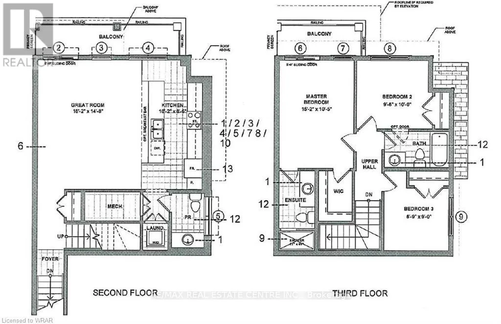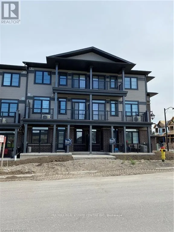 Cross Streets: Fischer-Hallman and Bleams. ** Directions: Fischer-Hallman, Right on Wallace Driive. Discover modern living in this bright and spacious stacked condo townhome located in the highly desirable Huron Park community of Kitchener. Spanning approximately 1,415 sq. ft. across two levels, this home features 9' ceilings, engineered hardwood flooring, a stylish kitchen with stainless steel appliances, and a private balcony off the main living area. The upper level offers three generous bedrooms, including a primary suite with its own balcony, two full bathrooms, and ample closet space. Perfectly situated in a family-friendly neighborhood with a new playground across the street, and close to schools, parks, shopping, and transit-this move-in-ready gem includes upgraded light fixtures, in-unit laundry, and one surface parking spot. Ideal for first-time buyers, growing families, or investors. (id:27476)