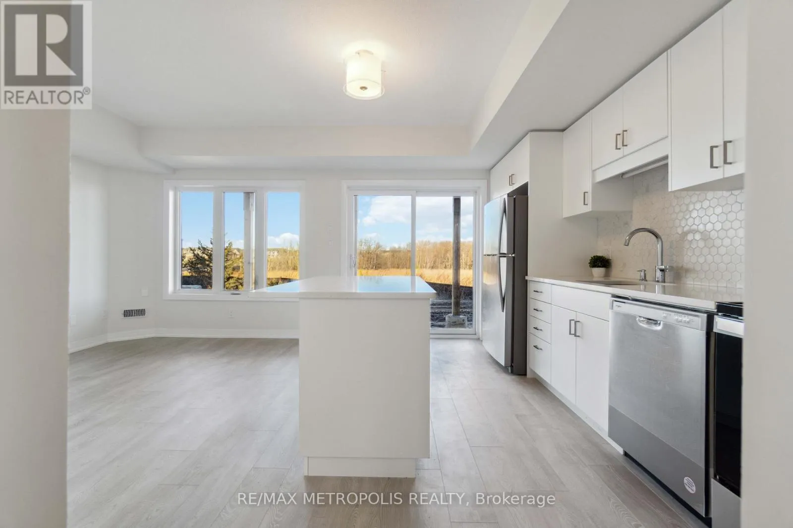 NEW DUNDEE RD & REIDER DR Condo Villa ready to lease now at Harvest Park in Doon South. This beautiful 1 yr old carpet-free home features a walkout to a 16 W x 8 D covered patio at the back looking over greenspace including the storm pond with lots of nature! 9ft ceilings through out. Enter into a large foyer and follow a few steps down to the main floor open concept, bright and airy apartment. Features wood laminate flooring through out, Large bedroom with a walk in closet and an additional Linen closet. Main bath includes quartz counter, large walk in shower with glass enclosure. Gorgeous bright luxury kitchen with quartz counters, backsplash and built-in soap dispenser. Large Kitchen island with breakfast bar. Walk out from your Open Concept Kitchen / Living room to your Patio & Garden Space and enjoy the stunning views! The home comes with stainless kitchen appliances including fridge, stove, an over-the range microwave and dishwasher, stackable washer/dryer, air conditioning, a surface parking spot and in-unit storage space. The rent includes Rogers Internet (1.5 GB), exterior maintenance and snow removal. Window Coverings included. Tenant pays all utilities and hot water heater rental. Unit equipped with Direct Detect Fire Monitoring system. This property provides easy access to Hwy 401, Conestoga College, and nearby walking trails, ponds and green space. (id:27476)