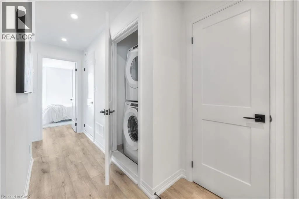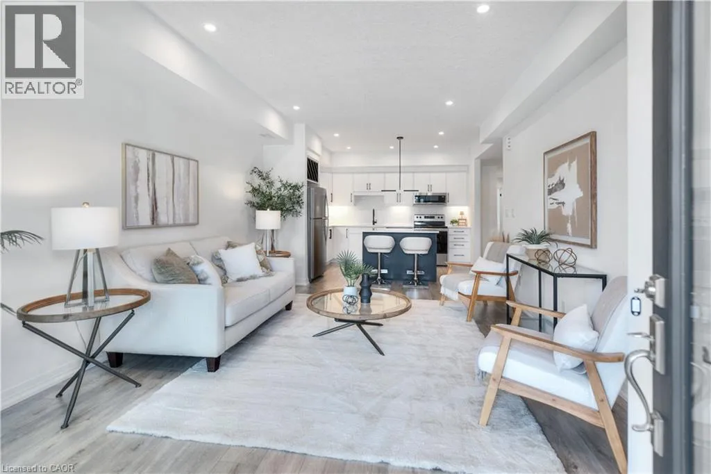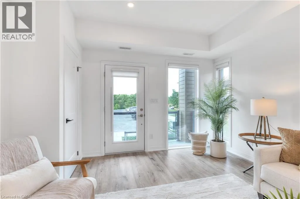 Huron Road to Woodbine / Fischer Hallman to Seabrook to Woodbine This exquisite, like-new townhome presents an ideal opportunity for first-time buyers, young professionals, or those looking to downsize in retirement. With just under 1,100 sq. ft. of thoughtfully designed living space, this 2-bedroom, 2-bathroom residence is located in the sought-after Huron Park community, offering a blend of modern convenience and natural surroundings. Enjoy low condo fees that include 1.5 Gbps high-speed internet, an assigned parking spot, and access to EV charging stations. The home is just steps from the Huron Natural Area, providing a tranquil setting with trails and green space, while a newly developed Longoâs plaza nearby offers everyday essentials and retail convenience. Inside, the open-concept layout is both stylish and functional, featuring stainless steel appliances, Caesarstone quartz countertops, and a built-in wine rack above the fridge. The in-unit laundry and dedicated storage spaceâeasily converted into a pantryâadd to the homeâs practicality. The primary bedroom opens onto a private balcony, perfect for enjoying fresh air and quiet mornings, while the on-demand built-in humidifier ensures year-round comfort. Meticulously maintained and thoughtfully upgraded, the owner invested over $40,000 in builder enhancements, including a glass shower door, zebra blinds, a microwave/range hood combo, and a contemporary kitchen backsplash, elevating the overall design and functionality. With no backyard maintenance required and everything you need within easy reach, this home offers a low-maintenance, high-quality lifestyle in a vibrant and growing community. A perfect fit for first-time buyers, retirees, or anyone looking for a modern, well-appointed home in an unbeatable location. (id:27476)