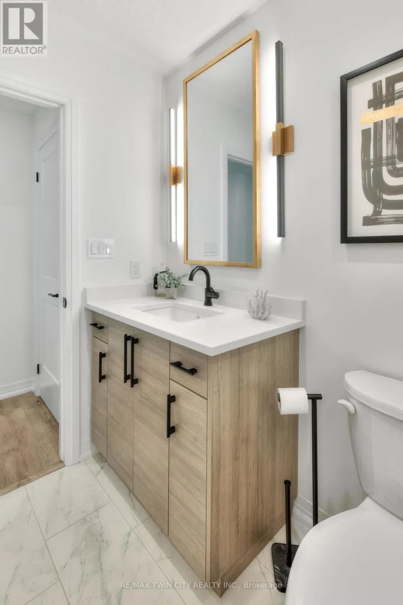 Cross Streets: Sorrento / Valencia. ** Directions: Huron Road to Woodbine / Fischer Hallman to Seabrook to Woodbine. This exquisite, like-new townhome presents an ideal opportunity for first-time buyers, young professionals, or those looking to downsize in retirement. With just under 1,100 sq. ft. of thoughtfully designed living space, this 2-bedroom, 2-bathroom residence is located in the sought-after Huron Park community, offering a blend of modern convenience and natural surroundings. Enjoy low condo fees that include 1.5 Gbps high-speed internet, an assigned parking spot, and access to EV charging stations. The home is just steps from the Huron Natural Area, providing a tranquil setting with trails and green space, while a newly developed Longo's plaza nearby offers everyday essentials and retail convenience. Inside, the open-concept layout is both stylish and functional, featuring stainless steel appliances, Caesarstone quartz countertops, and a built-in wine rack above the fridge. The in-unit laundry and dedicated storage space-easily converted into a pantry-add to the home's practicality. The primary bedroom opens onto a private balcony, perfect for enjoying fresh air and quiet mornings, while the on-demand built-in humidifier ensures year-round comfort. Meticulously maintained and thoughtfully upgraded, the owner invested over $40,000 in builder enhancements, including a glass shower door, zebra blinds, a microwave/range hood combo, and a contemporary kitchen backsplash, elevating the overall design and functionality. With no backyard maintenance required and everything you need within easy reach, this home offers a low-maintenance, high-quality lifestyle in a vibrant and growing community. A perfect fit for first-time buyers, retirees, or anyone looking for a modern, well-appointed home in an unbeatable location. (id:27476)