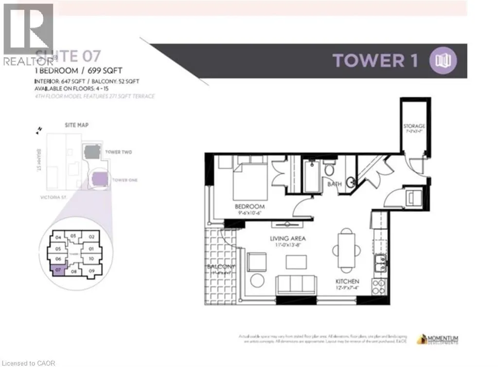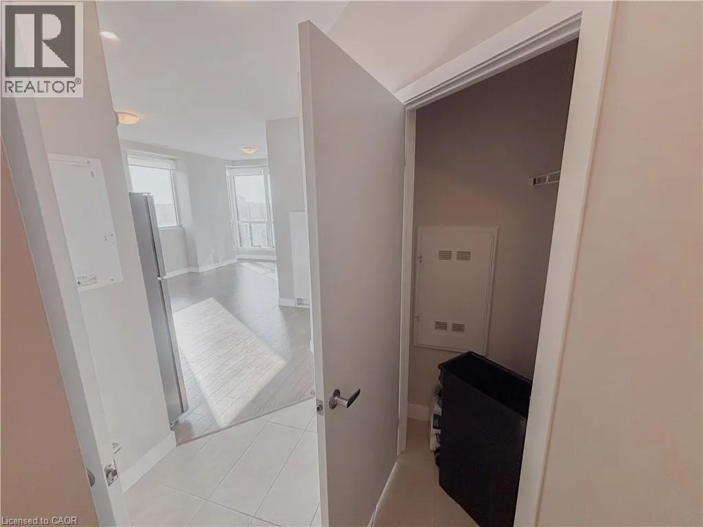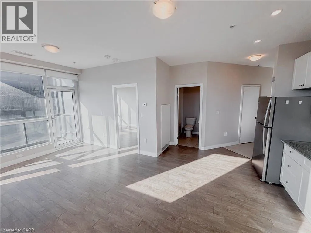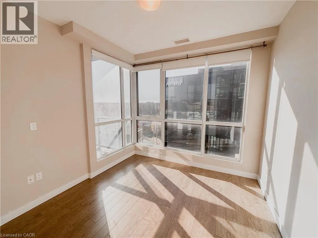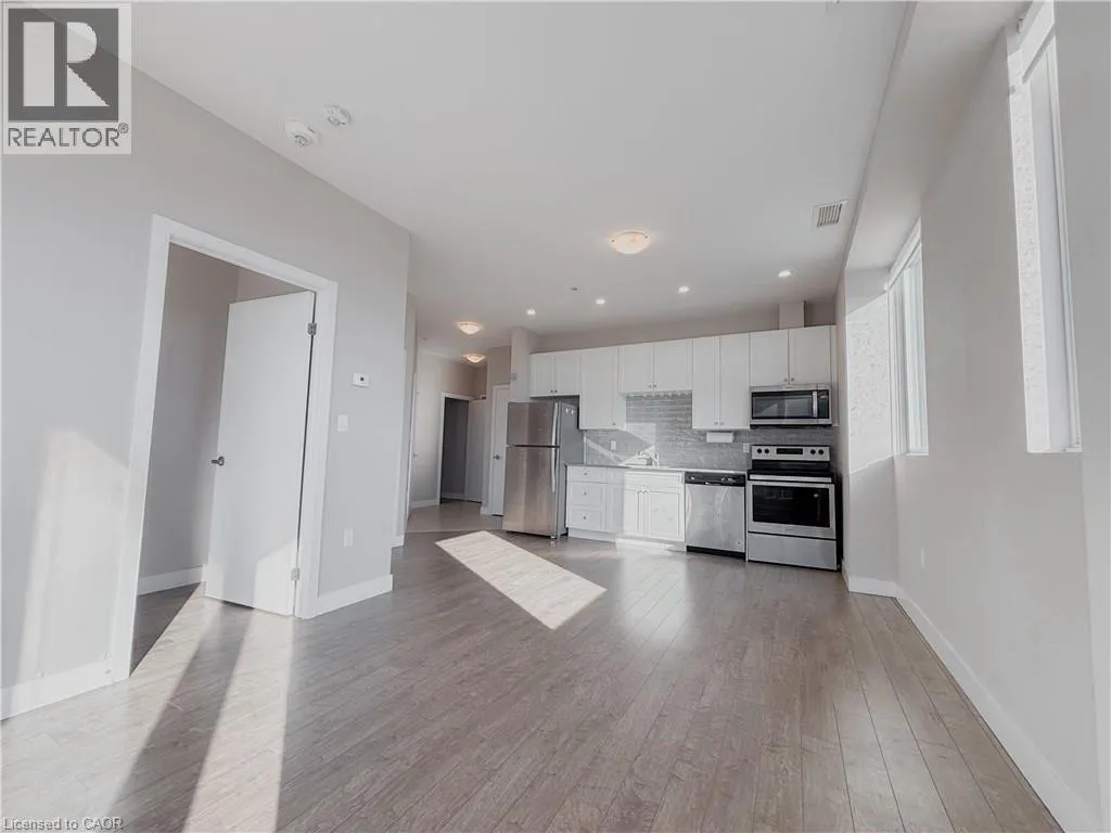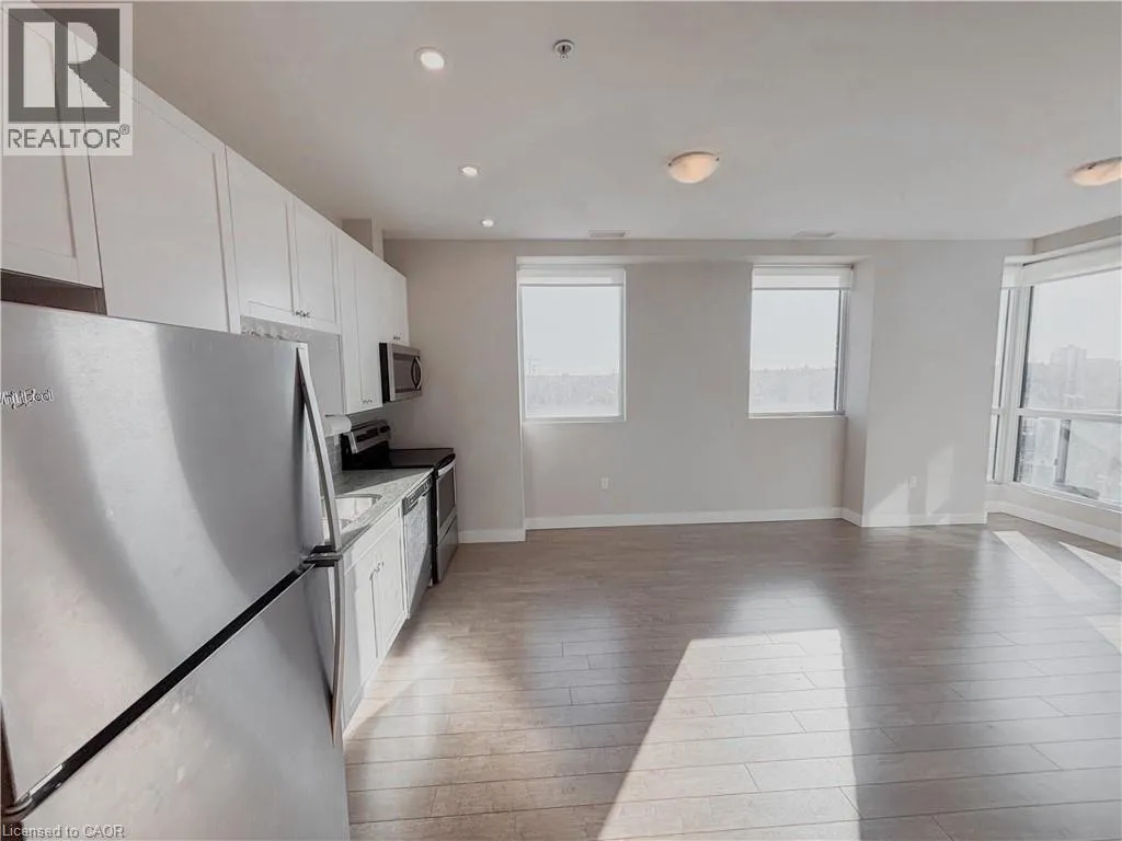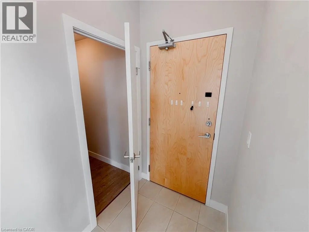 Victoria St and Garment St corner Experience urban living in the heart of Kitchenerâs Innovation District. This 1-bedroom, 1-bath condo at Garment Street offers 647 sq. ft. of modern, open-concept living with floor-to-ceiling windows and a private balcony. A bright living room provides great city views and plenty of space to relax or entertain. The bedroom includes a walk-in closet with custom built-ins, plus a 4-piece bath, in-suite laundry, and additional storage. This carpet-free unit offers laminate and porcelain tile flooring throughout and includes one underground parking space. Building amenities include a party lounge with catering kitchen, rooftop terrace with BBQs, theatre room, fitness centre and co-working space. Located steps from major tech employers, the LRT, shops, restaurants, cafés, Victoria Park, and more, this condo delivers convenience and lifestyle in one. Contact us today for details or to arrange a private viewing. Available for January 1st occupancy. (id:27476)