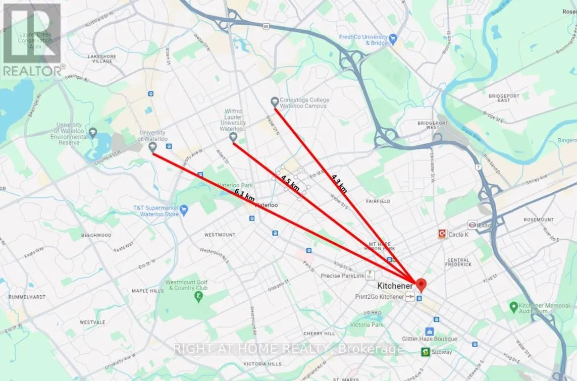 Duke St E & Frederick St Step into luxury with this stunning south-facing penthouse, drenched in natural light and designed for modern living. This expansive 1-bedroom plus den layout offers two bathrooms, soaring floor-to-ceiling windows, and a sleek open-concept design. Enjoy a gourmet kitchen with stainless steel appliances and quartz countertops. The spacious bedroom and versatile den are perfect for a home office or guest space. Ensuite laundry adds everyday convenience, while the private balcony offers unobstructed views, ideal for morning coffee or evening sunsets. The building features a state-of-the-art fitness center, an elegant party room with catering kitchen, and secure bicycle storage. Located just minutes from the GO Train and public transit, this unit includes integrated parking and an oversized locker. It's the best value for its size and features in the area, a rare opportunity you don't want to miss. Integrated PARKING & Oversized LOCKER INCLUDED. (id:27476)
