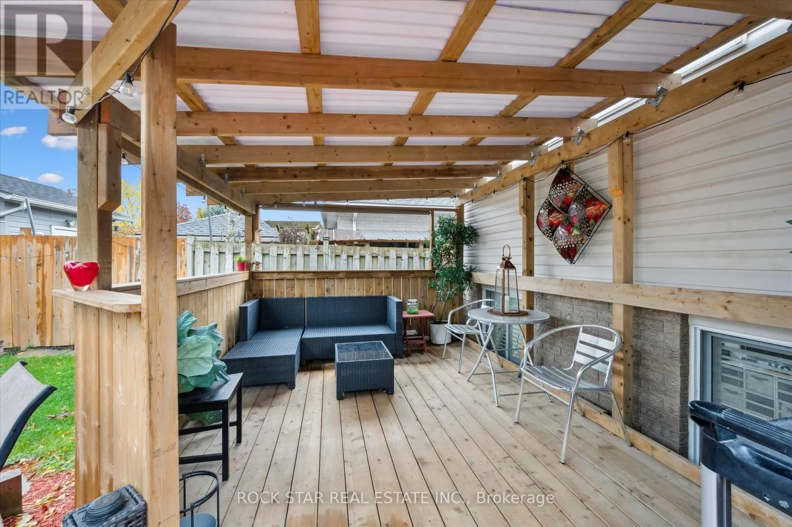 Cross Streets: Ottawa/Fischer-Hallman. ** Directions: Ottawa to Wilderness to Grey Fox. Lovingly maintained and updated Laurentian Hills bungalow! This charming 2+1 bedroom home is ideal for first-time buyers or those looking to downsize without giving up outdoor space. A bright and spacious living and dining area with gleaming hardwood floors welcomes you at the front of the home, leading to an updated kitchen with classic white cabinets and new stainless steel appliances. The two main bedrooms and full bath are tucked away along the back hallway for added privacy.Step through the living room's sliding doors to your backyard retreat-a fully covered deck with space for outdoor dining and barbecuing, overlooking the kids play set and gardens that frame the fully fenced yard. It's the perfect spot to relax, entertain, or watch the kids play year-round.The freshly finished lower level expands your living space with a spacious primary bedroom featuring a 3-piece ensuite, a cozy recreation room with electric fireplace, a 2-piece bath, and a flexible office nook. The laundry area includes newer machines and ample storage.Outside, you'll find a 1.5-car garage and double driveway, offering plenty of parking and storage options. Featuring attractive curb appeal and a central location close to parks, schools, amenities, and easy Highway 8 access, this property perfectly blends lifestyle, convenience, and charm. (id:27476)