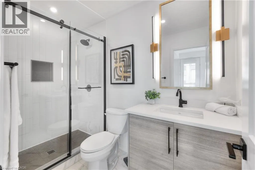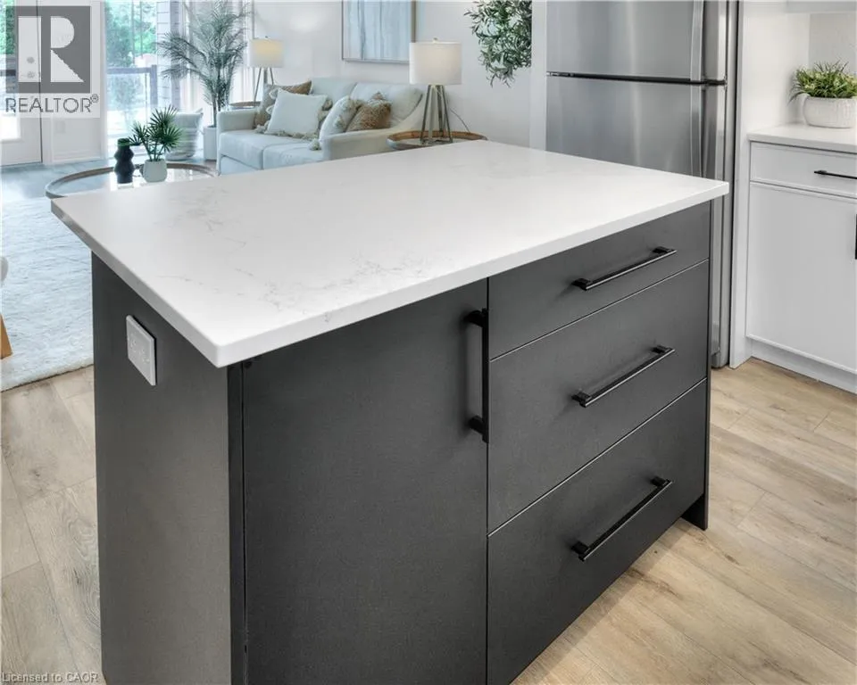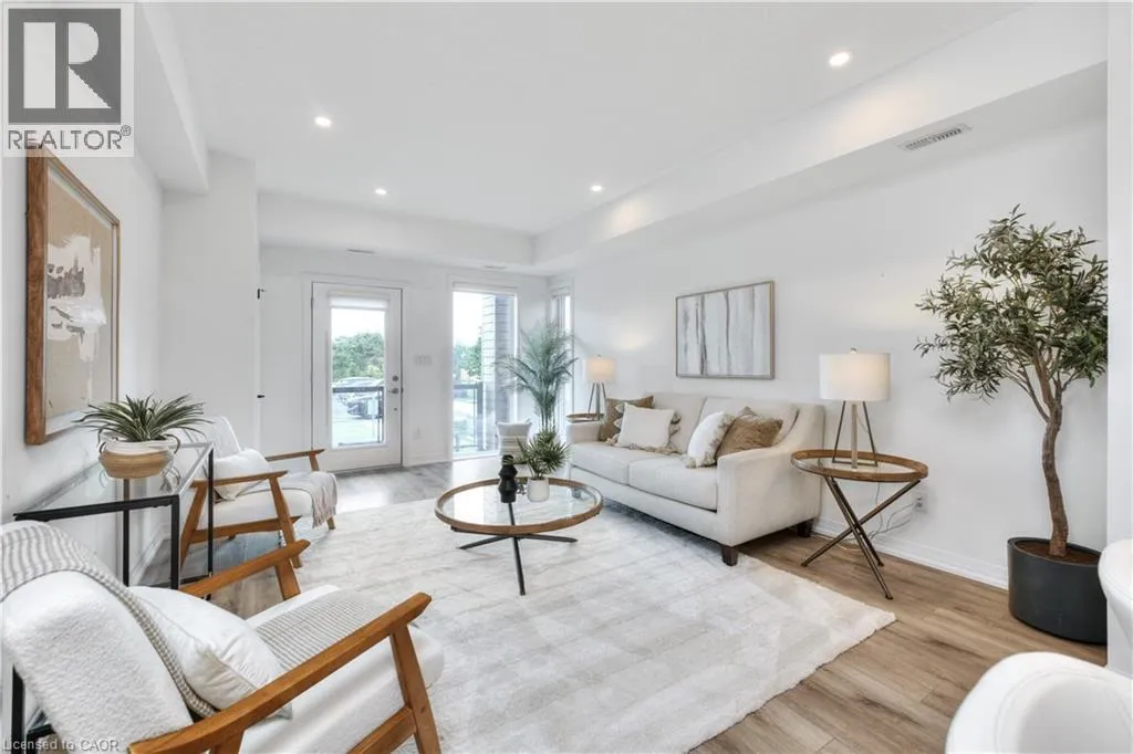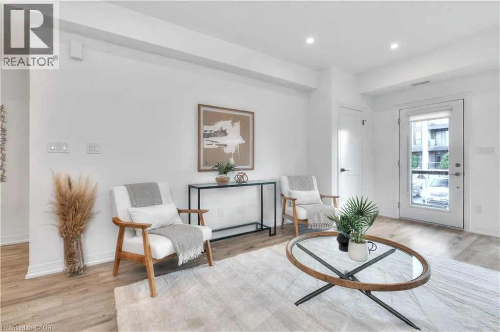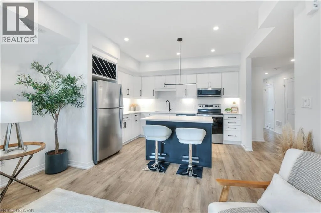 Huron Road to Woodbine / Fischer Hallman to Seabrook to Woodbine This exquisite, like-new townhome presents an ideal opportunity for first-time buyers, young professionals, or those looking to downsize in retirement. With just under 1,100 sq. ft. of thoughtfully designed living space, this 2-bedroom, 2-bathroom residence is located in the sought-after Huron Park community, offering a blend of modern convenience and natural surroundings. Enjoy low condo fees that include 1.5 Gbps high-speed internet, an assigned parking spot, and access to EV charging stations. The home is just steps from the Huron Natural Area, providing a tranquil setting with trails and green space, while a newly developed Longoâs plaza nearby offers everyday essentials and retail convenience. Inside, the open-concept layout is both stylish and functional, featuring stainless steel appliances, Caesarstone quartz countertops, and a built-in wine rack above the fridge. The in-unit laundry and dedicated storage spaceâeasily converted into a pantryâadd to the homeâs practicality. The primary bedroom opens onto a private balcony, perfect for enjoying fresh air and quiet mornings, while the on-demand built-in humidifier ensures year-round comfort. Meticulously maintained and thoughtfully upgraded, the owner invested over $40,000 in builder enhancements, including a glass shower door, zebra blinds, a microwave/range hood combo, and a contemporary kitchen backsplash, elevating the overall design and functionality. With no backyard maintenance required and everything you need within easy reach, this home offers a low-maintenance, high-quality lifestyle in a vibrant and growing community. A perfect fit for first-time buyers, retirees, or anyone looking for a modern, well-appointed home in an unbeatable location. (id:27476)