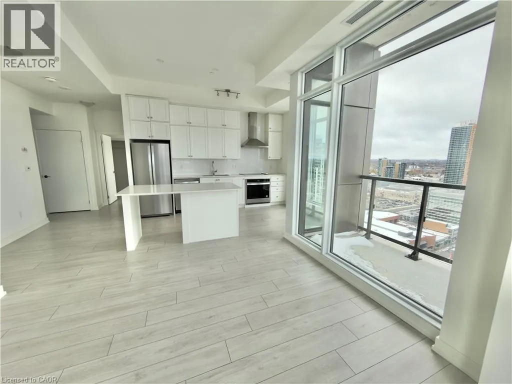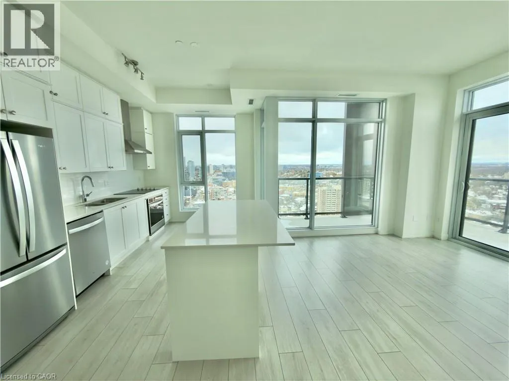 Duke St/Young St Experience urban living at its best in the heart of Downtown Kitchener at Young Condos! This beautifully designed 2-bedroom, 2-bathroom suite offers over 1,100 sq.ft. of living space with floor-to-ceiling windows that fill the home with natural light. The open-concept layout seamlessly connects the kitchen, dining, and living areas, and extends to a private wrap-around balcony where you can unwind and take in panoramic views of the city. The stylish kitchen features sleek finishes and a spacious layout. The primary bedroom includes a generous walk-in closet and a luxurious ensuite, while in-suite laundry adds everyday convenience. Located steps from the ION LRT station, and just minutes away from Victoria Park, trendy cafés, top-rated restaurants, boutique shops, and leading tech employers like Google and Oracle. Enjoy effortless commuting with nearby transit routes and Highway 7/8 access. Enjoy premium building amenities, including 24-hour security, a rooftop terrace with BBQs, a fitness centre with yoga studio, and a spacious party room. Call this stunning condo home, and discover upscale downtown living in Kitchener! (id:27476)