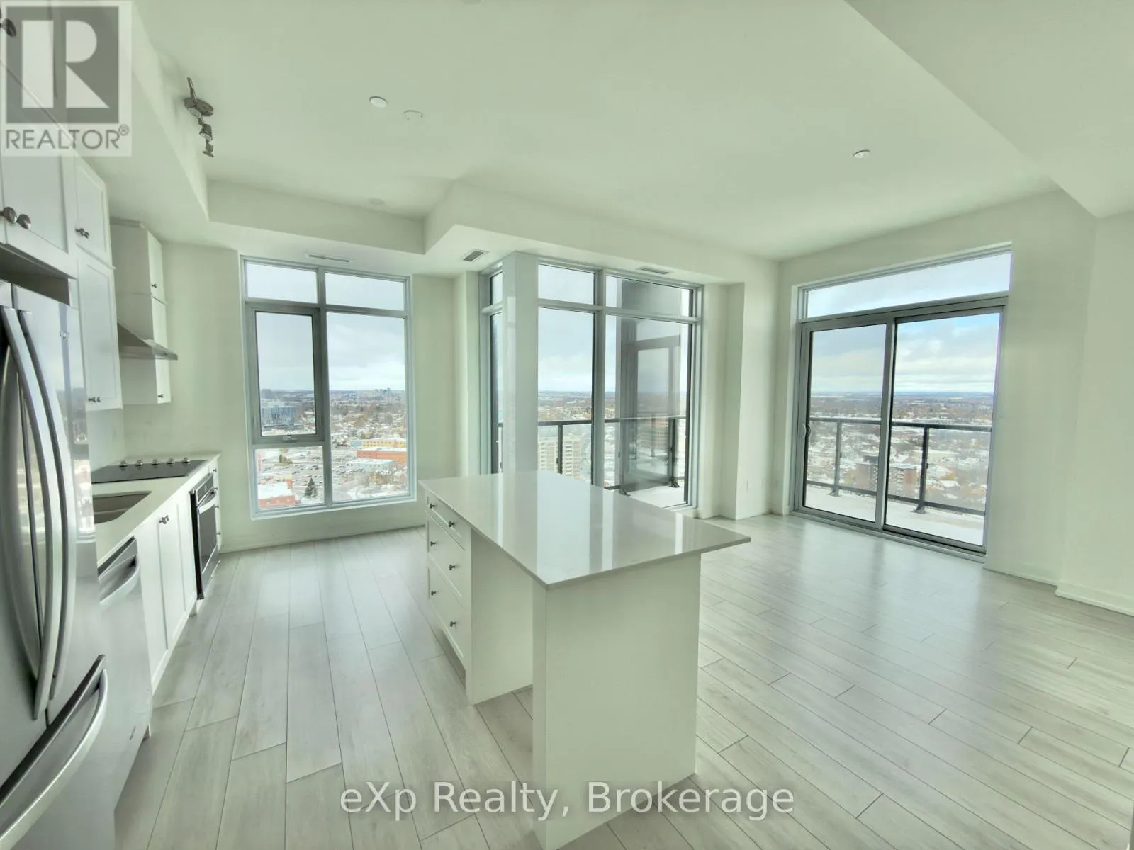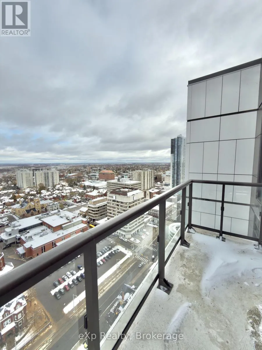 Duke St/Young St Experience urban living at its best in the heart of Downtown Kitchener at Young Condos! This beautifully designed 2-bedroom, 2-bathroom suite offers over 1,100 sq.ft. of living space with floor-to-ceiling windows that fill the home with natural light. The open-concept layout seamlessly connects the kitchen, dining, and living areas, and extends to a private wrap-around balcony where you can unwind and take in panoramic views of the city. The stylish kitchen features sleek finishes and a spacious layout. The primary bedroom includes a generous walk-in closet and a luxurious ensuite, while in-suite laundry adds everyday convenience. Located steps from the ION LRT station, and just minutes away from Victoria Park, trendy cafés, top-rated restaurants, boutique shops, and leading tech employers like Google and Oracle. Enjoy effortless commuting with nearby transit routes and Highway 7/8 access. Enjoy premium building amenities, including 24-hour security, a rooftop terrace with BBQs, a fitness centre with yoga studio, and a spacious party room. Call this stunning condo home, and discover upscale downtown living in Kitchener! (id:27476)