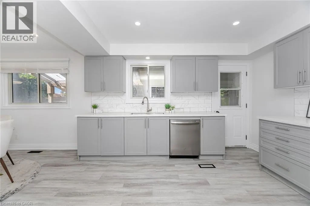 East on Queen's from Fischer Hallman, left on to Eagen Drive Imagine owning two separate homes in one! This fully renovated Forest Hill property offers 2 self-contained units, each with private entrance, kitchen, living space, and full bathroom. Perfect for multi-generational families, investors, or live-in with rental income. The main level features a spacious layout with open-concept eat-in kitchen, formal dining area, and walkout to a large private backyard with patio and mature trees-ideal for entertaining. All 3 bedrooms offer original hardwood floors, windows have been updated, and the roof was redone in 2020. The basement is fully finished with a brand new custom kitchen, stainless steel appliances, modern 3-pc bath, large rec room, games room, and private office space-ideal for an in-law suite or conversion to a legal duplex. Major upgrades throughout: new furnace (2024), 2 brand new kitchens, 2 full appliance sets, upgraded lighting, stylish flooring, mirrored glass doors, fresh paint, and premium finishes top to bottom. Separate front entrance to the lower level enhances privacy and functionality. Live comfortably while generating income or use both spaces for extended family. One of Forest Hill's best locations: walk to public & Catholic schools, community centre, indoor pool, library, parks, and public transit. Just minutes to shopping, groceries, and quick access to Hwy 7/8 & The Boardwalk. A rare turnkey opportunity to own a move-in ready home with income potential and modern design in a highly desirable neighbourhood. Don't miss it! (id:27476)