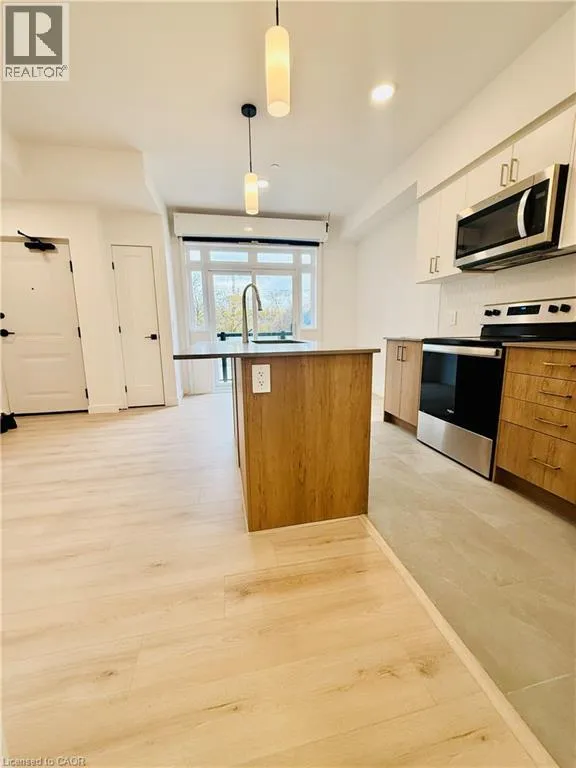 QUEEN STREET S First time offered for lease in the heart of downtown Kitchener, this brand new one-bedroom, one-bathroom condo offers luxury, modern comfort, and style in a vibrant new VIVA community. Featuring quartz countertops, carpet-free luxury finishes, and modern design throughout, this suite includes brand new stainless steel appliances, a dishwasher, and convenient en-suite laundry. Enjoy your private balcony overlooking a beautifully landscaped, professionally maintained building without the high-rise feel. Located within walking distance to Victoria Park, the LRT, restaurants, cafes, and everything downtown Kitchener has to offer, this never-lived-in unit is ready for you to move in and make it home. Energy efficient heat pump for heating a cooling. Available immediately. Utilities and Hot water rental paid by the tenant. Includes One parking spot. (id:27476)