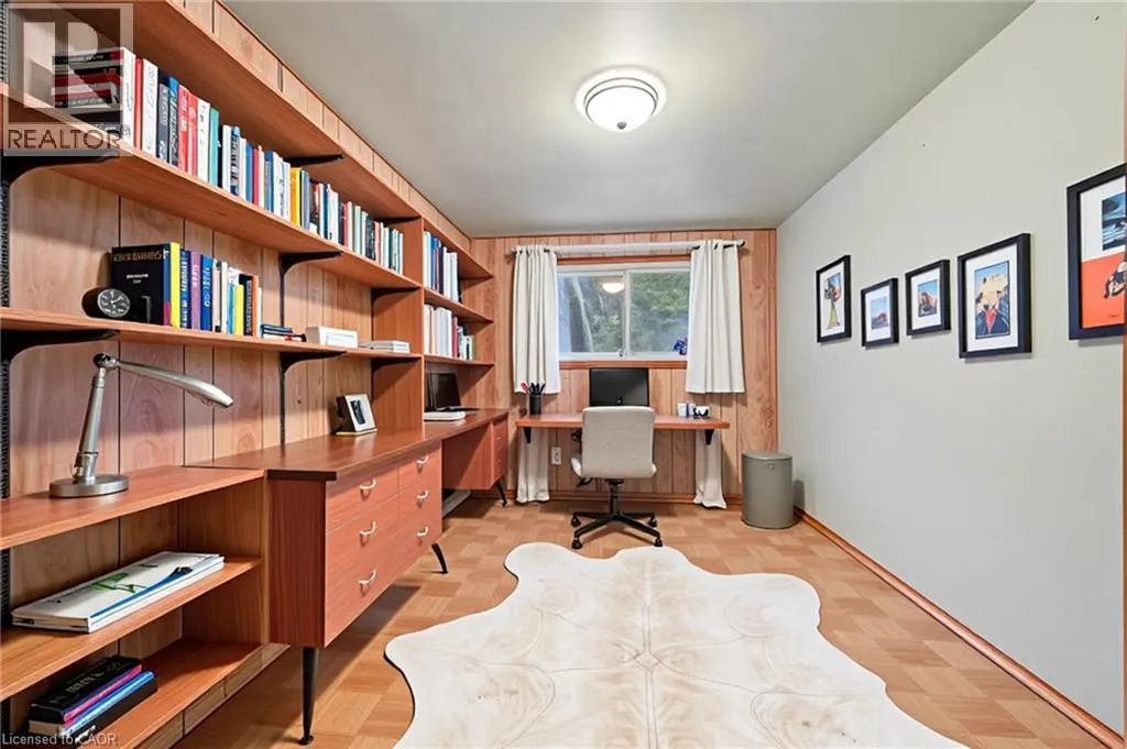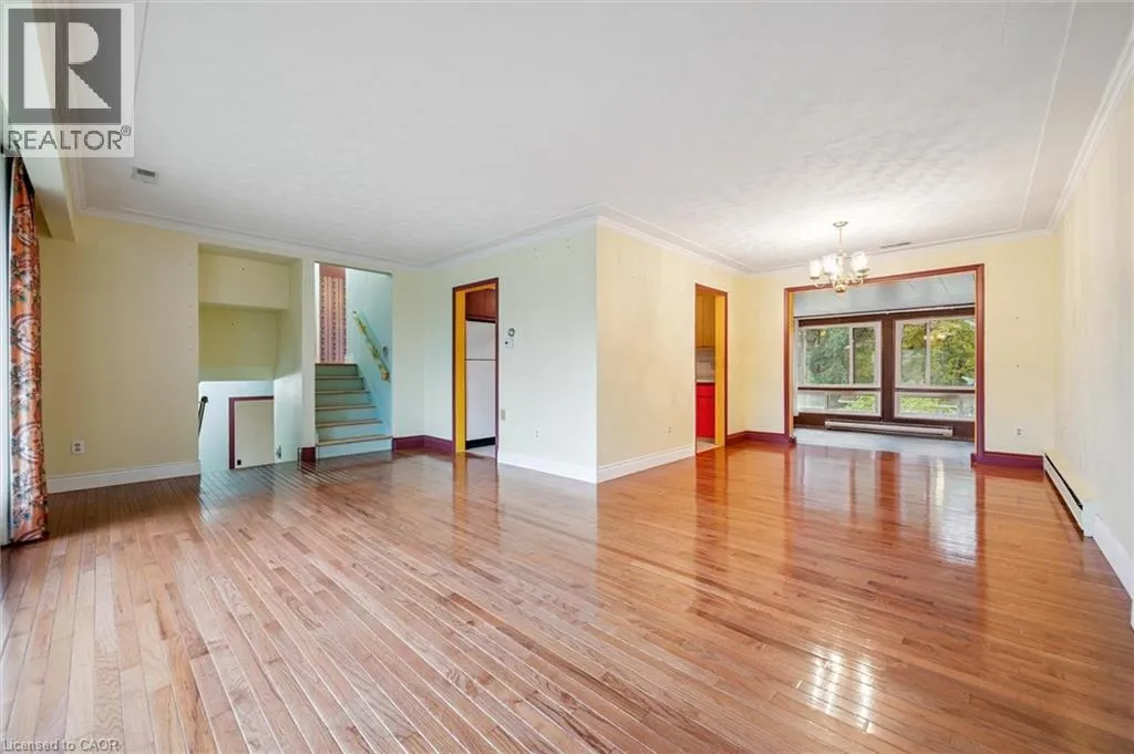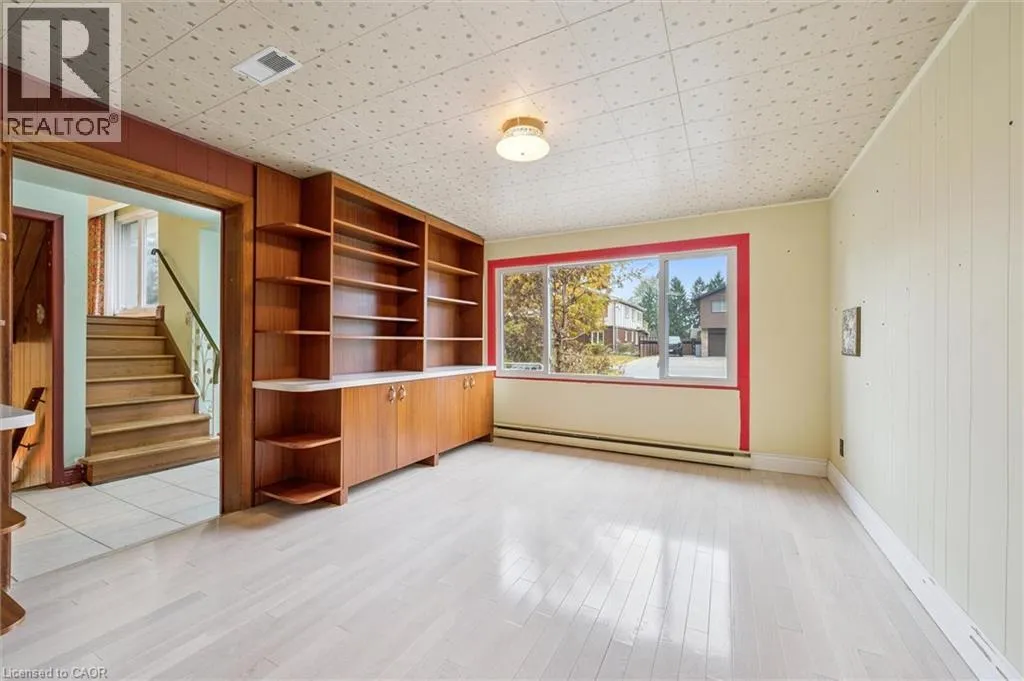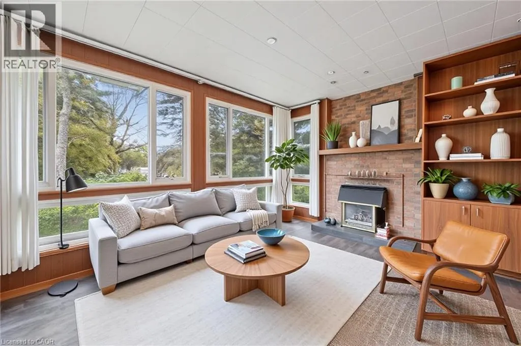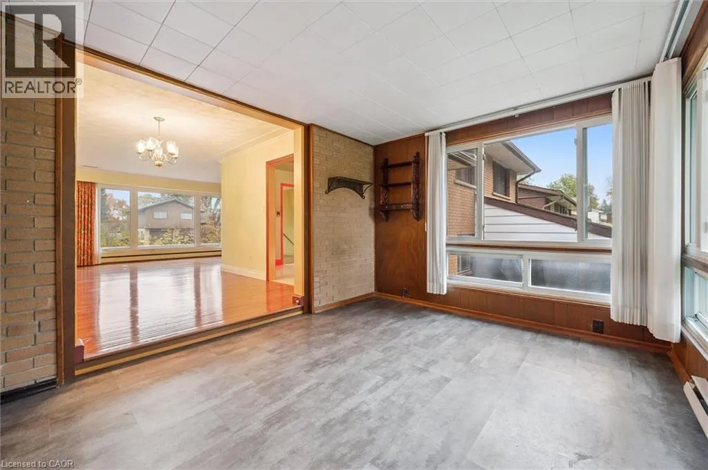Natchez to Matthew, Corner of Matthew and Marketa Cres. Open house Sunday November 16th 2-4pm. Tucked away on a peaceful crescent in desirable Grand River North, this single detached home sits on an oversized, mature lot surrounded by trees and beautiful landscaping. Offering both a double driveway and a separate single driveway, thereâs plenty of room for parking and flexibility for multi-vehicle families. Inside, the home is full of potential and awaits your decorative touch. The main floor features a bright living room with an oversized window overlooking the street and hardwood flooring, formal dining area, and a sunroom addition that brings the outdoors in. The garage has been converted into additional living space, providing extra room for a family room or studio. There is also a great home office on the foyer level. Upstairs, youâll find three spacious bedrooms and a full bathroom, while the finished basement adds even more functional space for recreation or hobbies. Outside, the large yard is a true retreat â complete with mature trees, landscaped gardens, and even a creative catio for pet lovers. Don't miss the oversized shed with heat and hydro. Some photos have been virtually staged. Bring your ideas and make this well-located property your own. With ample space, unique features, and a serene setting, this home offers exceptional potential in one of Kitchenerâs most family-friendly neighbourhoods. (id:27476)